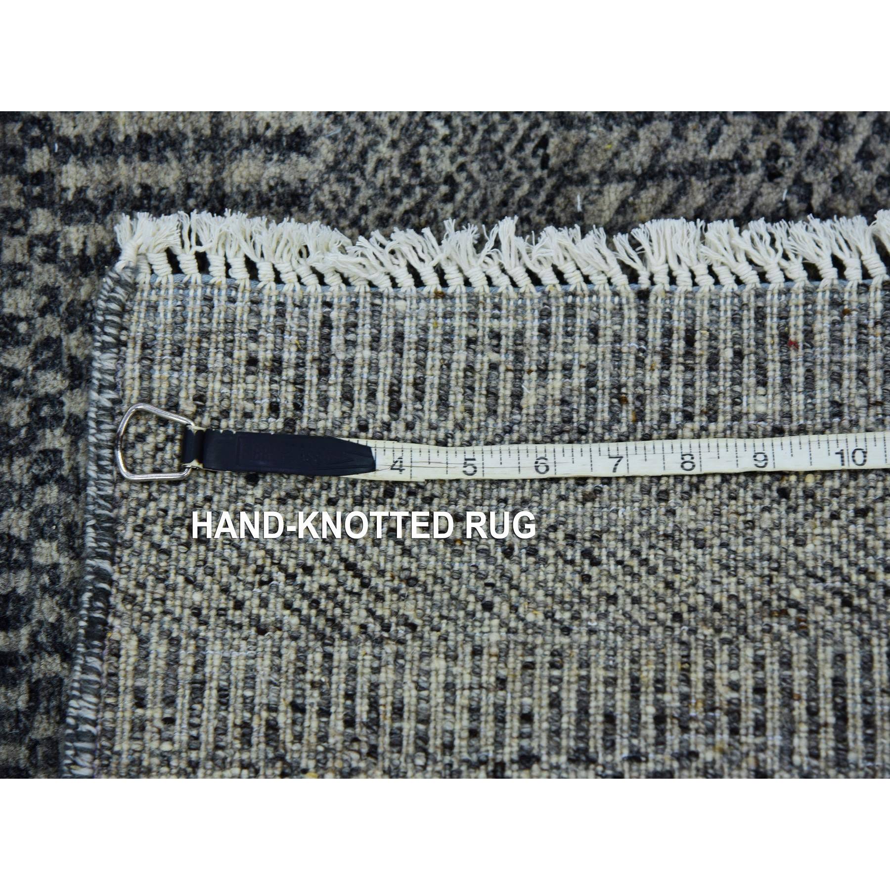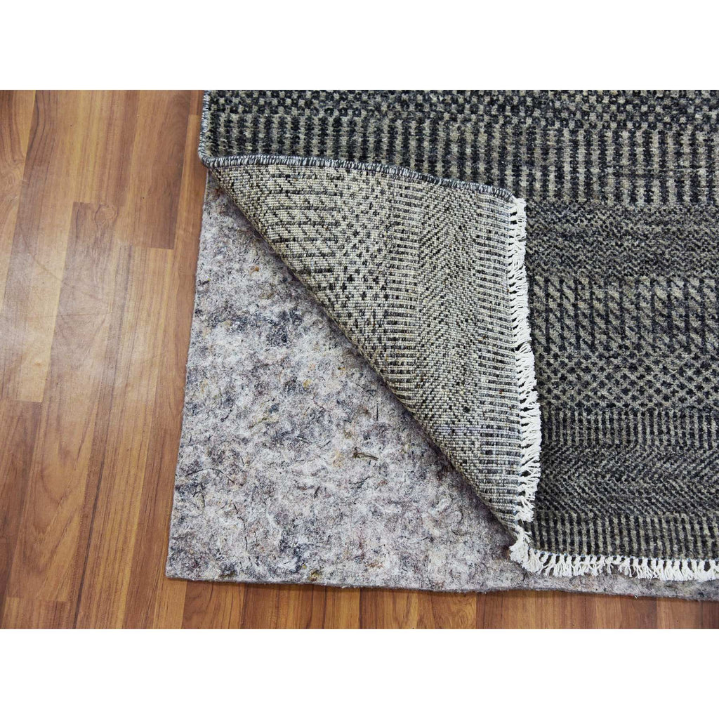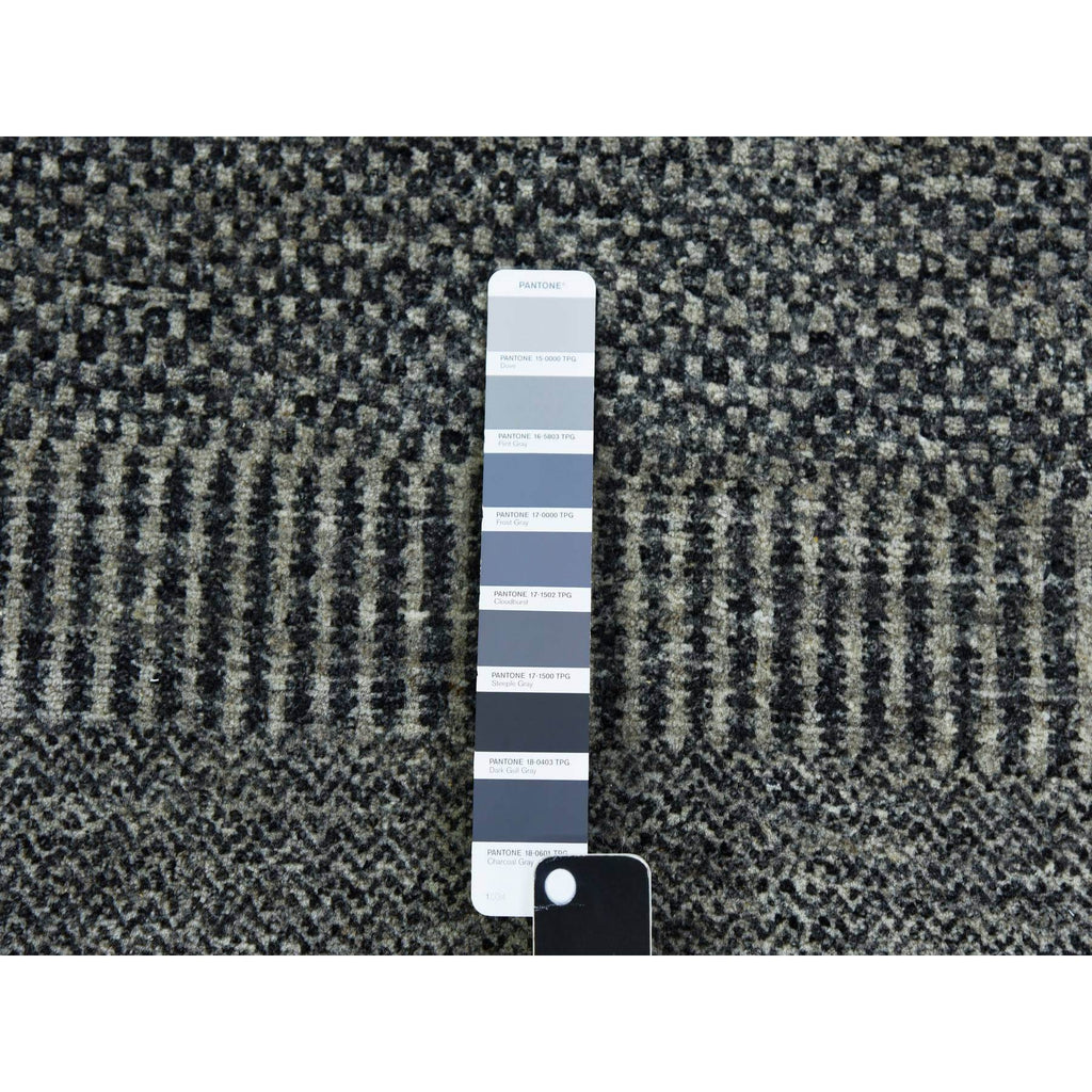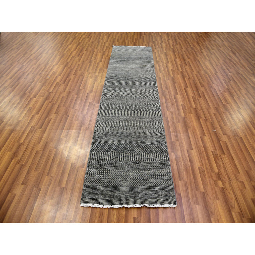 2'6"x10' Harbor Gray With Grease Black, Modern Grass Design, Hand Knotted, Pure Undyed Wool, Tone On Tone, Oriental Runner Rug FWR478236