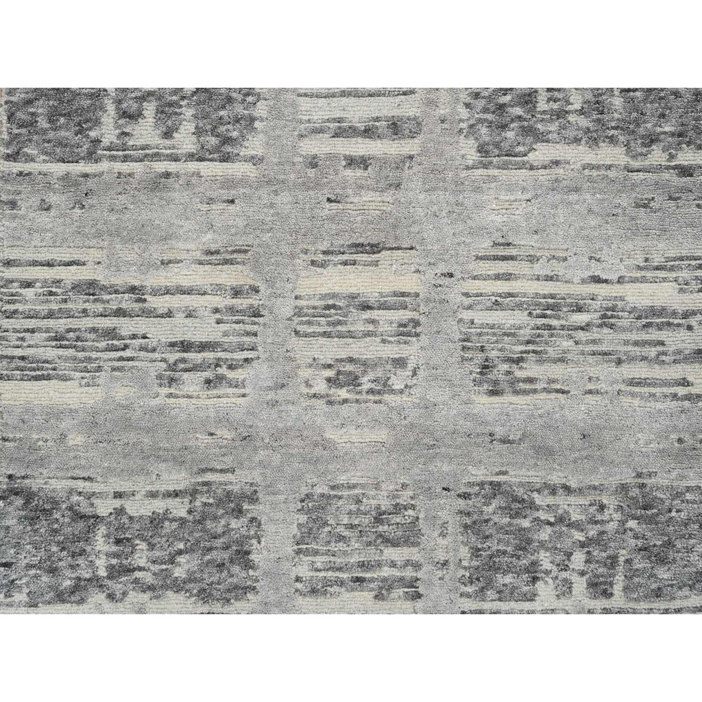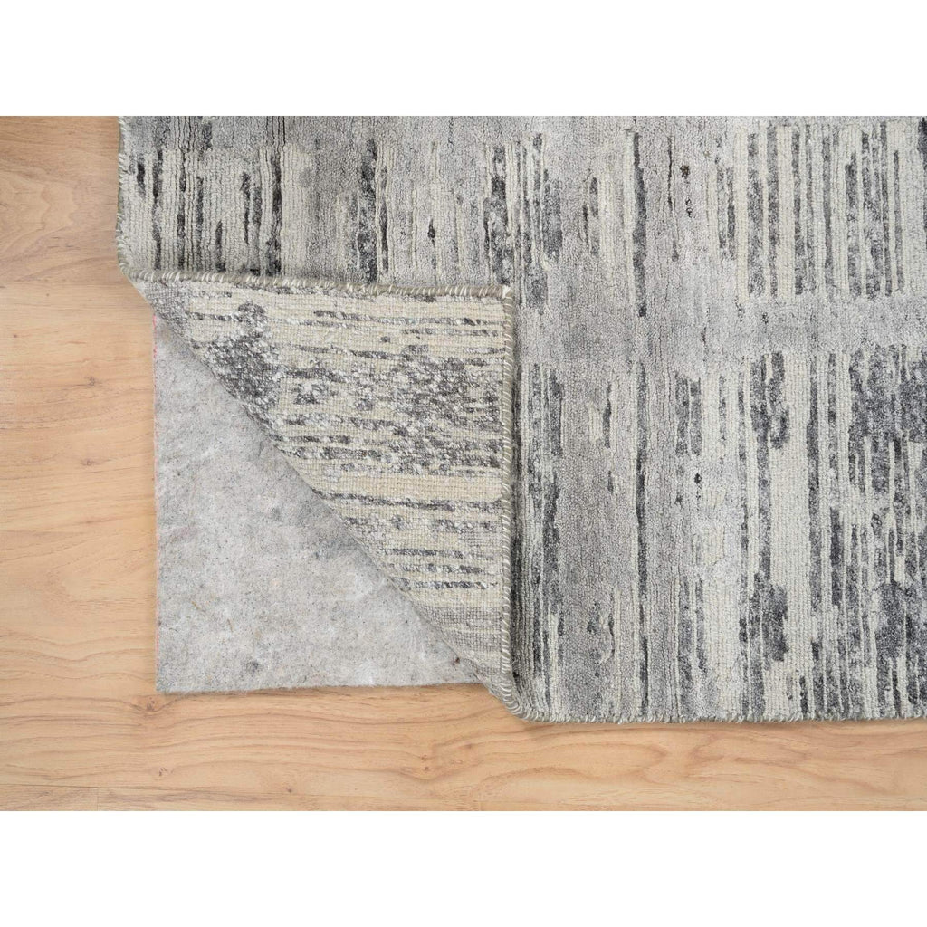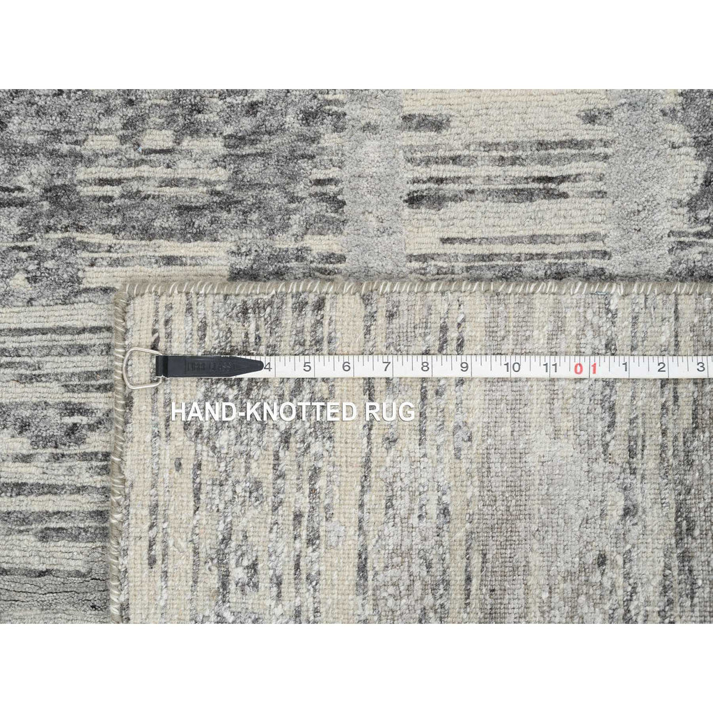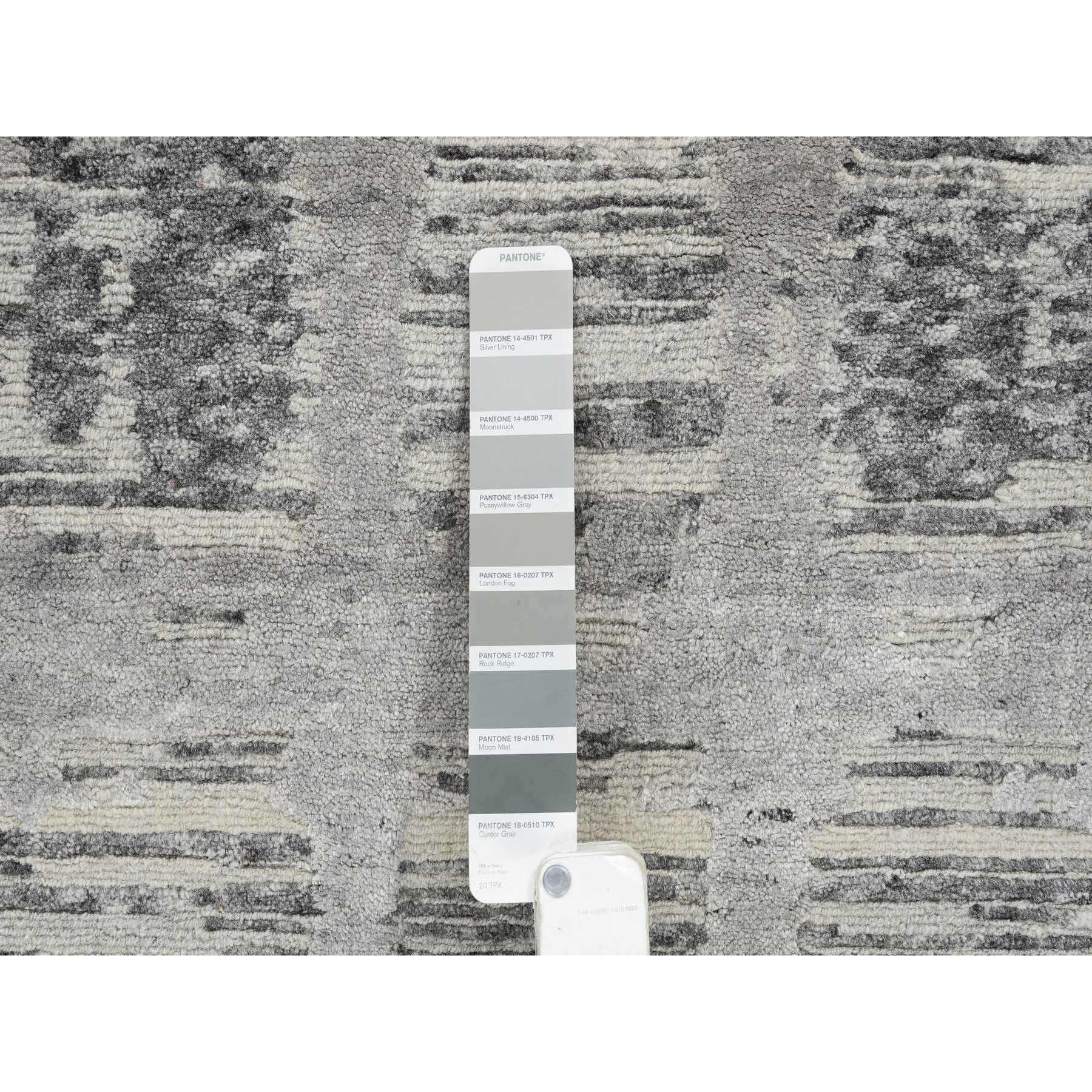 2'6"x10' Light Gray, Hand Knotted, Modern Criss Cross Erased Design, Hand Spun Undyed Natural Wool, Oriental Runner Rug FWR390996