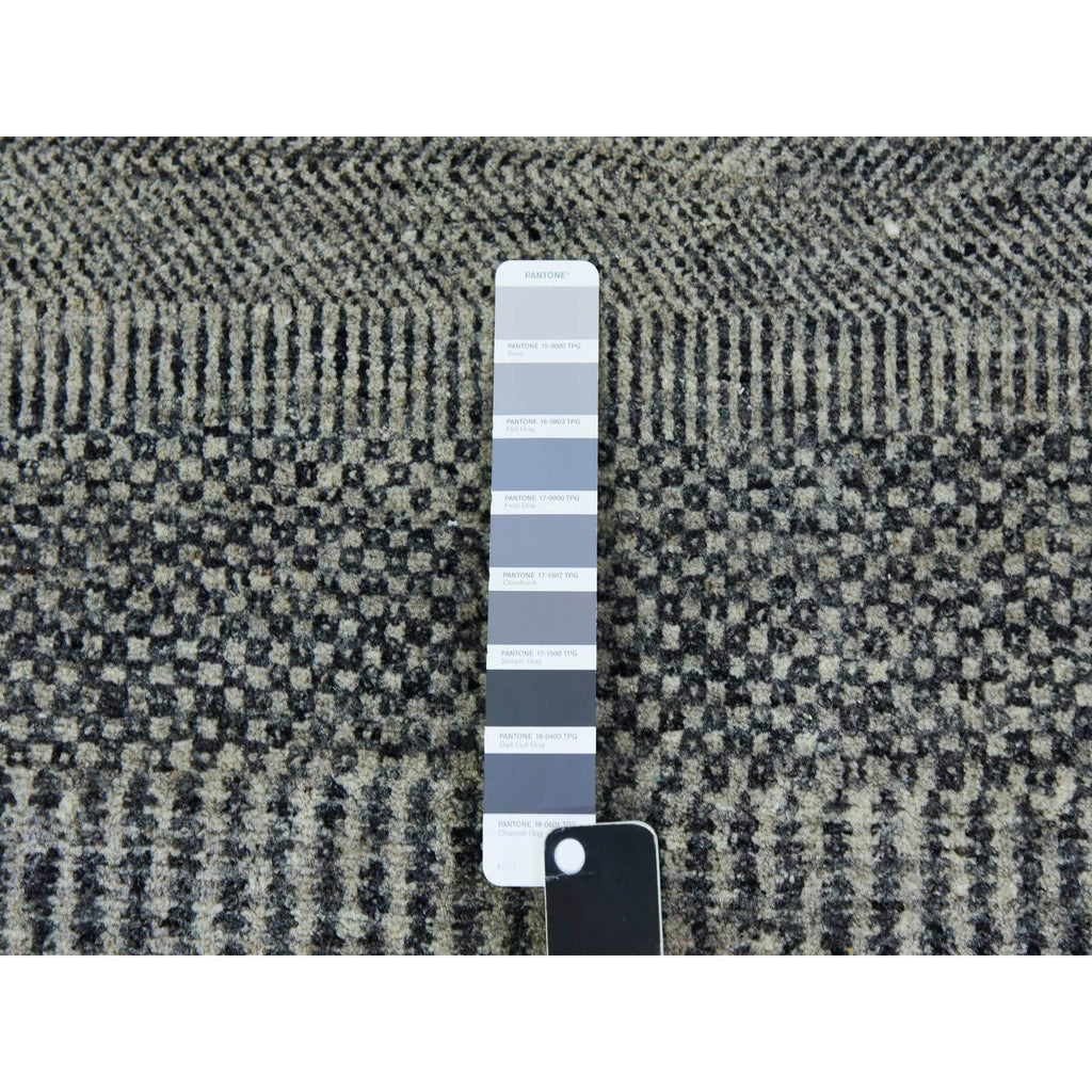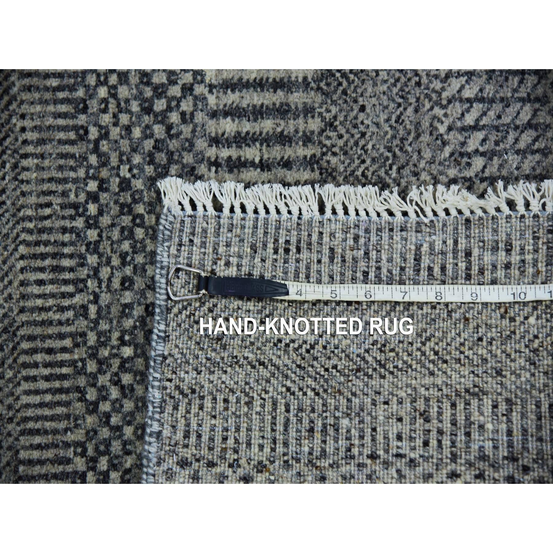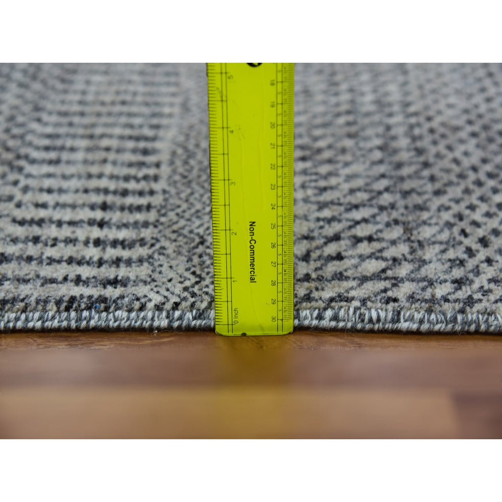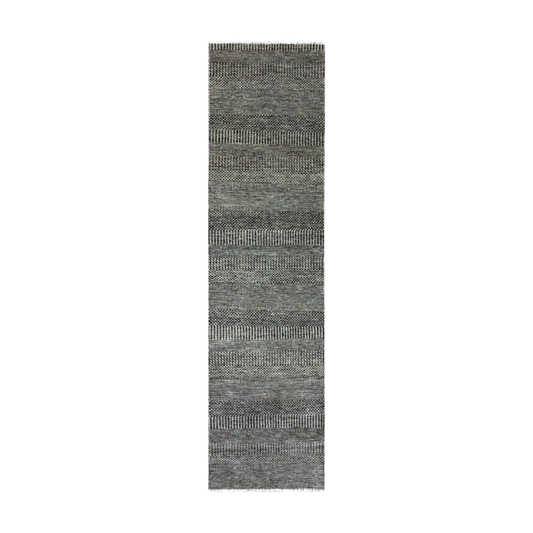 2'6"x10' Pastel Gray, Tone On Tone, Hand Knotted, Modern Undyed 100% Wool Grass Design, Runner Oriental Rug FWR478230