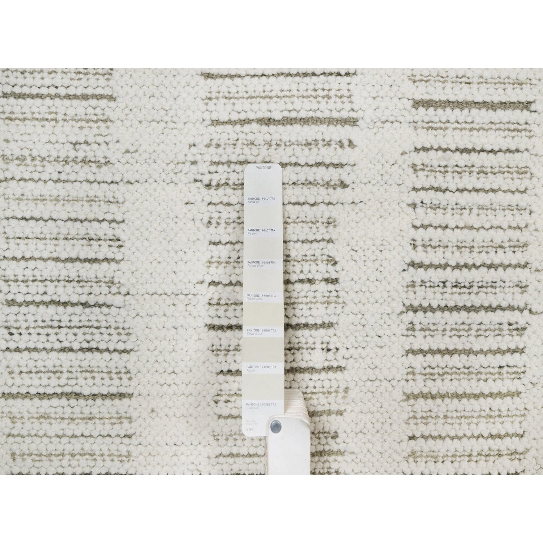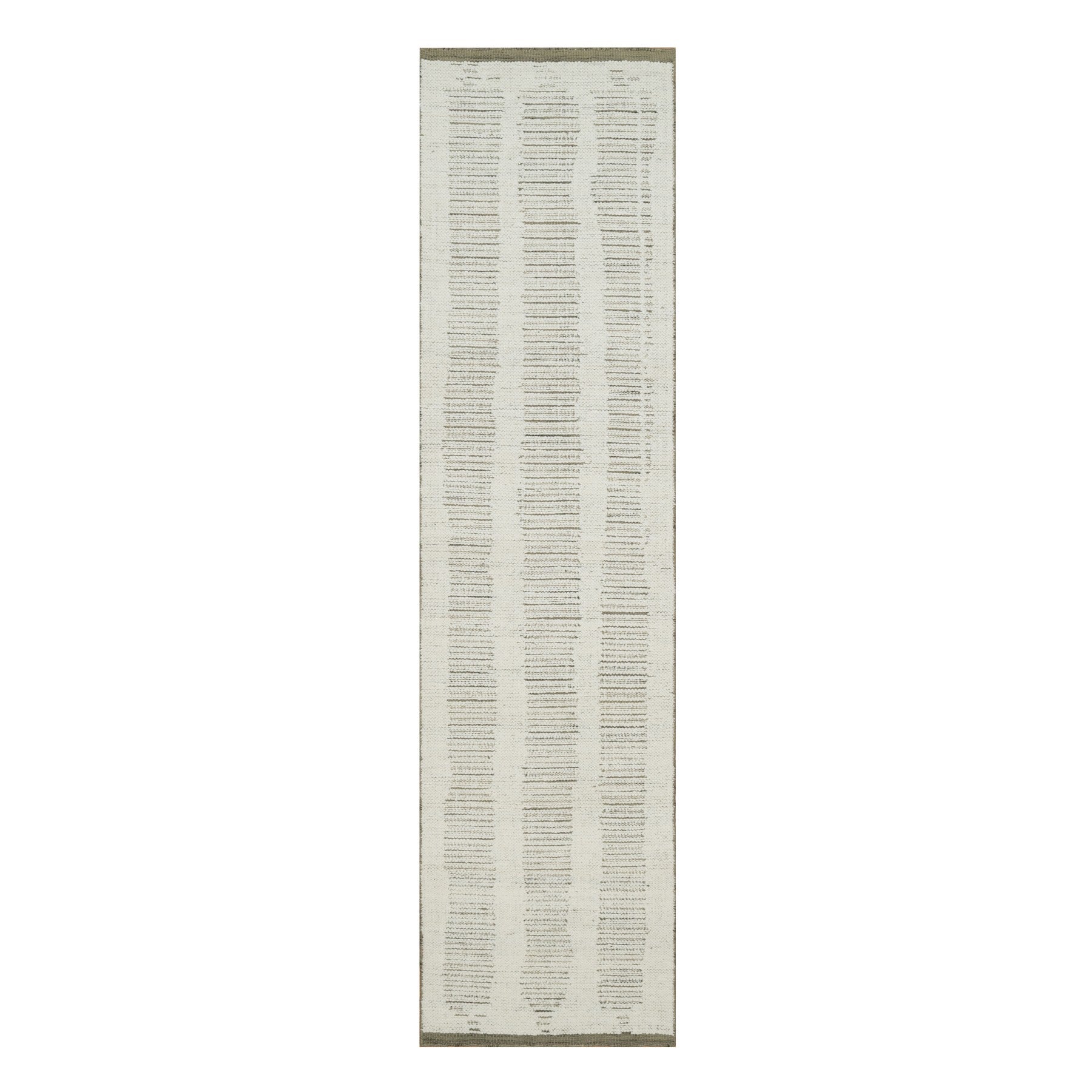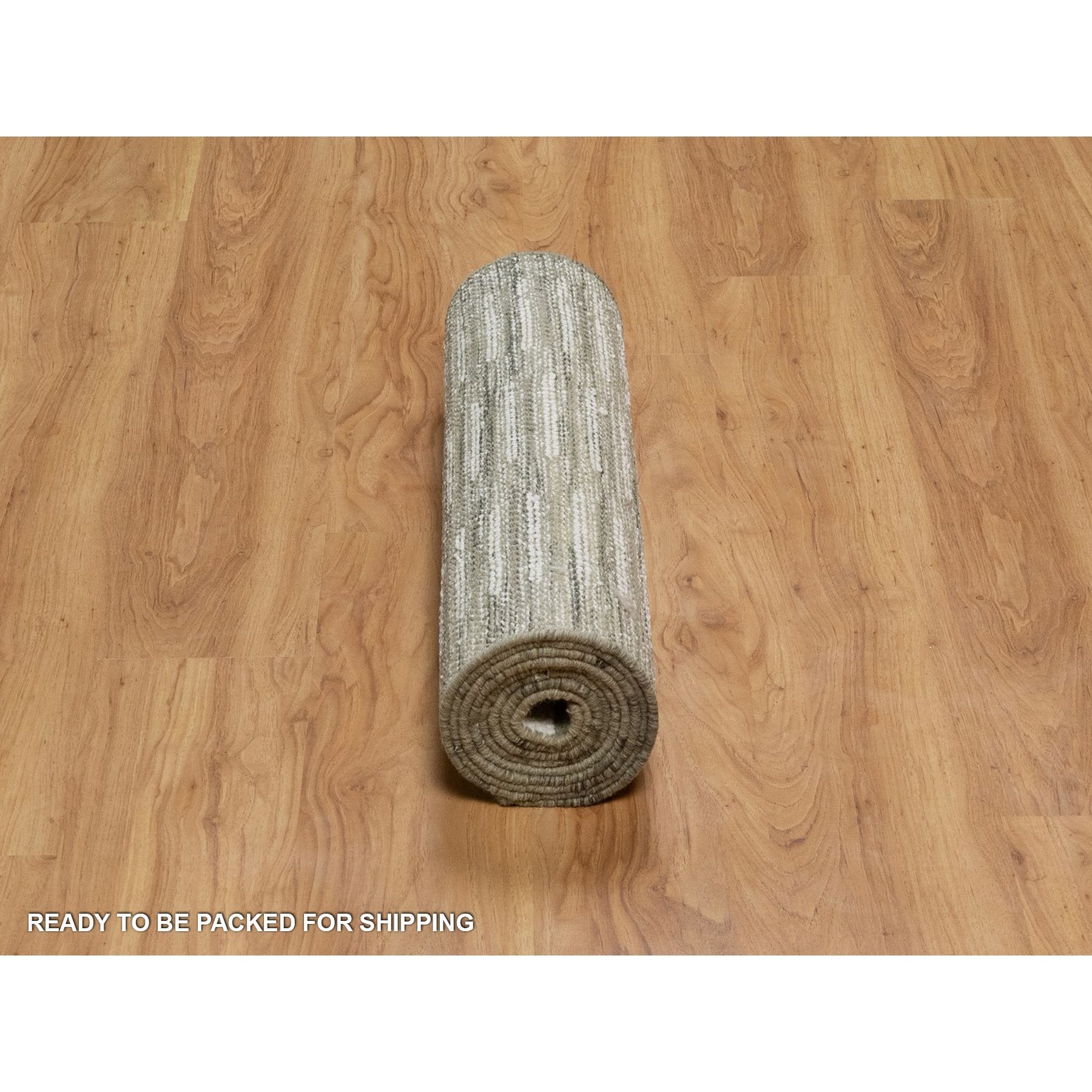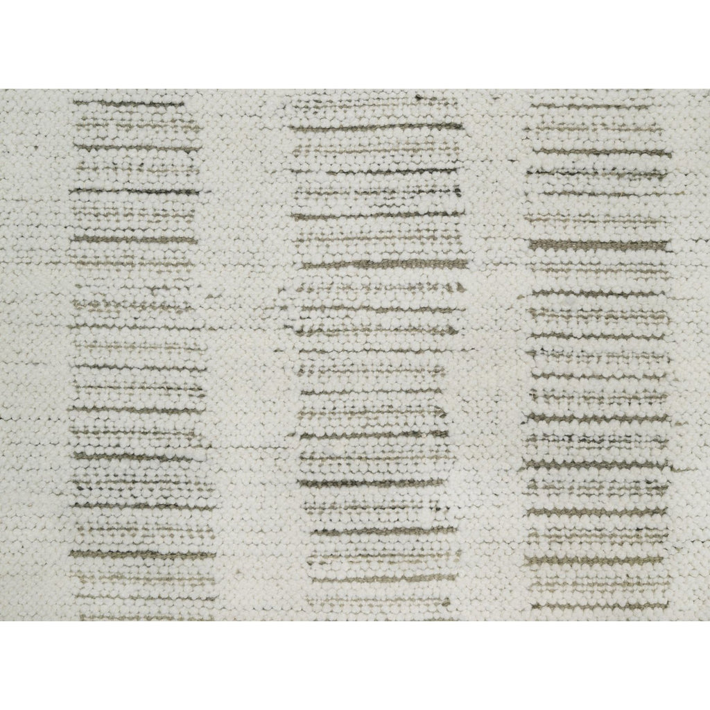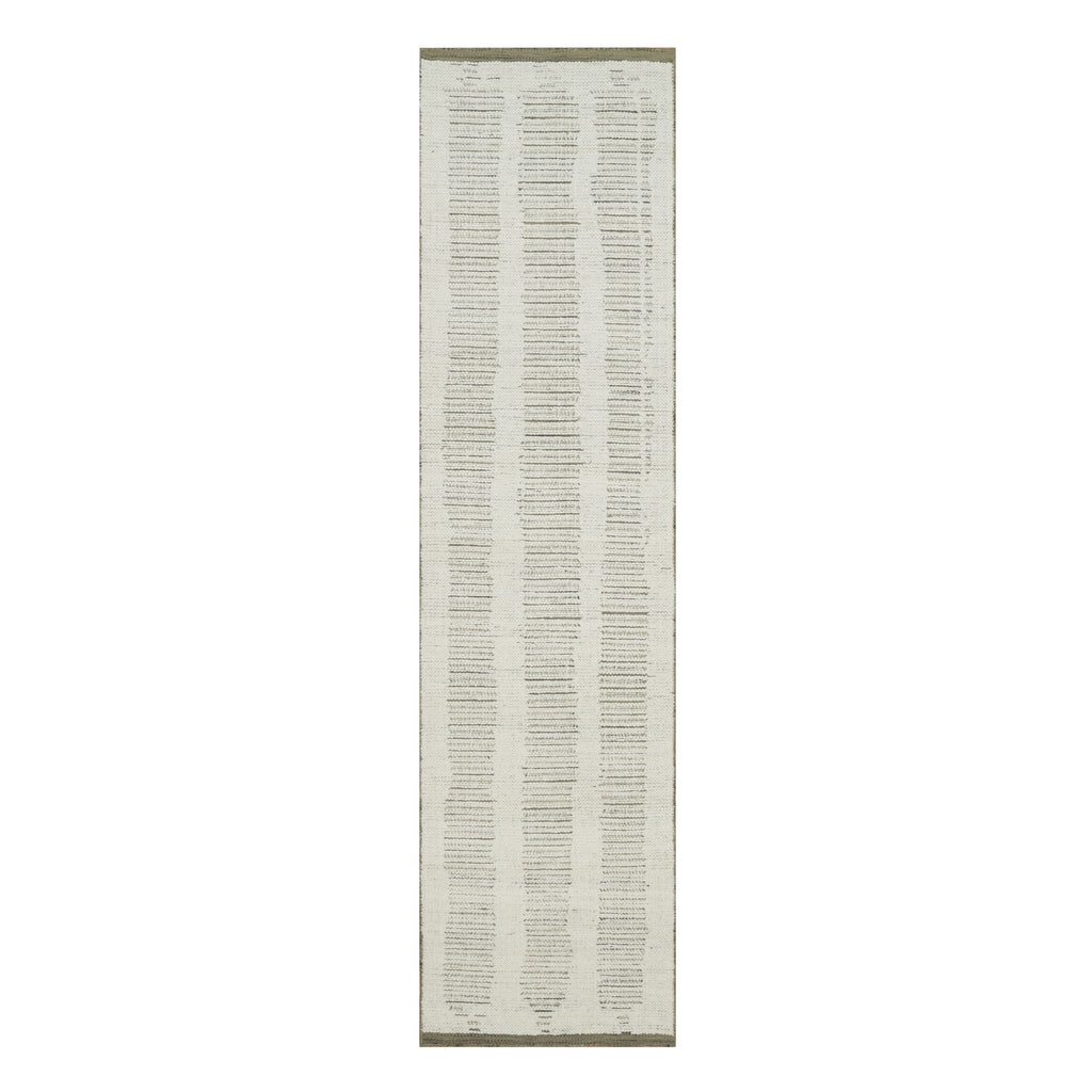 2'6"x10' Pearl White, Hand Woven, Flat Weave With Textured Pile, Undyed Natural Wool, Runner, Oriental Rug FWR550356
