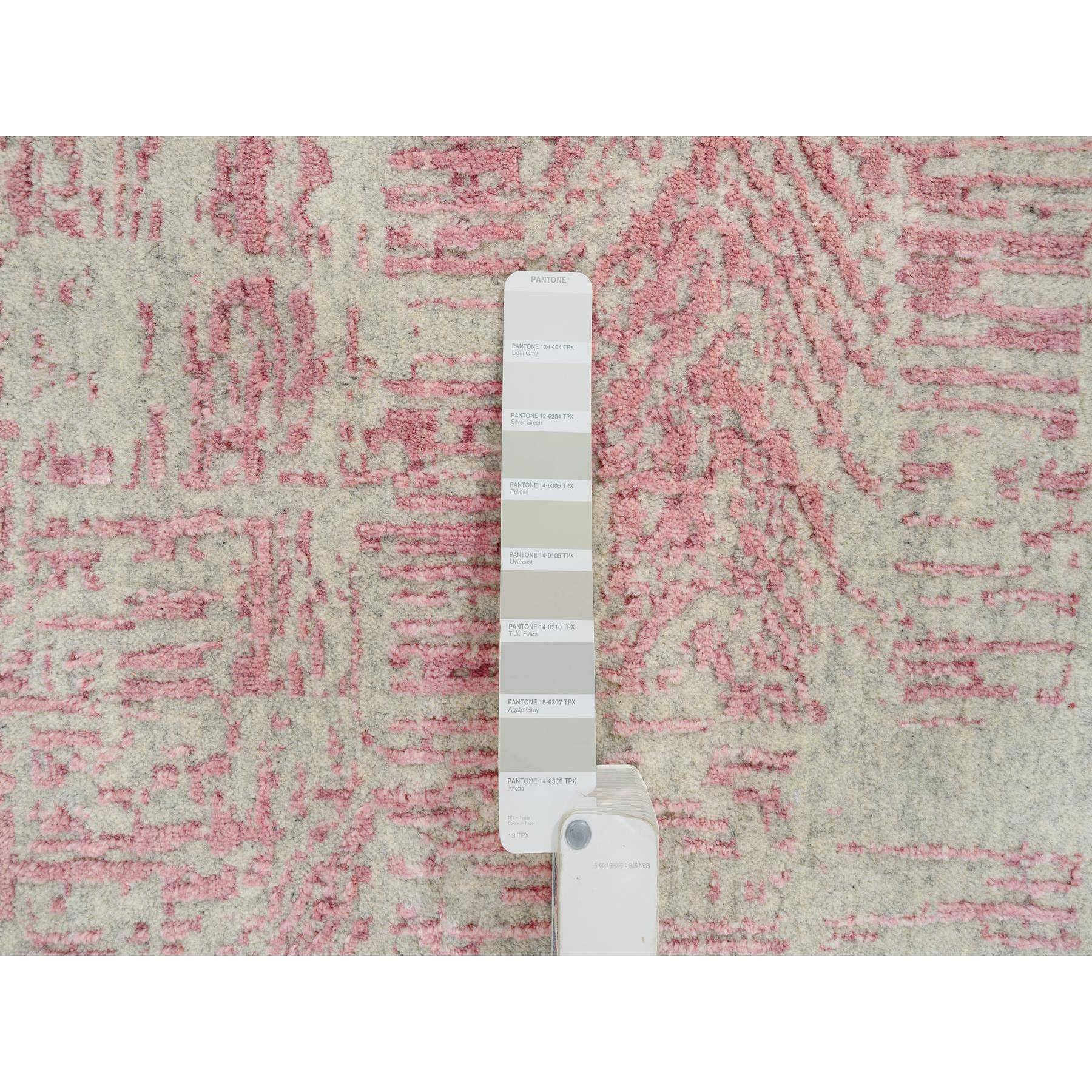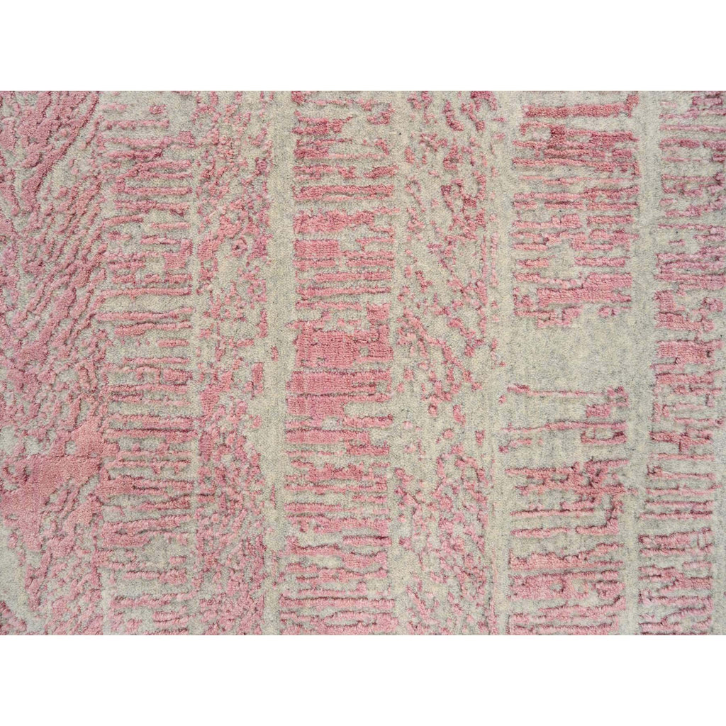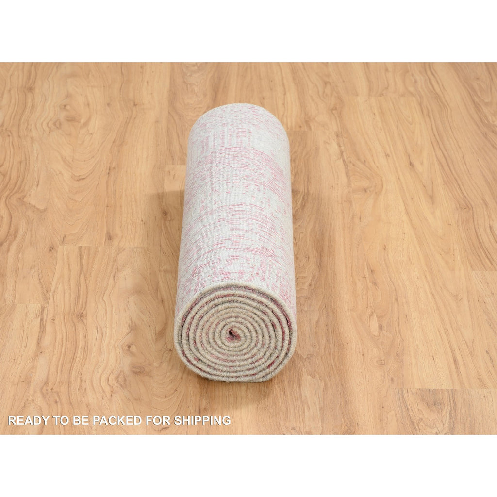 2'6"x10' Rose Pink, Wool And Art Silk Jacquard Hand Loomed, All Over Design, Runner Oriental Rug FWR388878