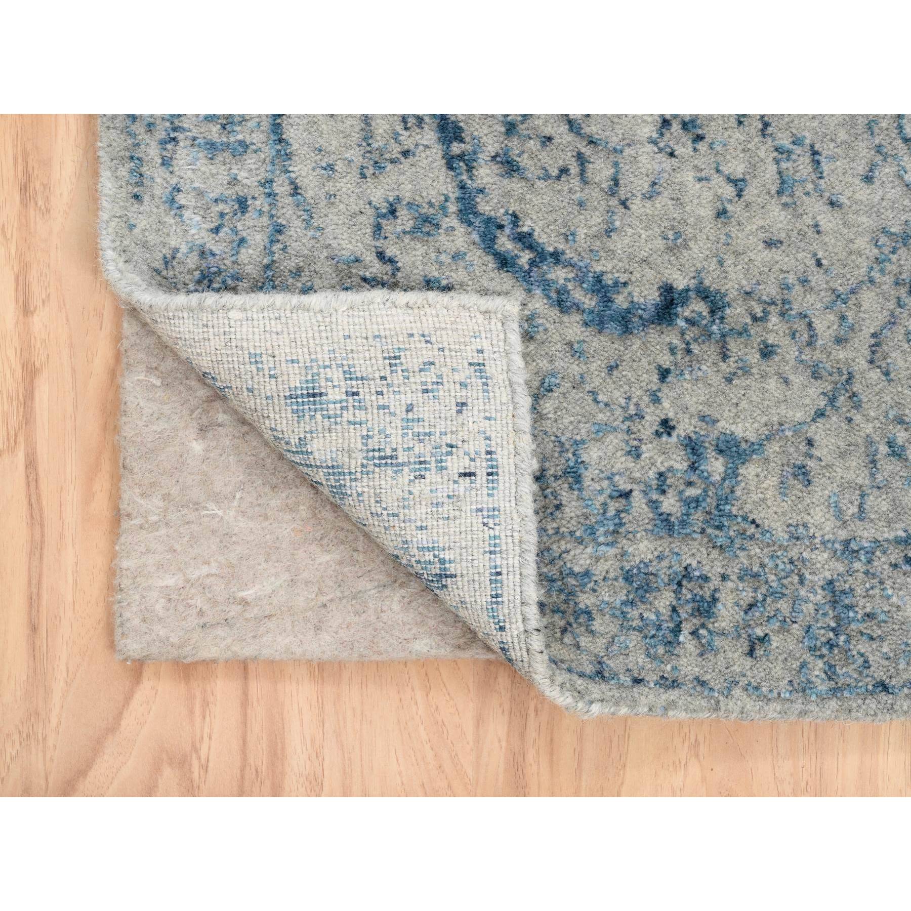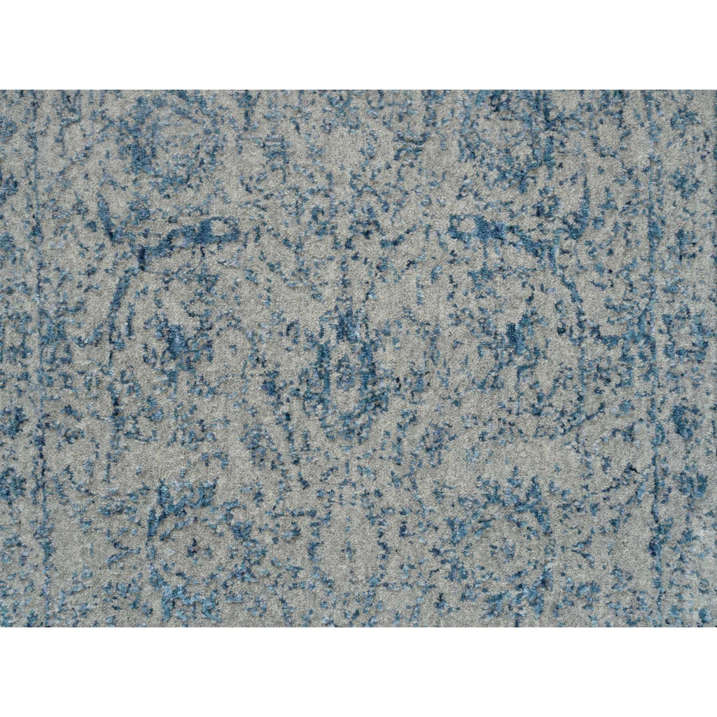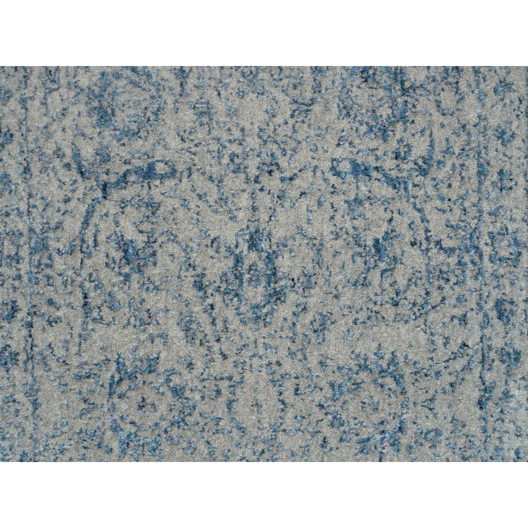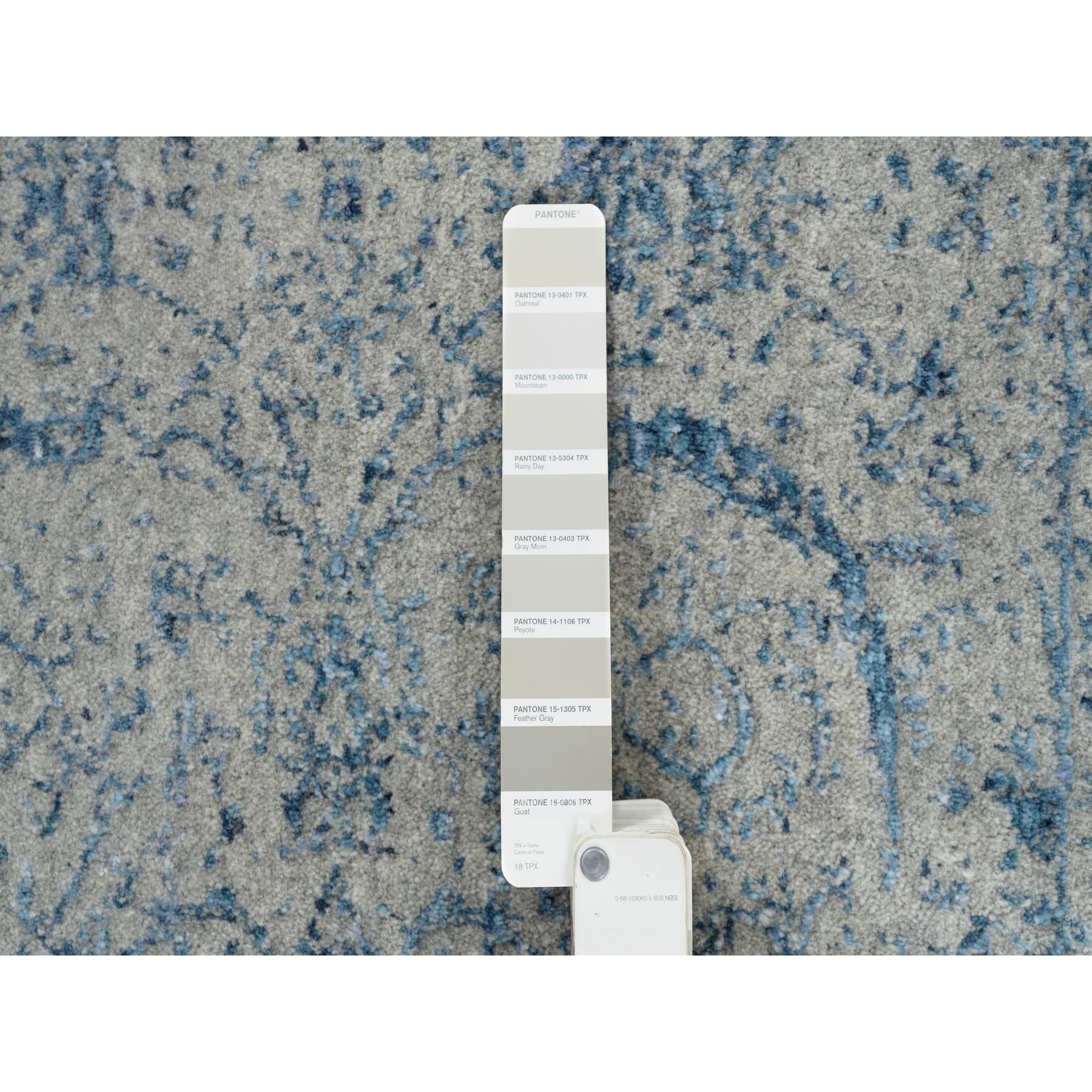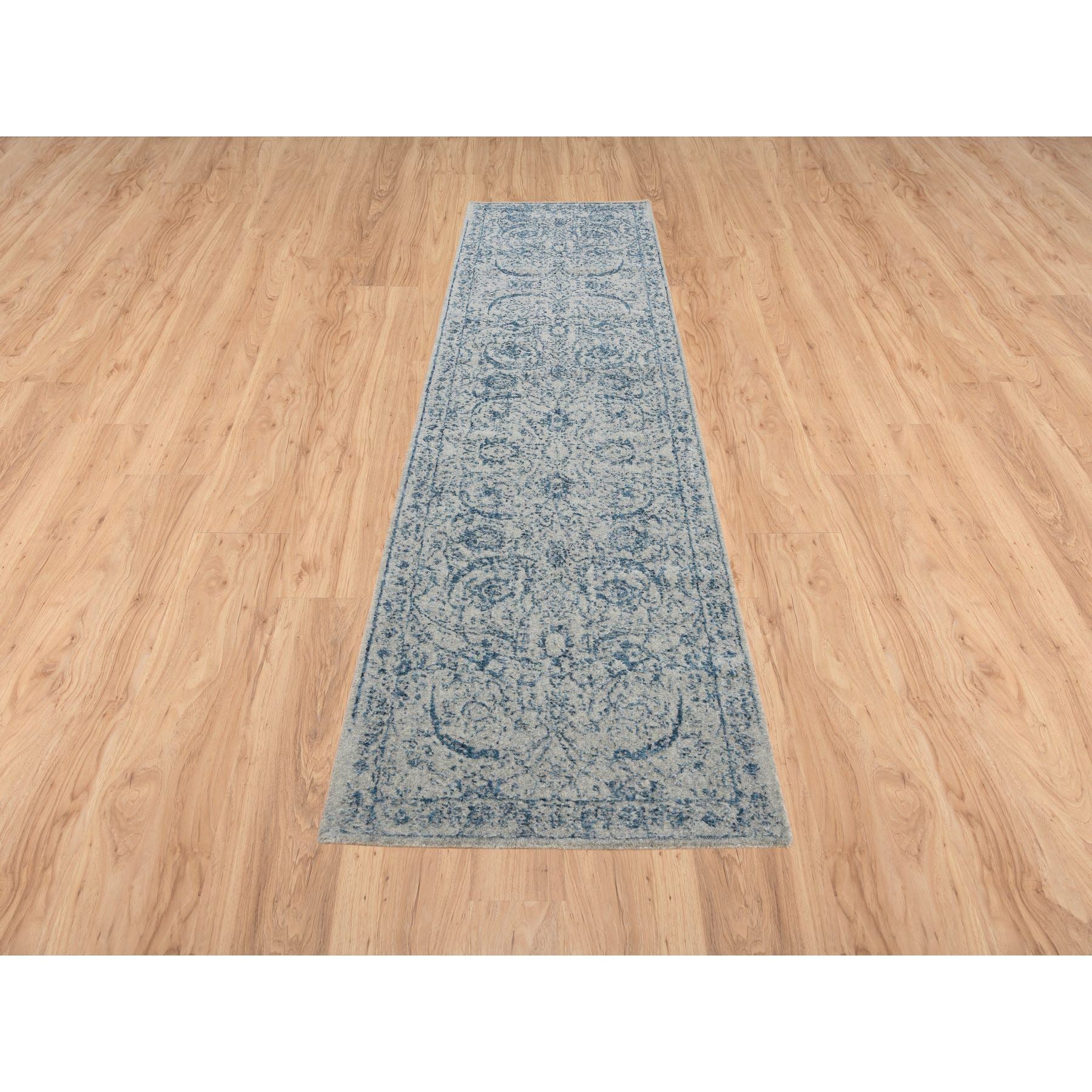 2'6"x10' Wool And Plant Based Silk Hand Loomed Gray Fine Jacquard With Sickle Leaf Design Oriental Runner Rug FWR381066