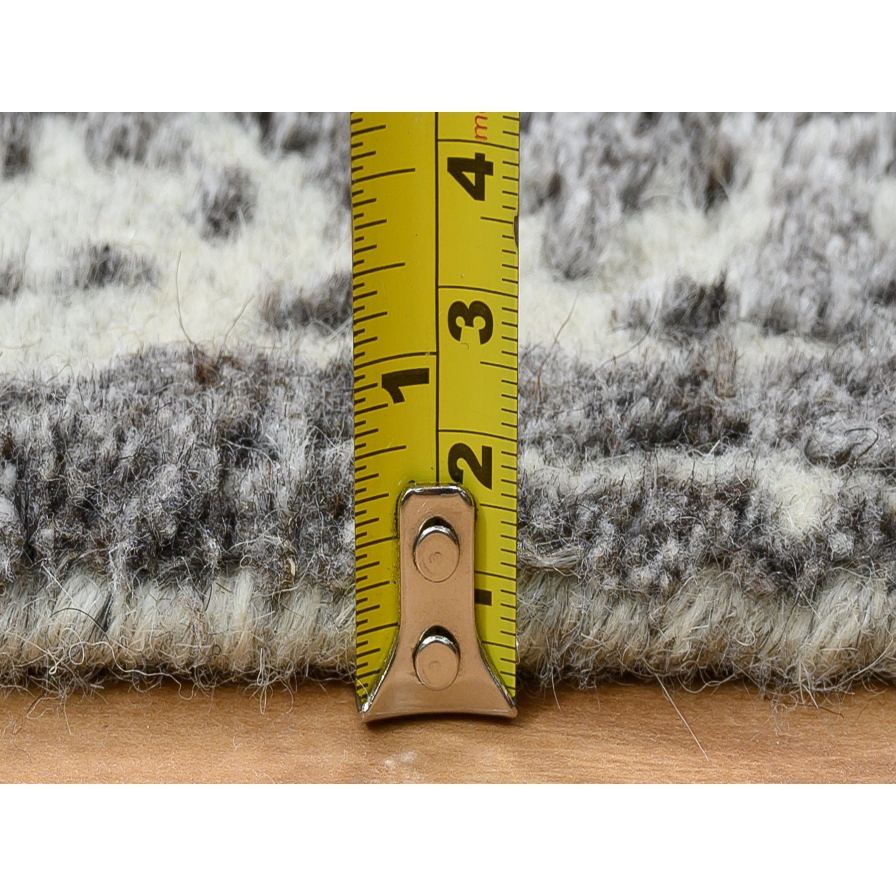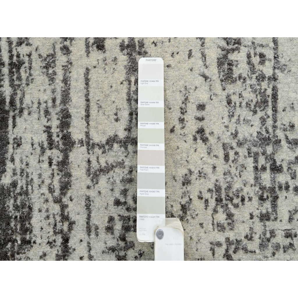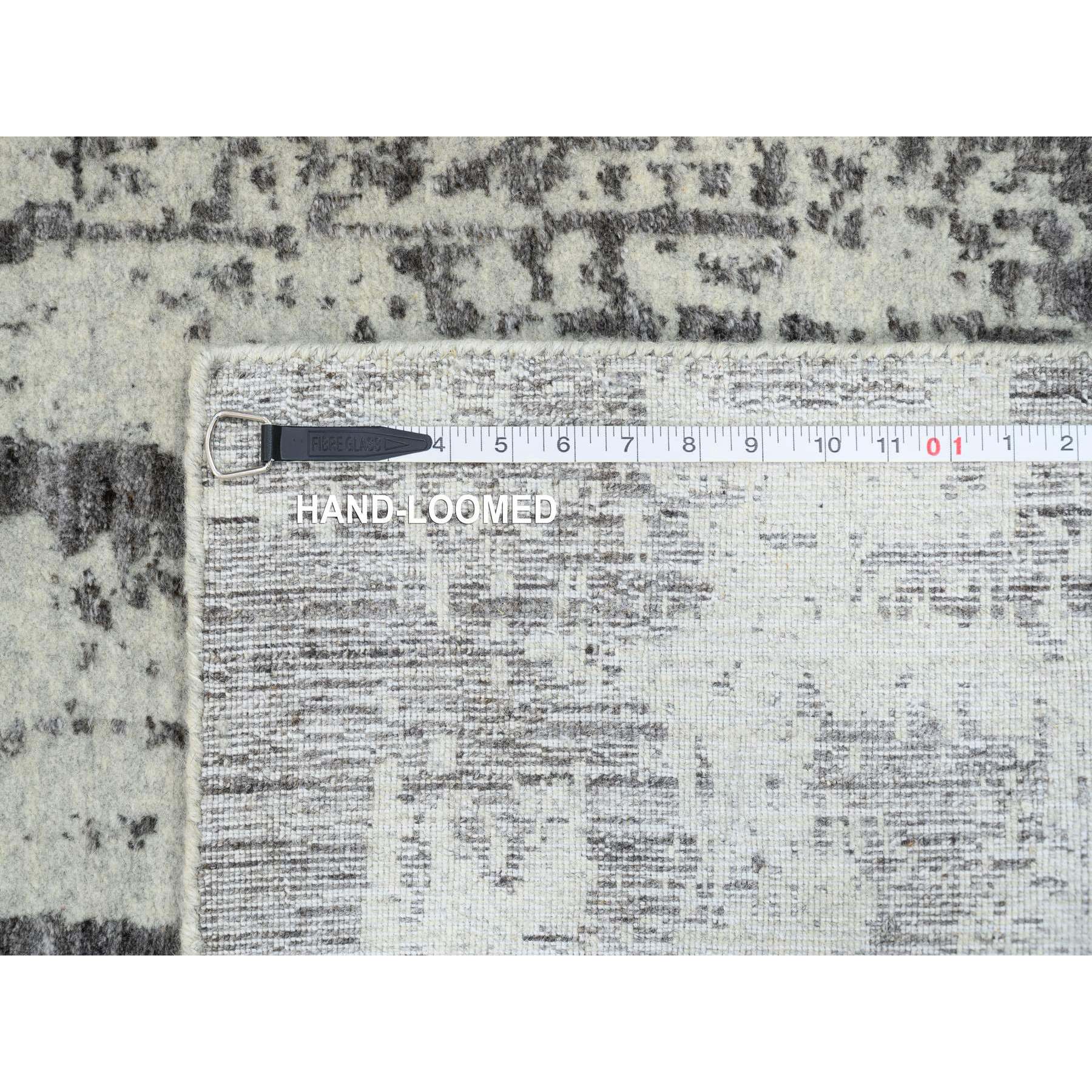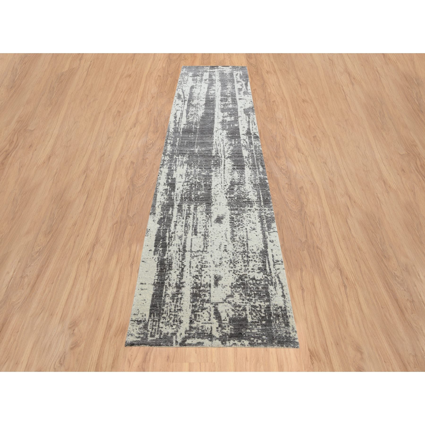 2'6"x11'10" Charcoal Black, Hand Loomed Modern Design Jacquard, Tone On Tone Wool And Art Silk, Runner Oriental Rug FWR385962