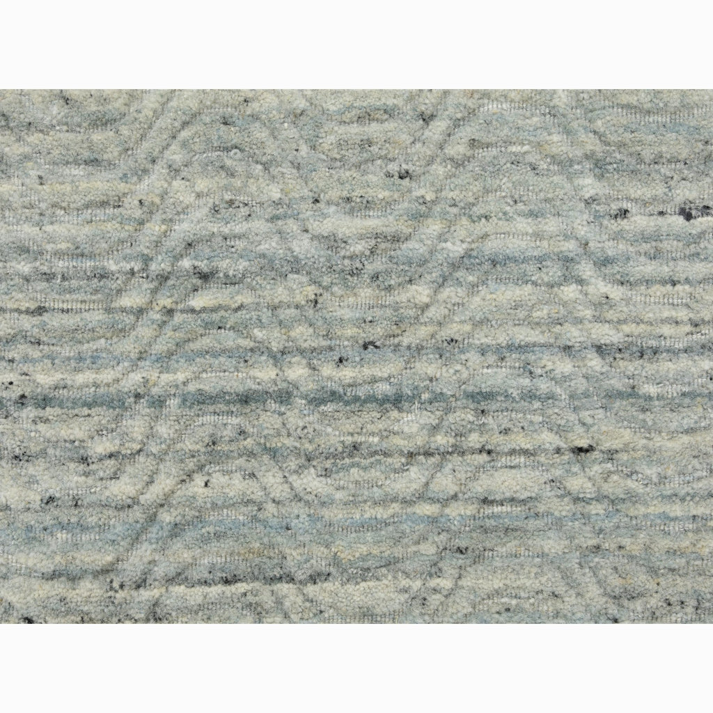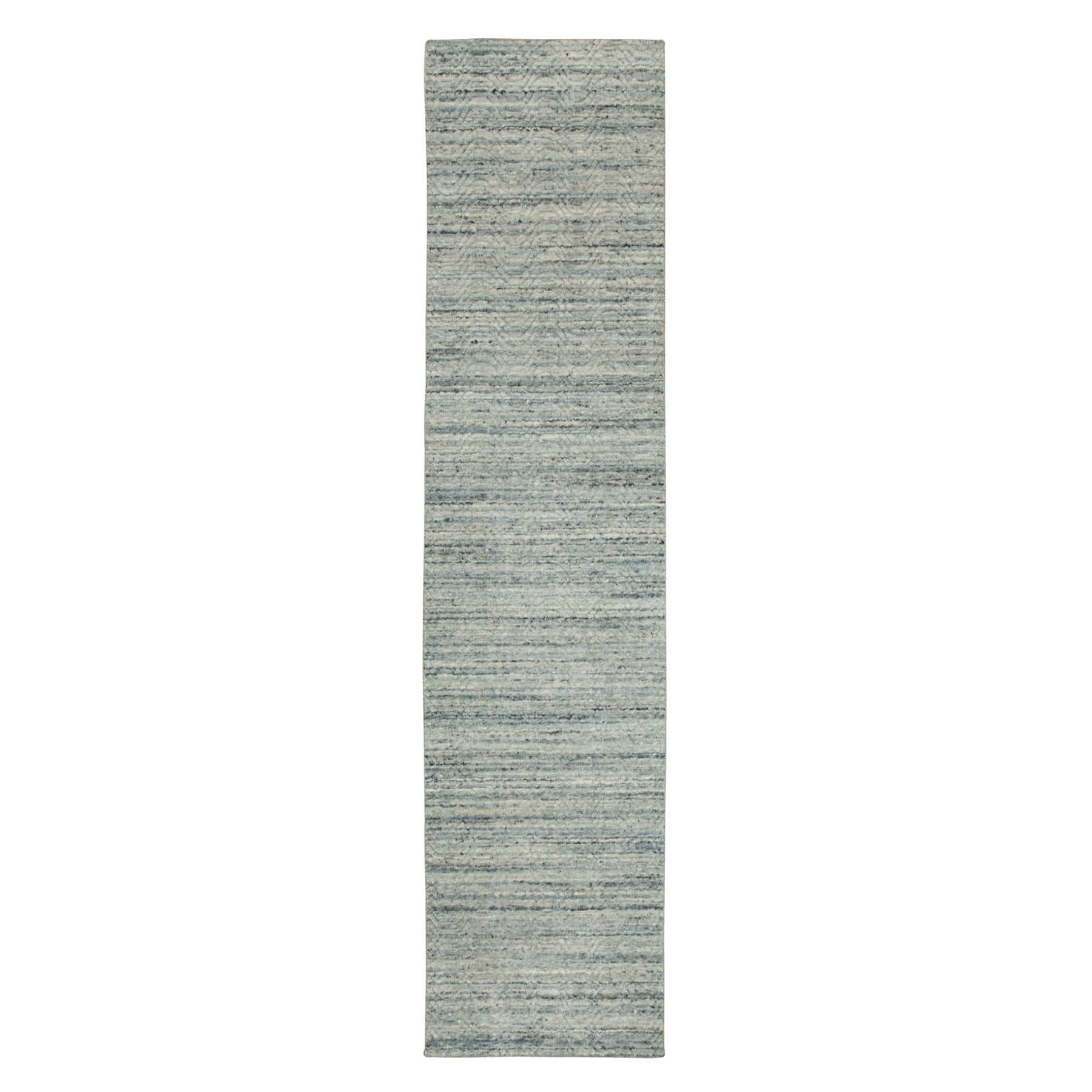2'6"x11'10" Green Organic Wool Variegated Textured Design Runner Hand Loomed Modern Oriental Rug FWR351432