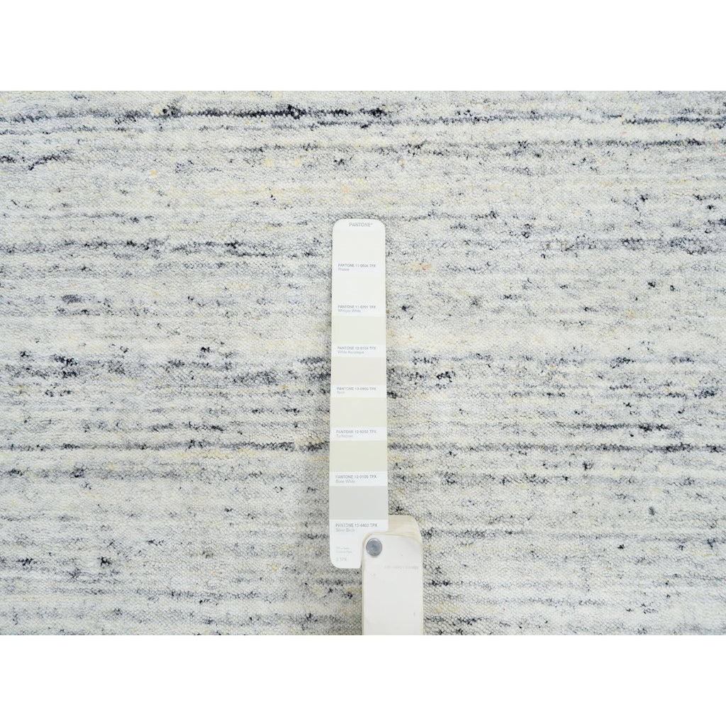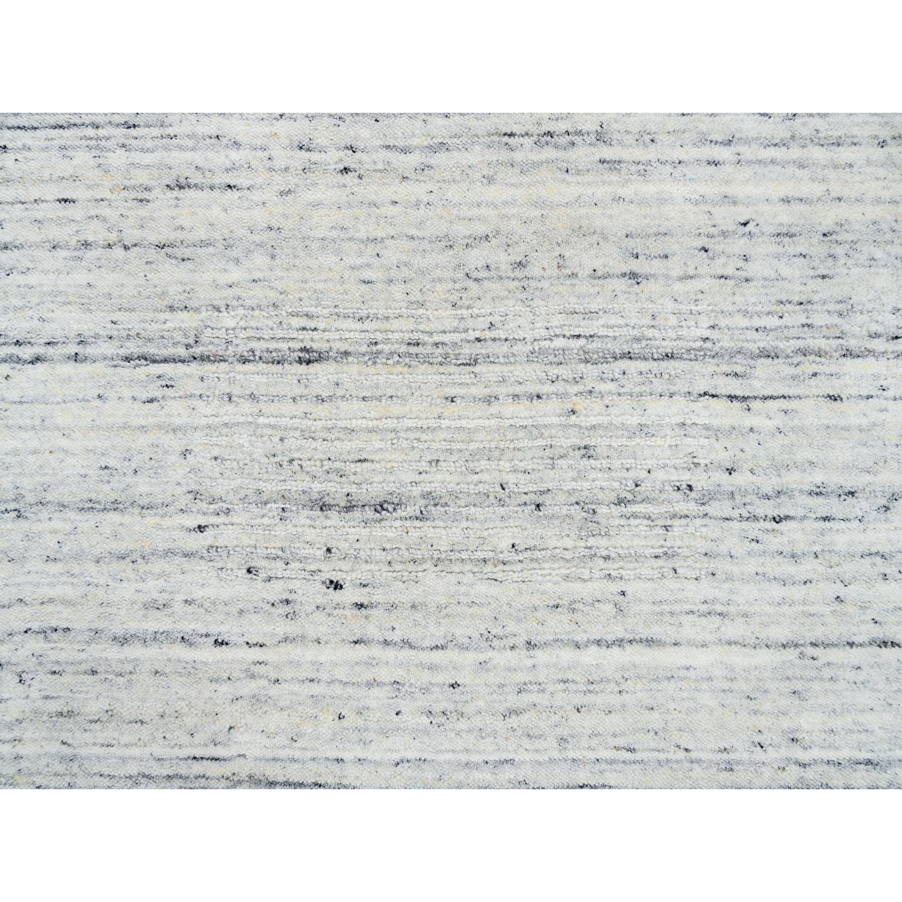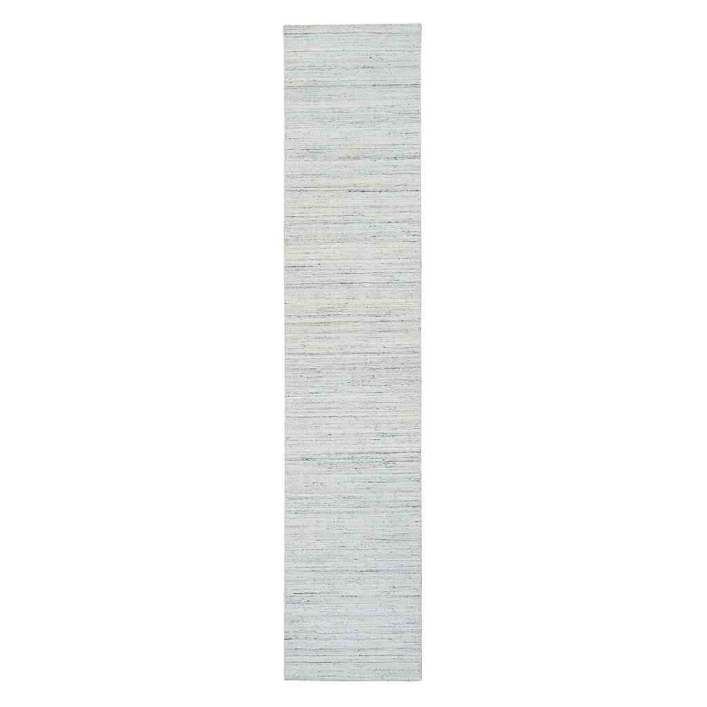 2'6"x11'10" Ivory, Hand Loomed Plain Modern Striae Design, Soft Pile Natural Wool, Runner Oriental Rug FWR388686