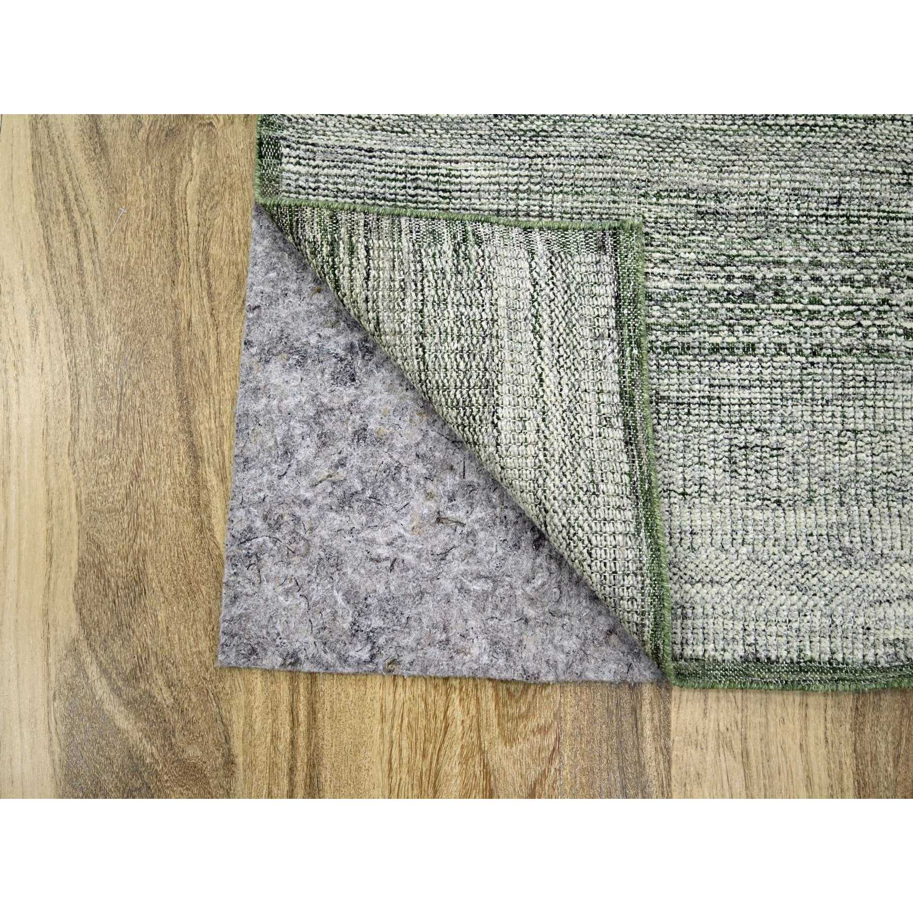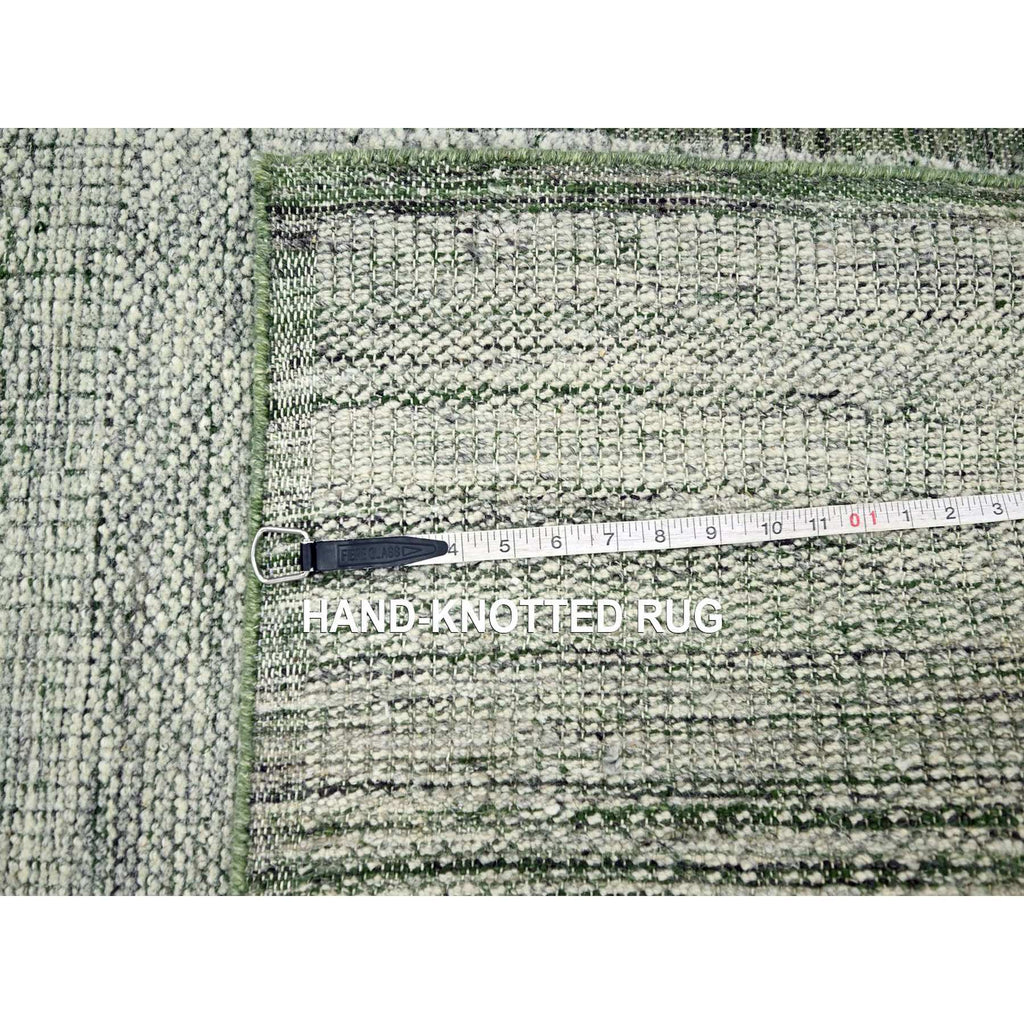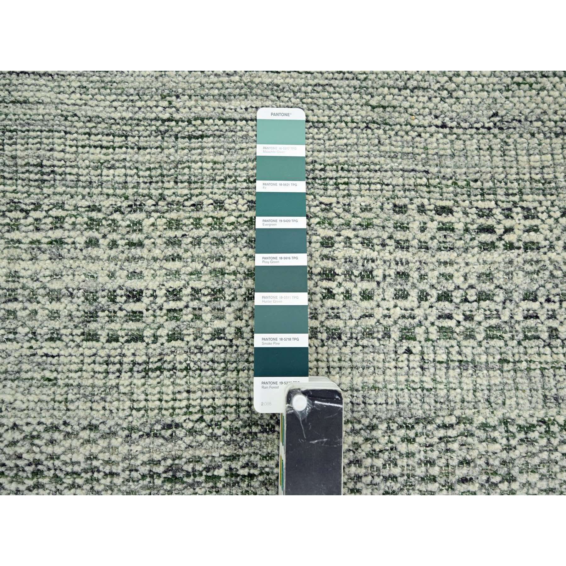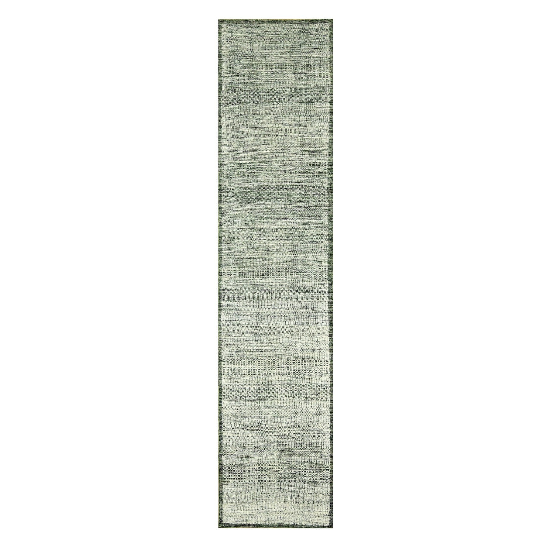 2'6"x11'10" Pine Green, 100% Wool, Oxidized And Distressed Grass Design With Exposed Warps, Hand Knotted, Runner, Oriental Rug FWR460440