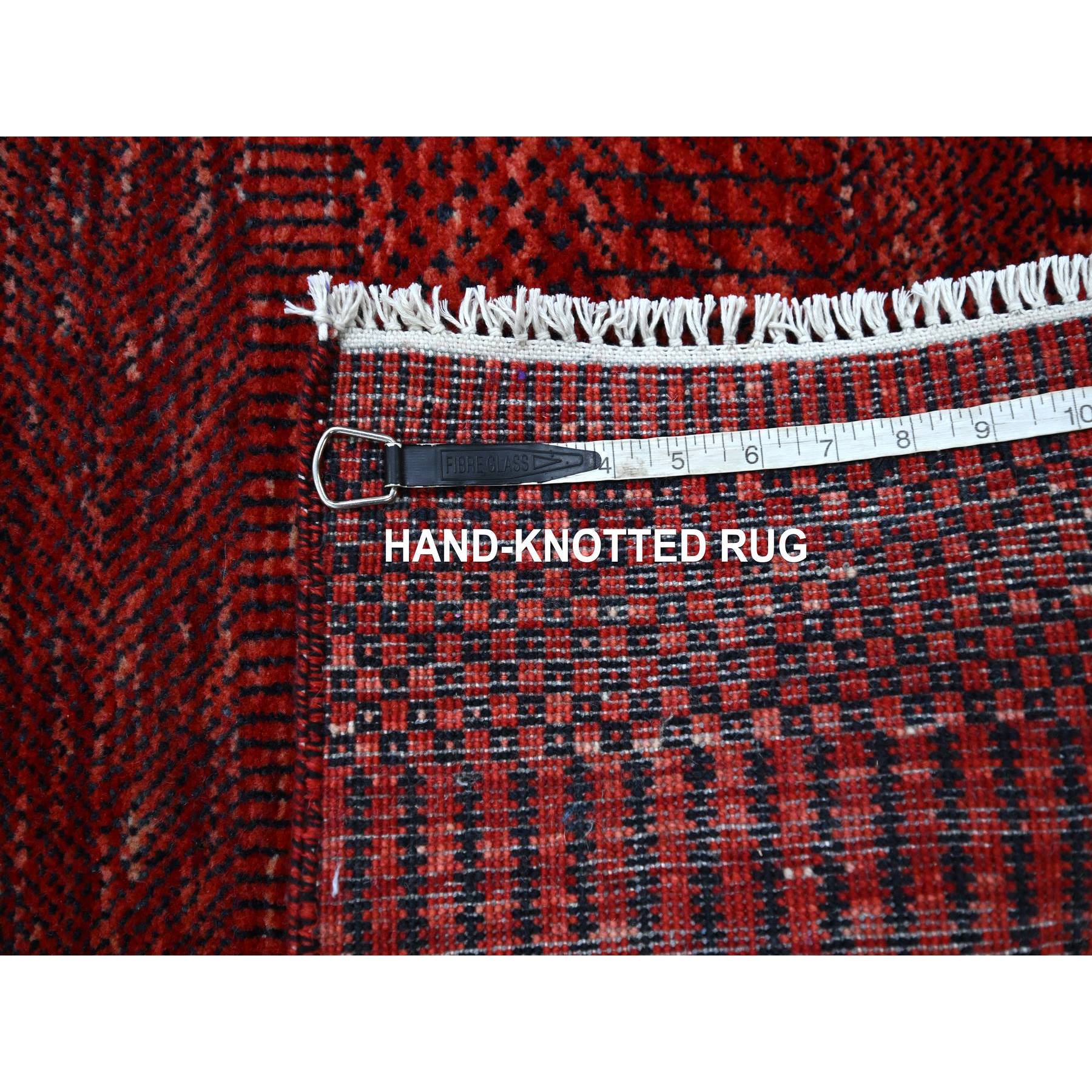 2'6"x11'10" Ruby Red, Modern Grass Design, Hand Knotted, Denser Weave, Tone On Tone, Wool And Silk, Lush And Plush, Runner, Oriental Rug FWR457902