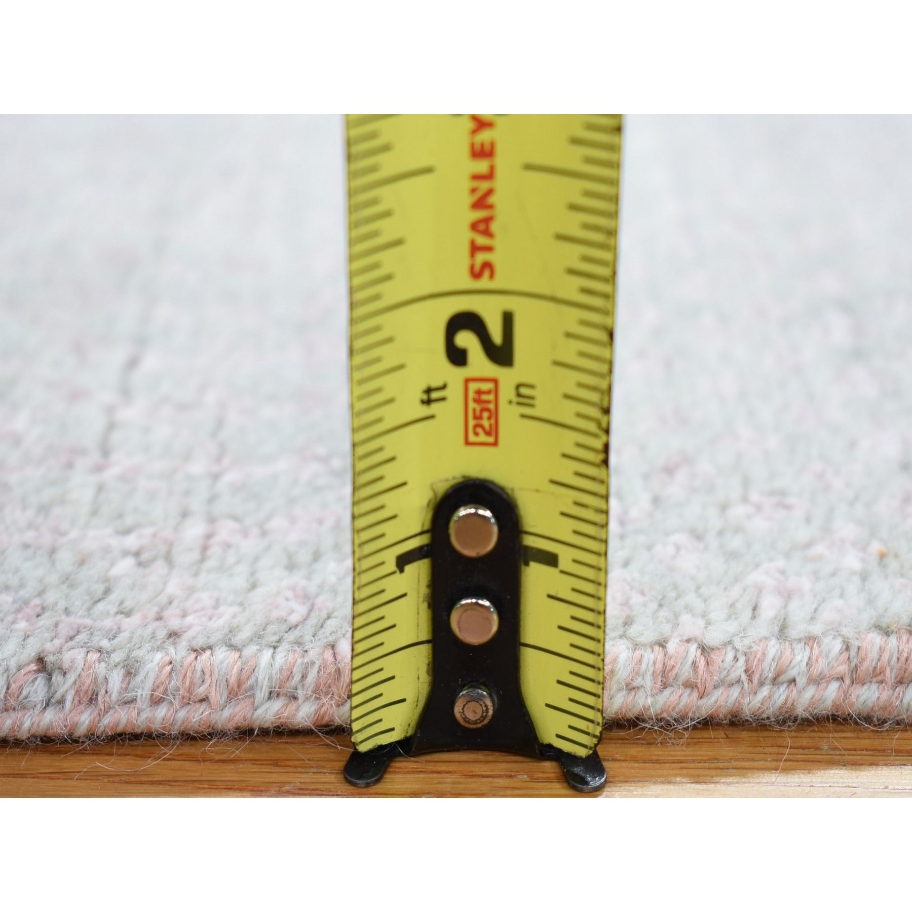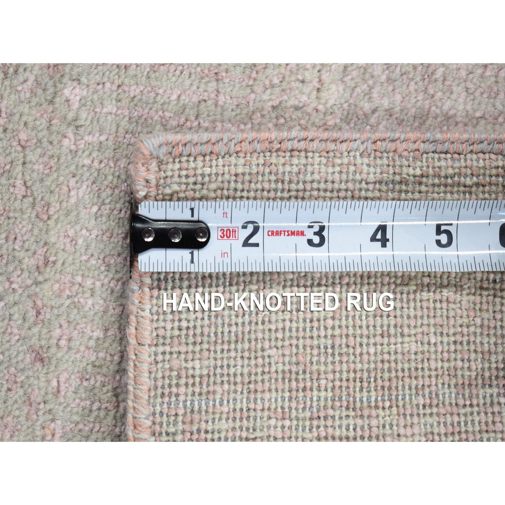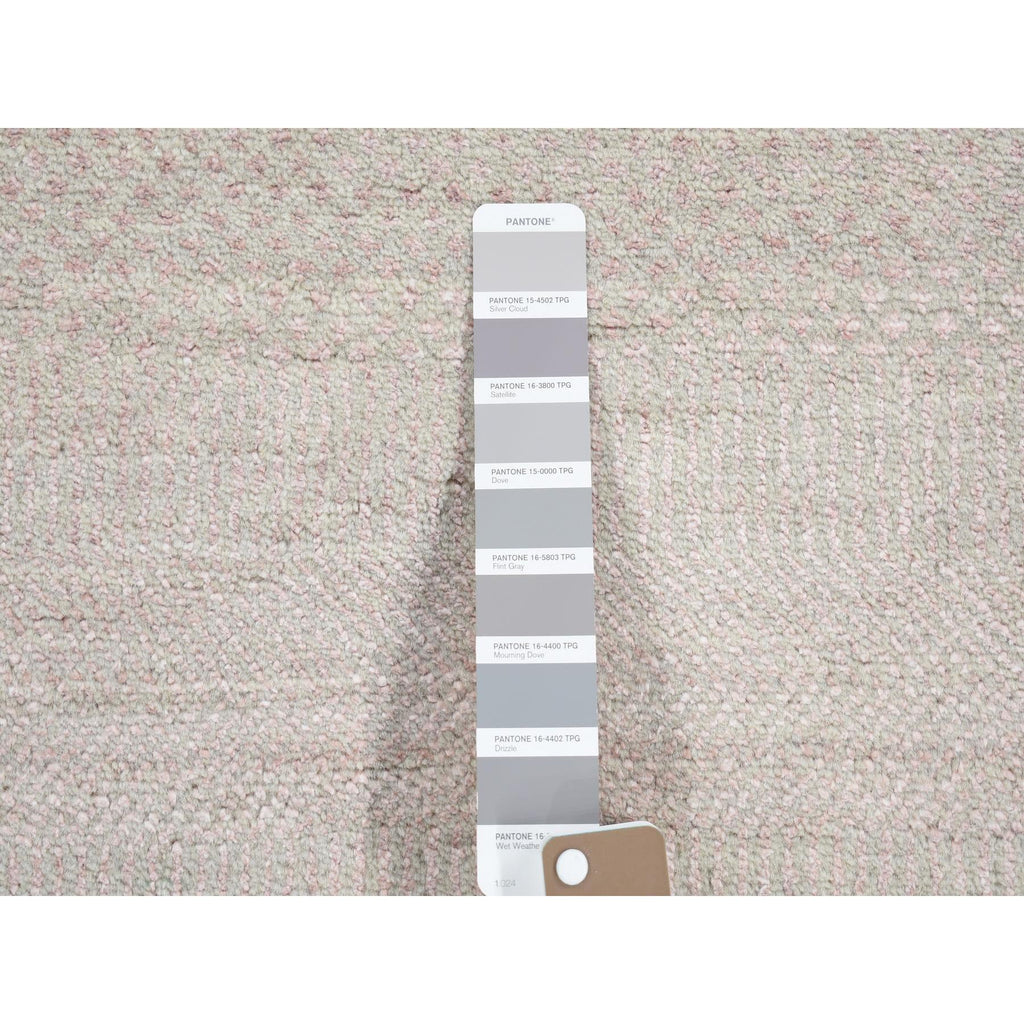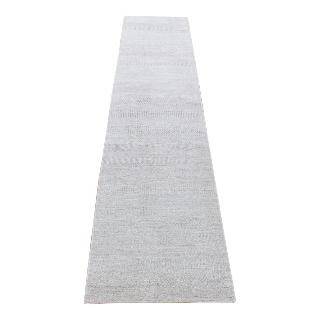 2'6"x11'3" Light Gray With Touches Of Pink, Modern Grass Design Gabbeh Densely Woven, Wool And Silk Hand Knotted, Runner Oriental Rug FWR482028