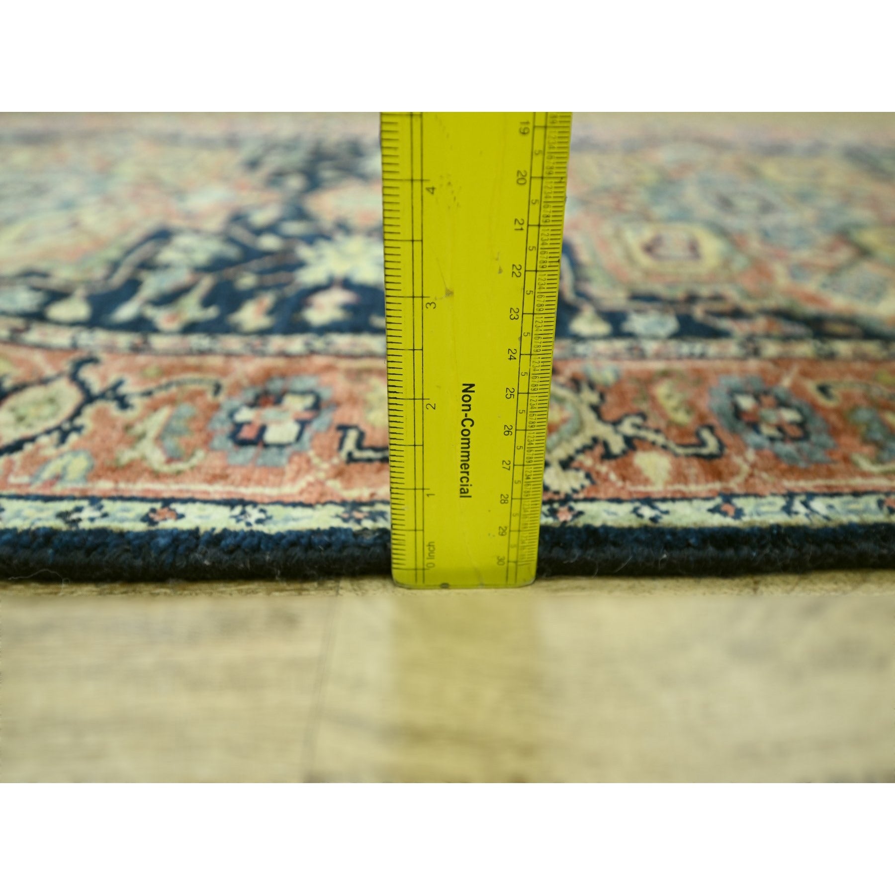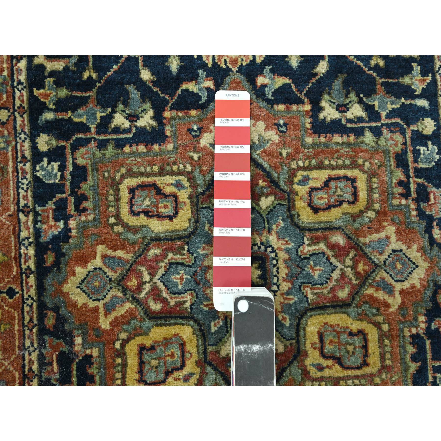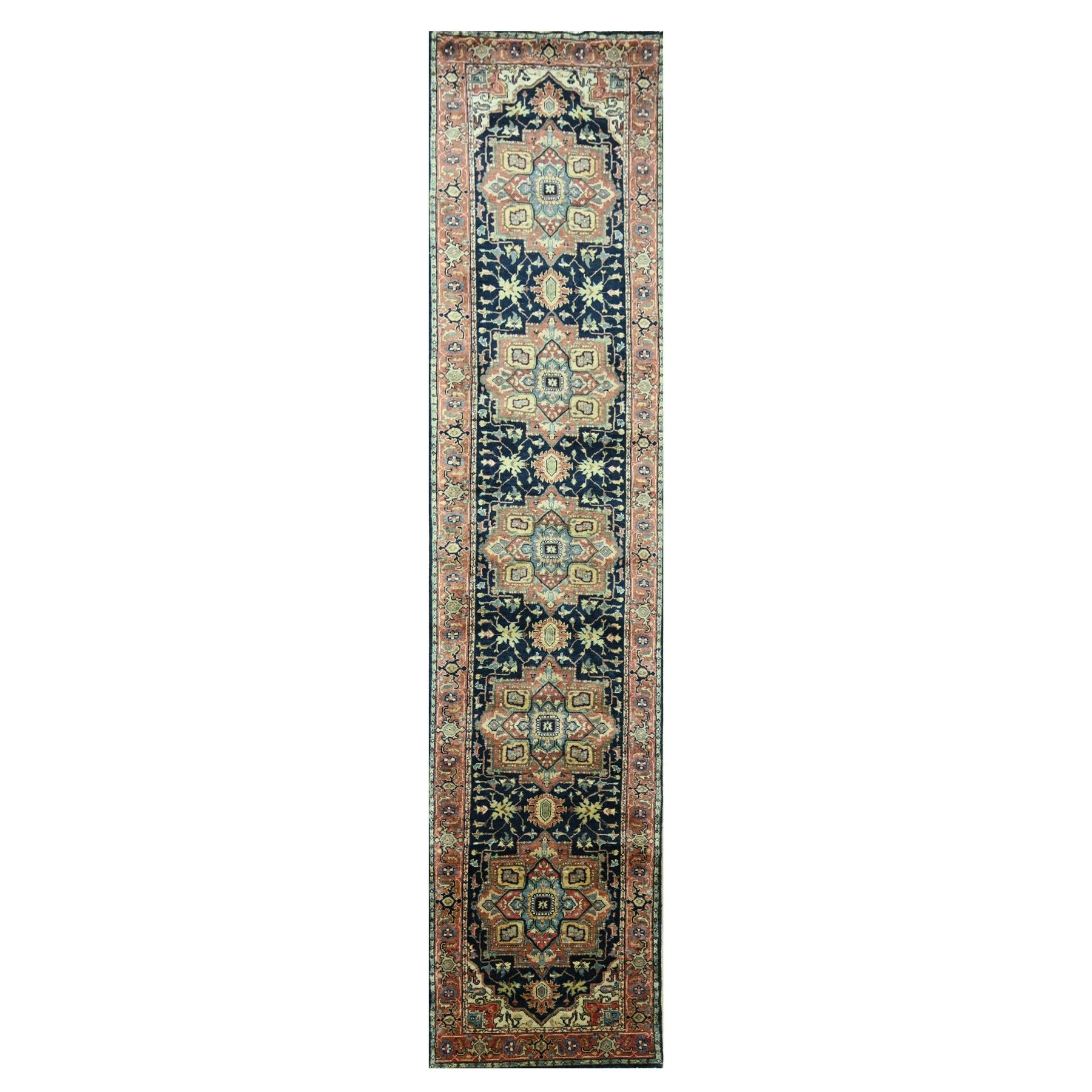 2'6"x11'5" Navy Blue, Heriz With Geometric Medallions Design, Natural Dyes, Hand Knotted, Soft Pile, Hand Spun New Zealand Wool, Runner, Oriental Rug FWR457416