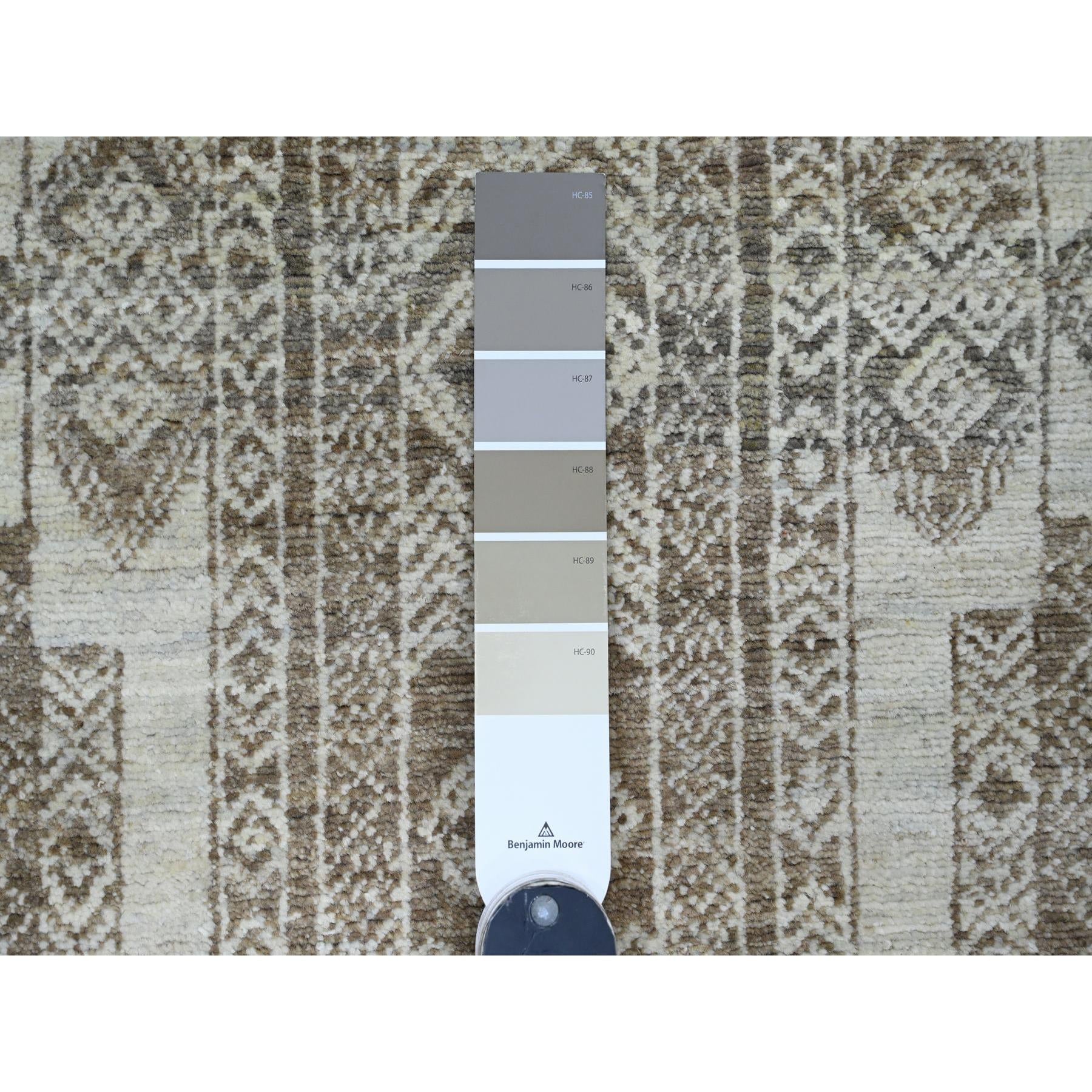 2'6"x11'6" Coffee Brown, Moroccan Berber Influence With Geometric Pattern, Denser Weave, High Mountain Wool, Hand Knotted, Runner, Oriental Rug FWR125634
