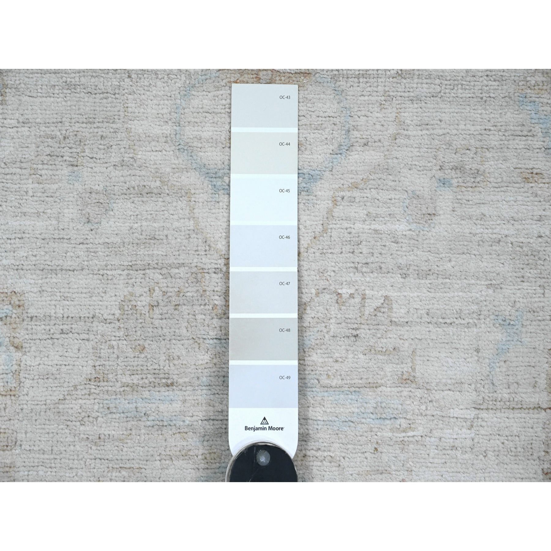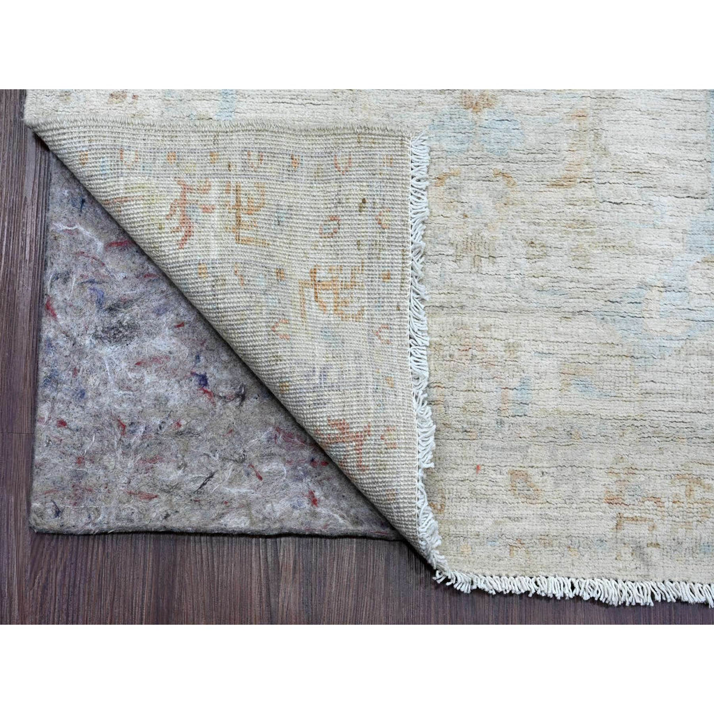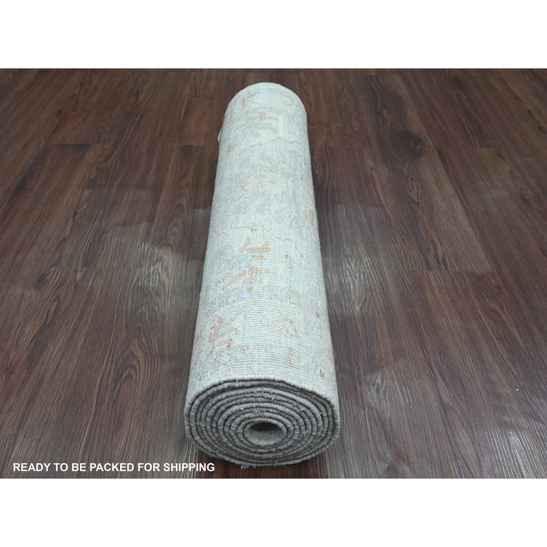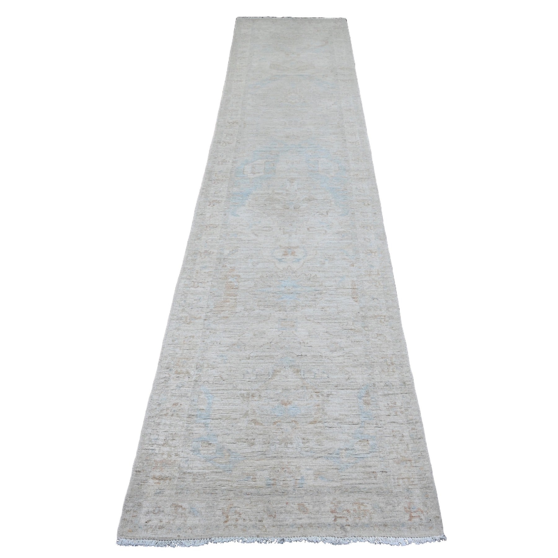 2'6"x11'7" Medium Gray, Washed Out Oushak With Dragon Design, Peshawar, High Mountain Wool, Hand Knotted, Densely Woven, Runner, Oriental Rug FWR125202