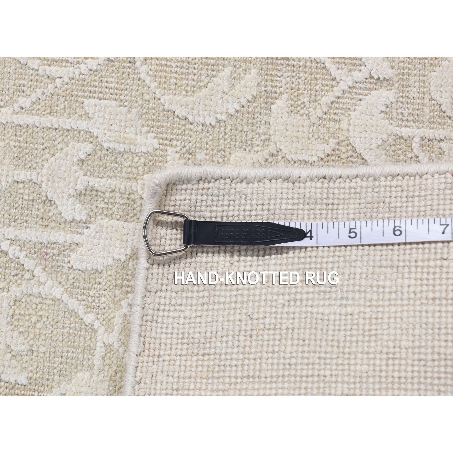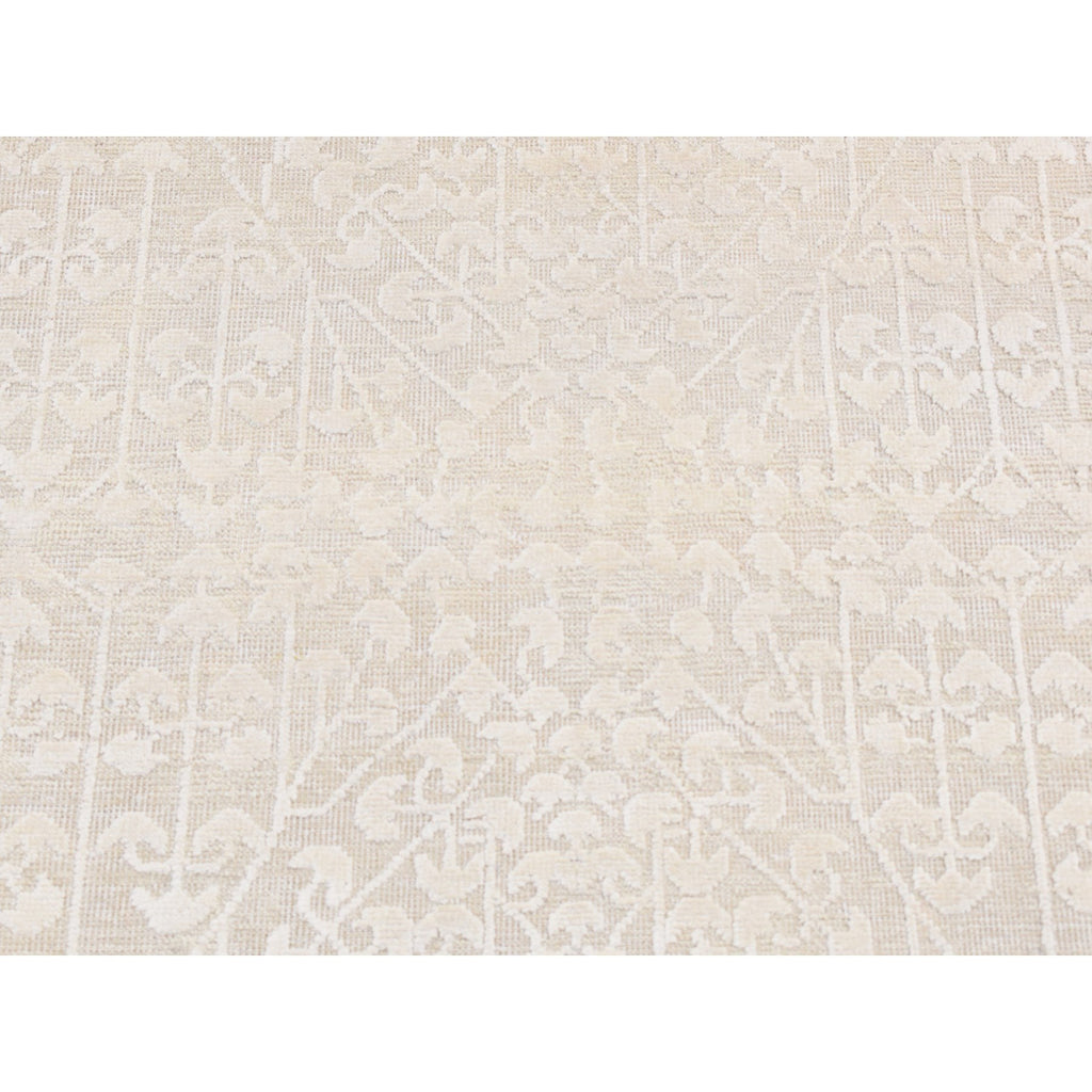 2'6"x11'8" Ivory, Hand Knotted, Tone On Tone, Pure Silk With Textured Wool, Runner Oriental Rug FWR523776