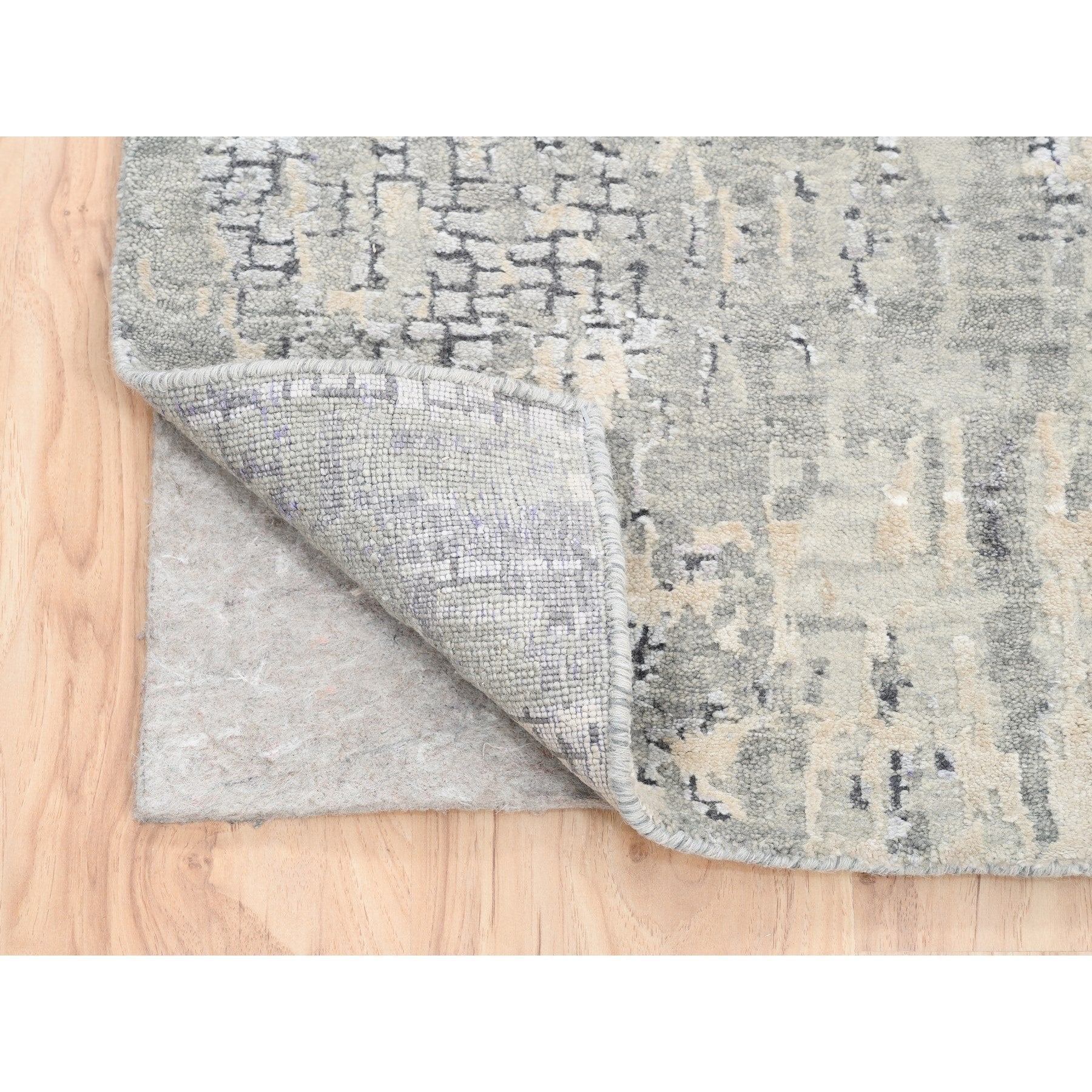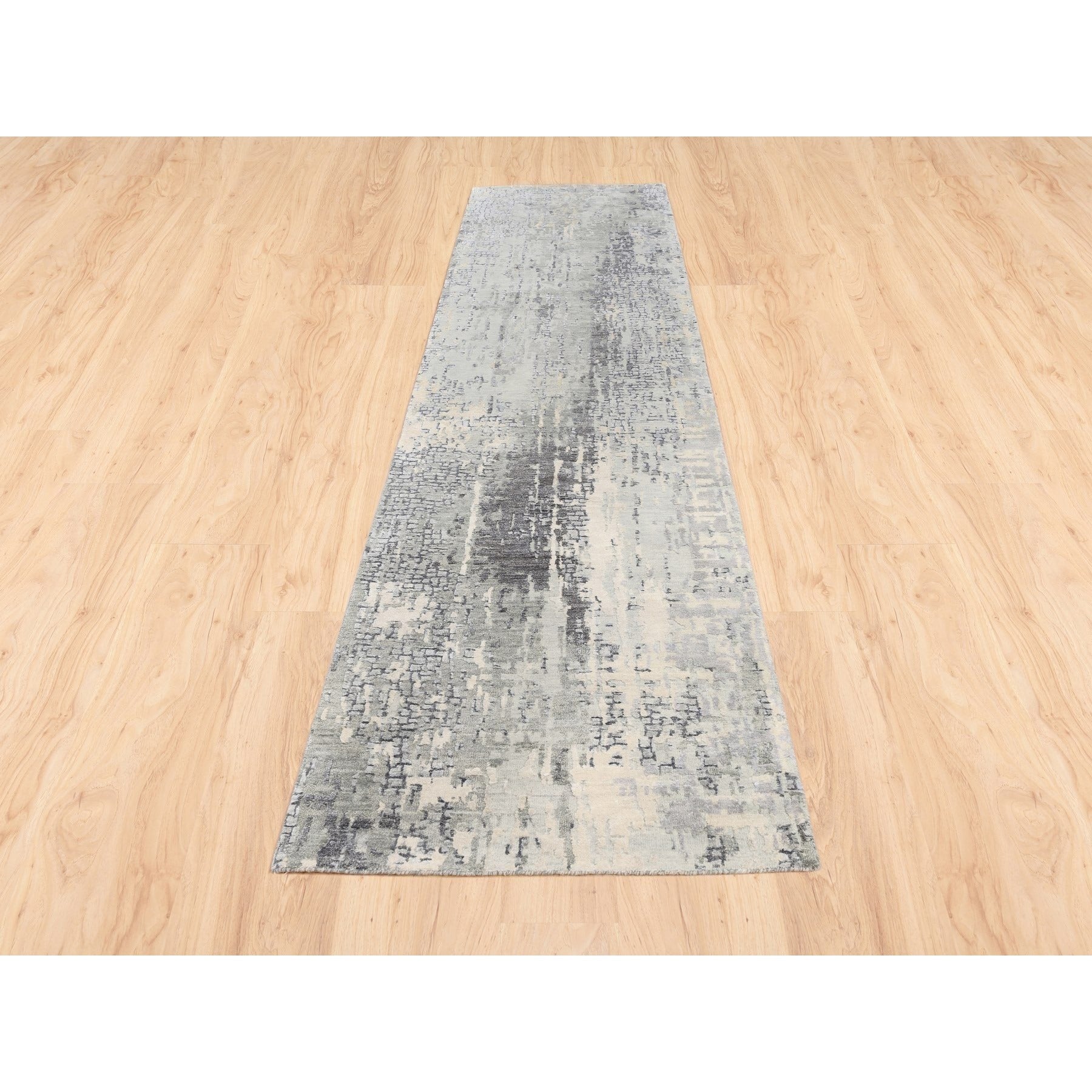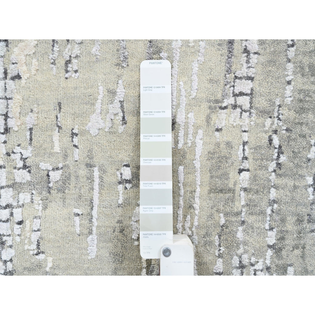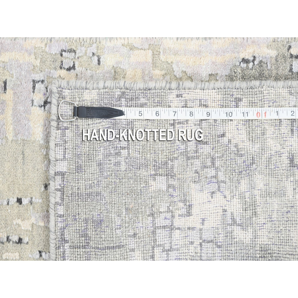 2'6"x11'8" Wool And Silk Taupe Abstract With Mosaic Design Hand Knotted Persian Knot Oriental Runner Rug FWR376140