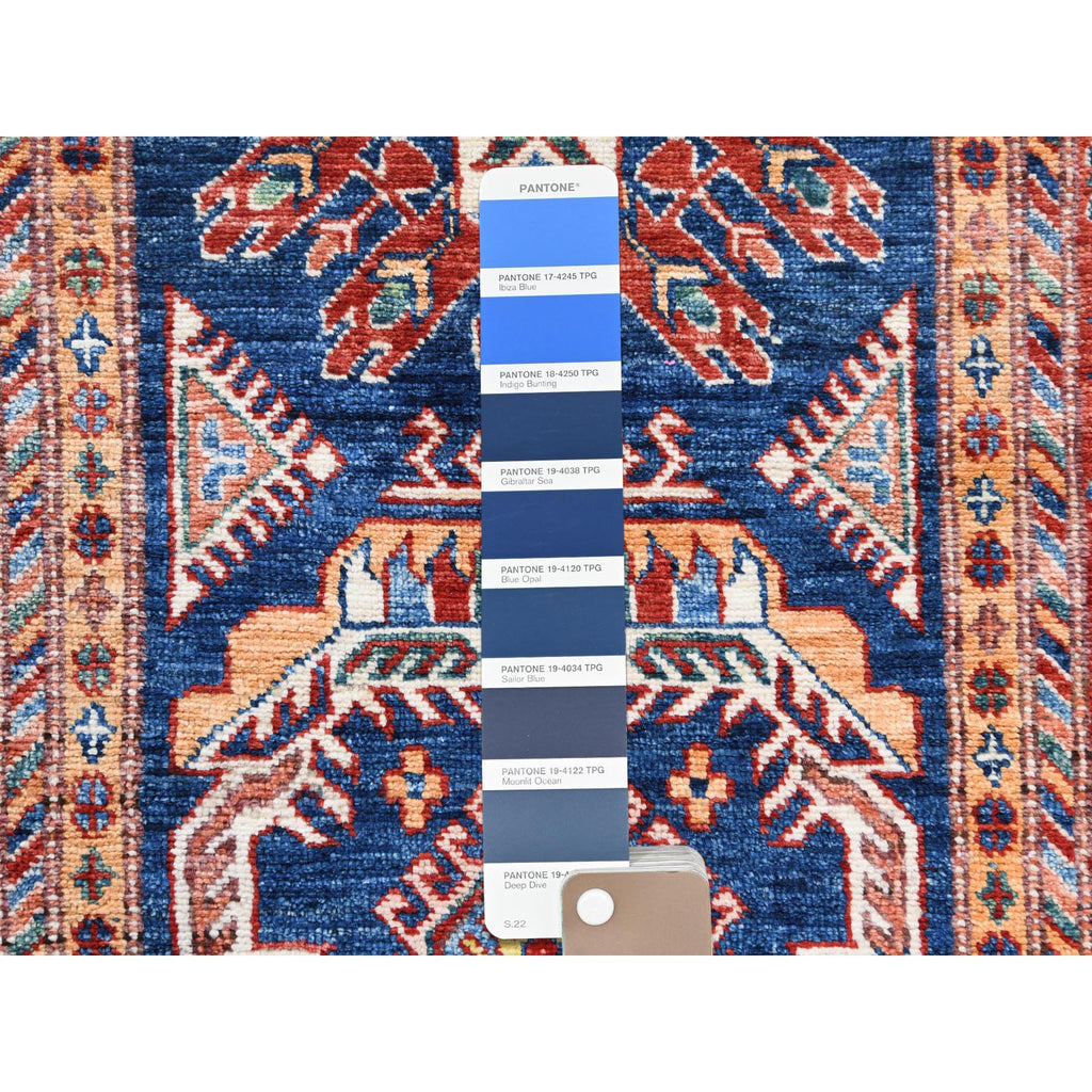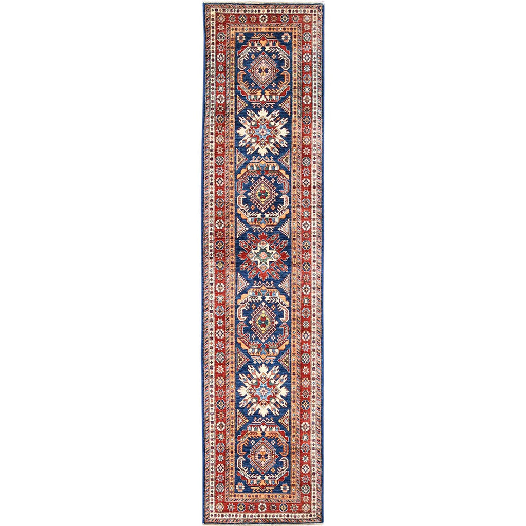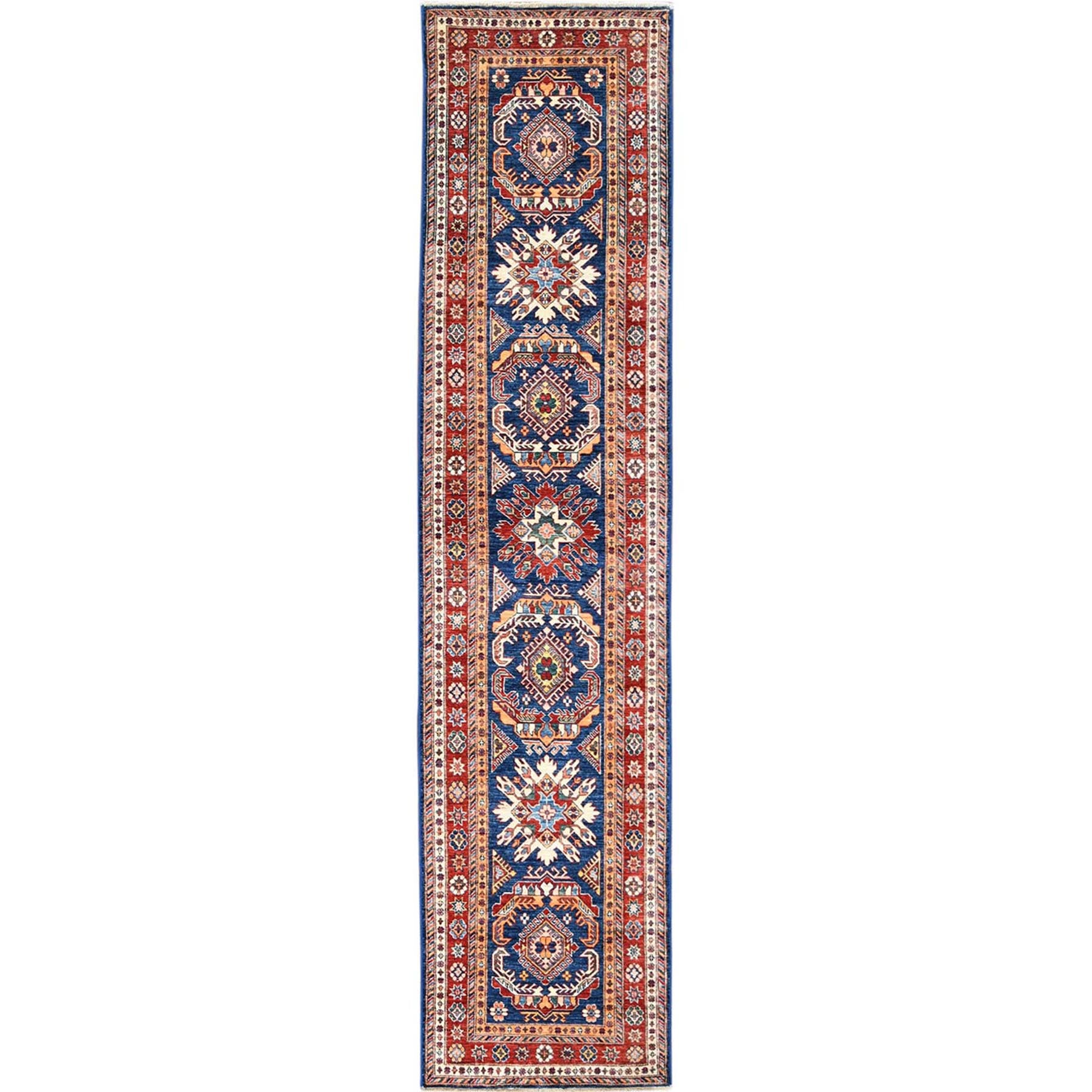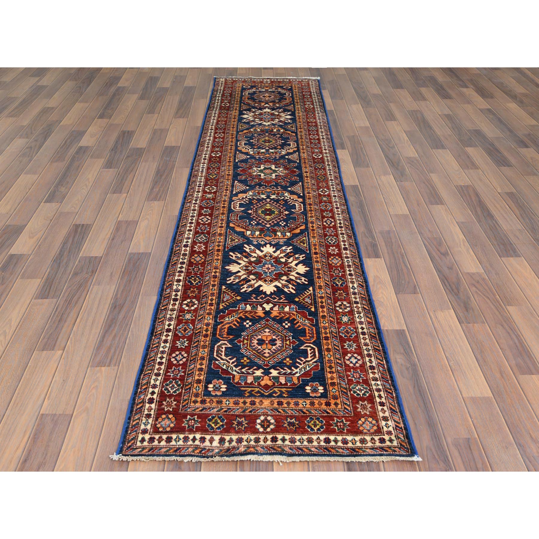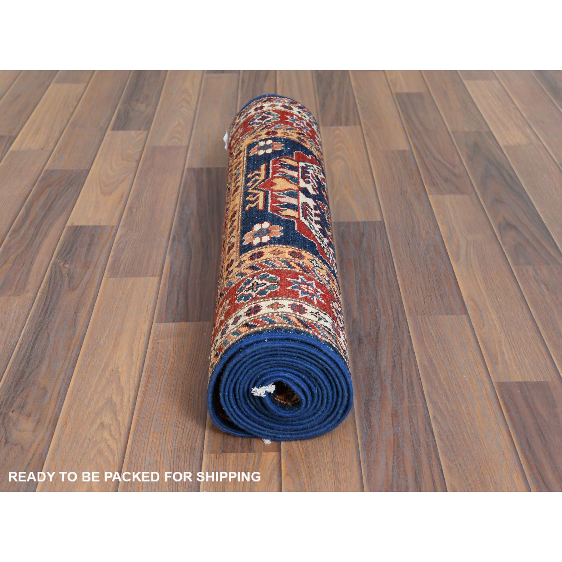 2'6"x11' Hand Knotted Navy Blue Afghan Super Kazak With Bold Colors Soft And Pliable Wool Oriental Runner Rug FWR368736
