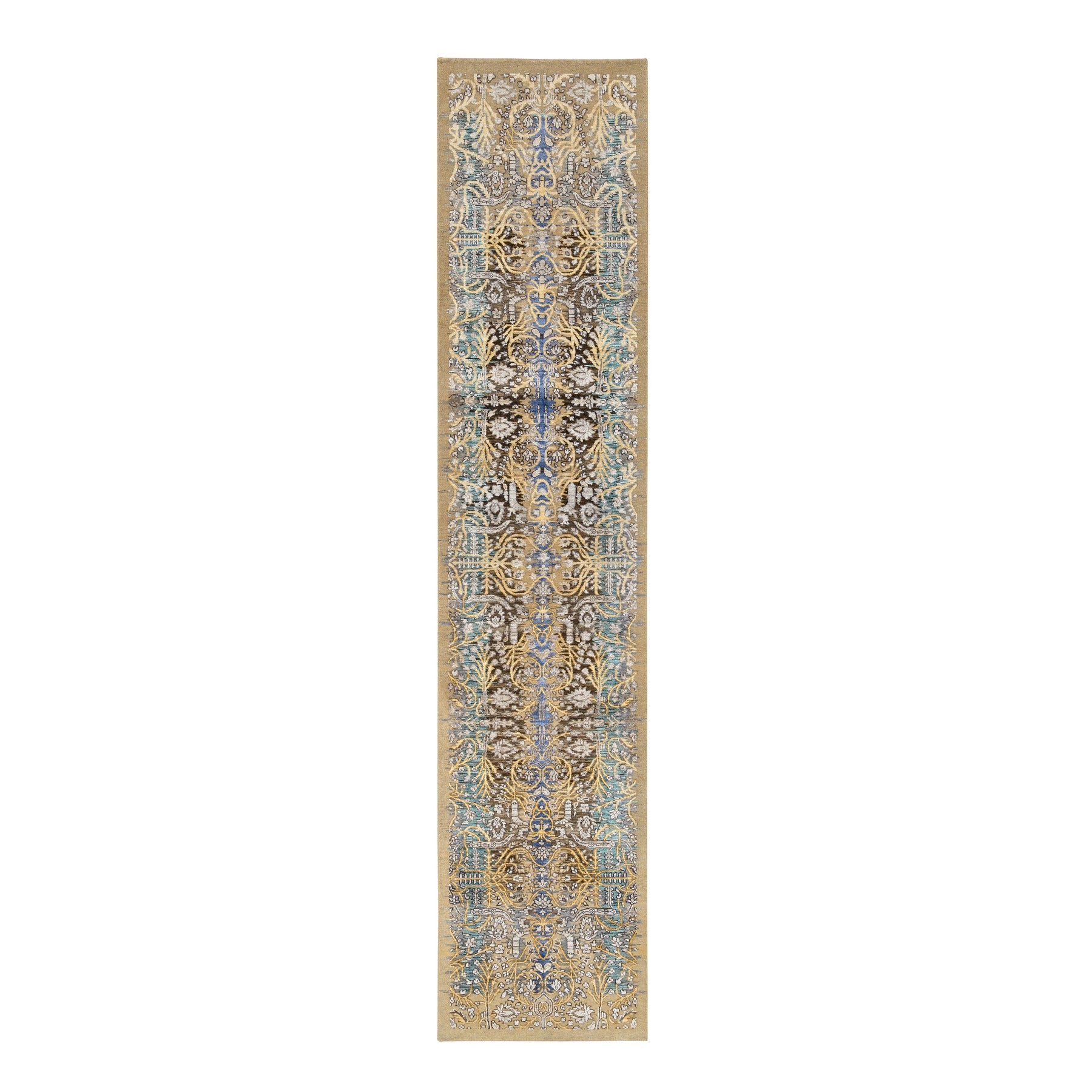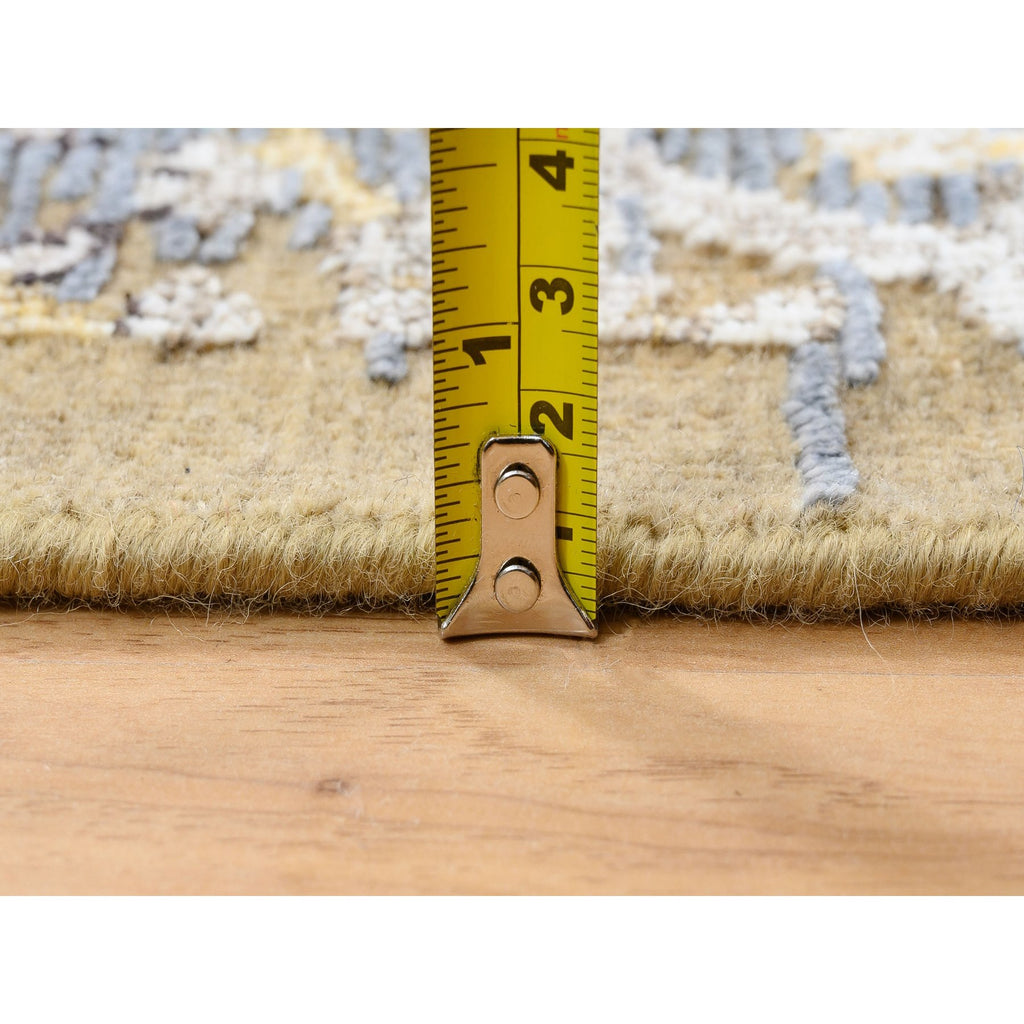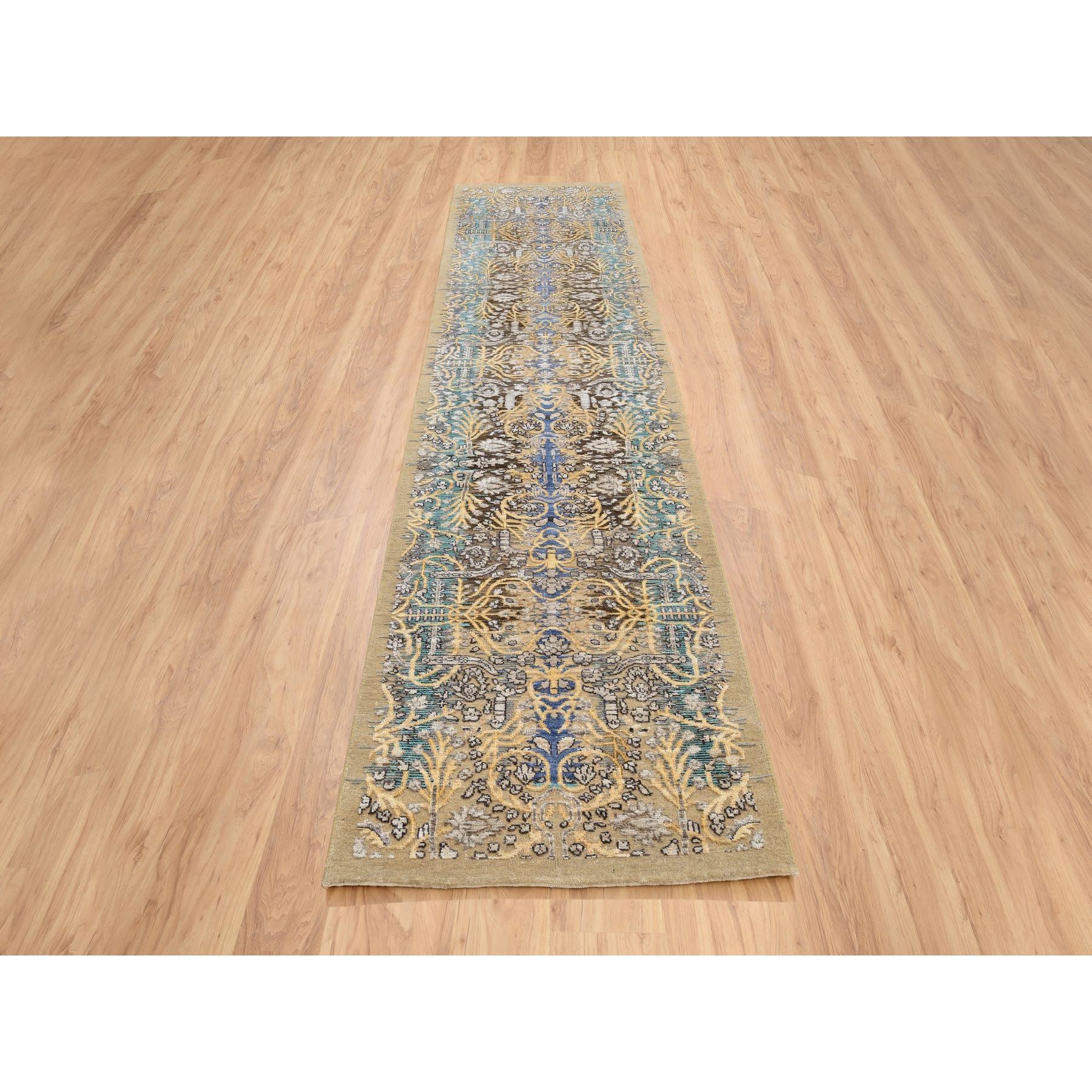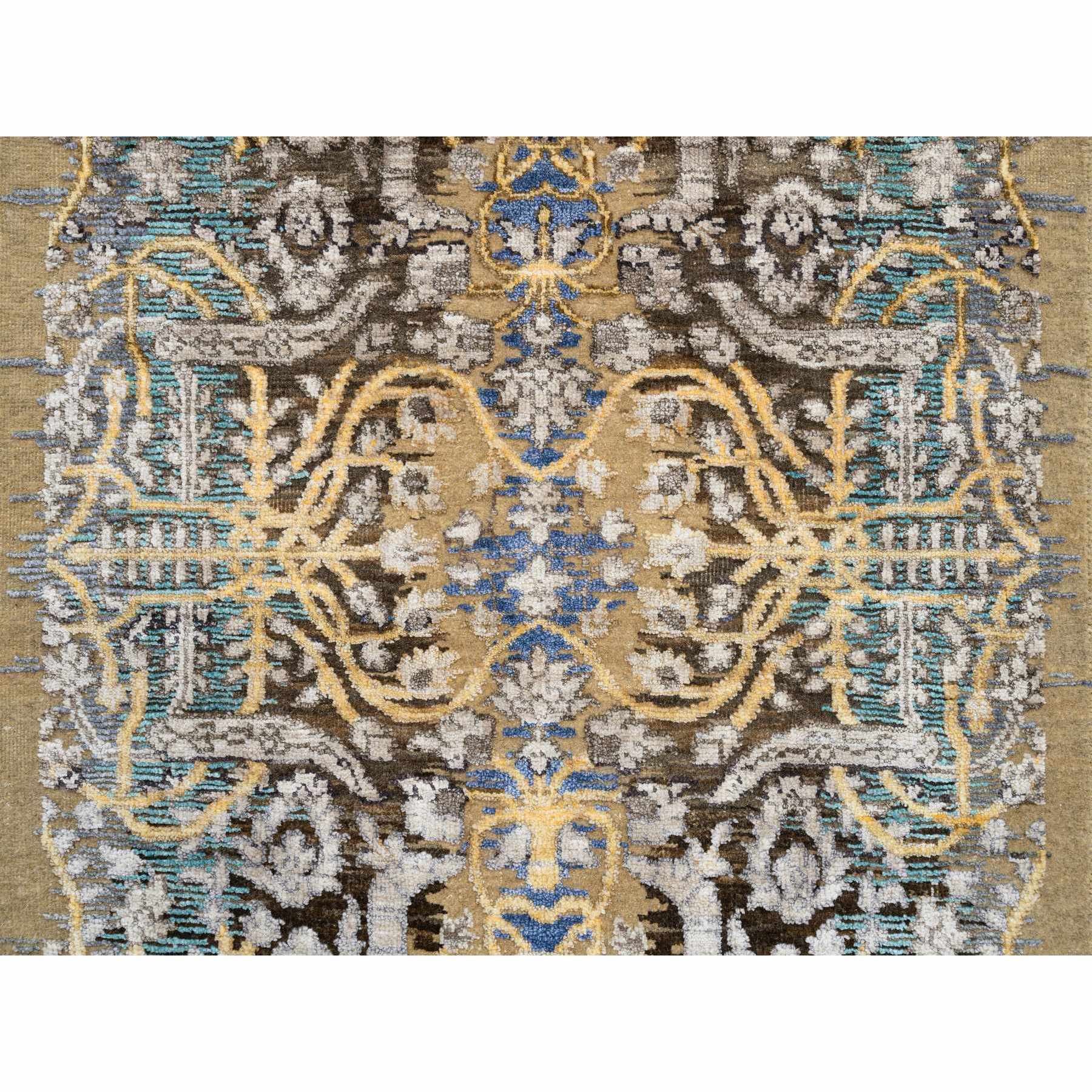 2'6"x12'1" Gold Brown, Transitional Sarouk, Silk With Textured Wool Hand Knotted, Runner Oriental Rug FWR386682