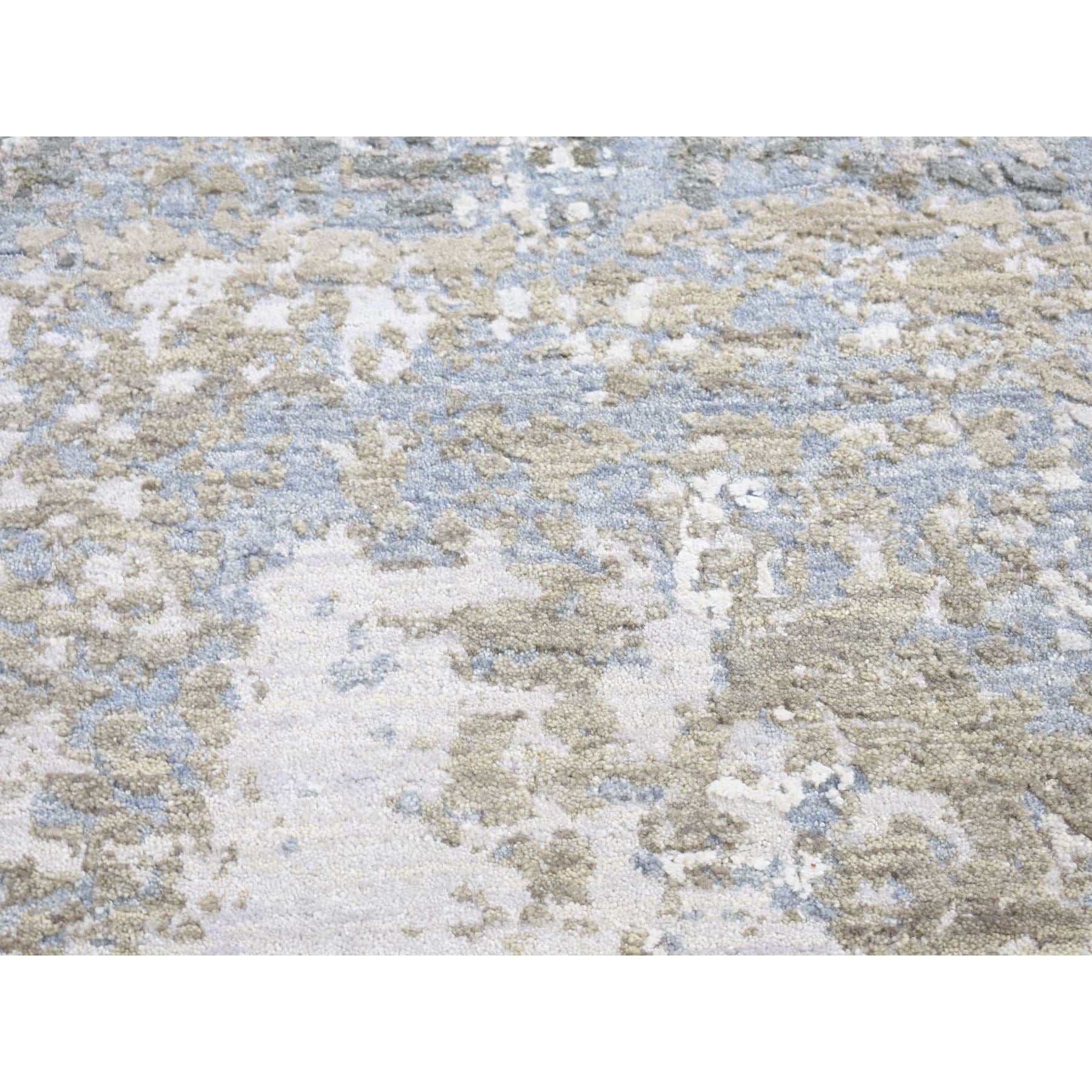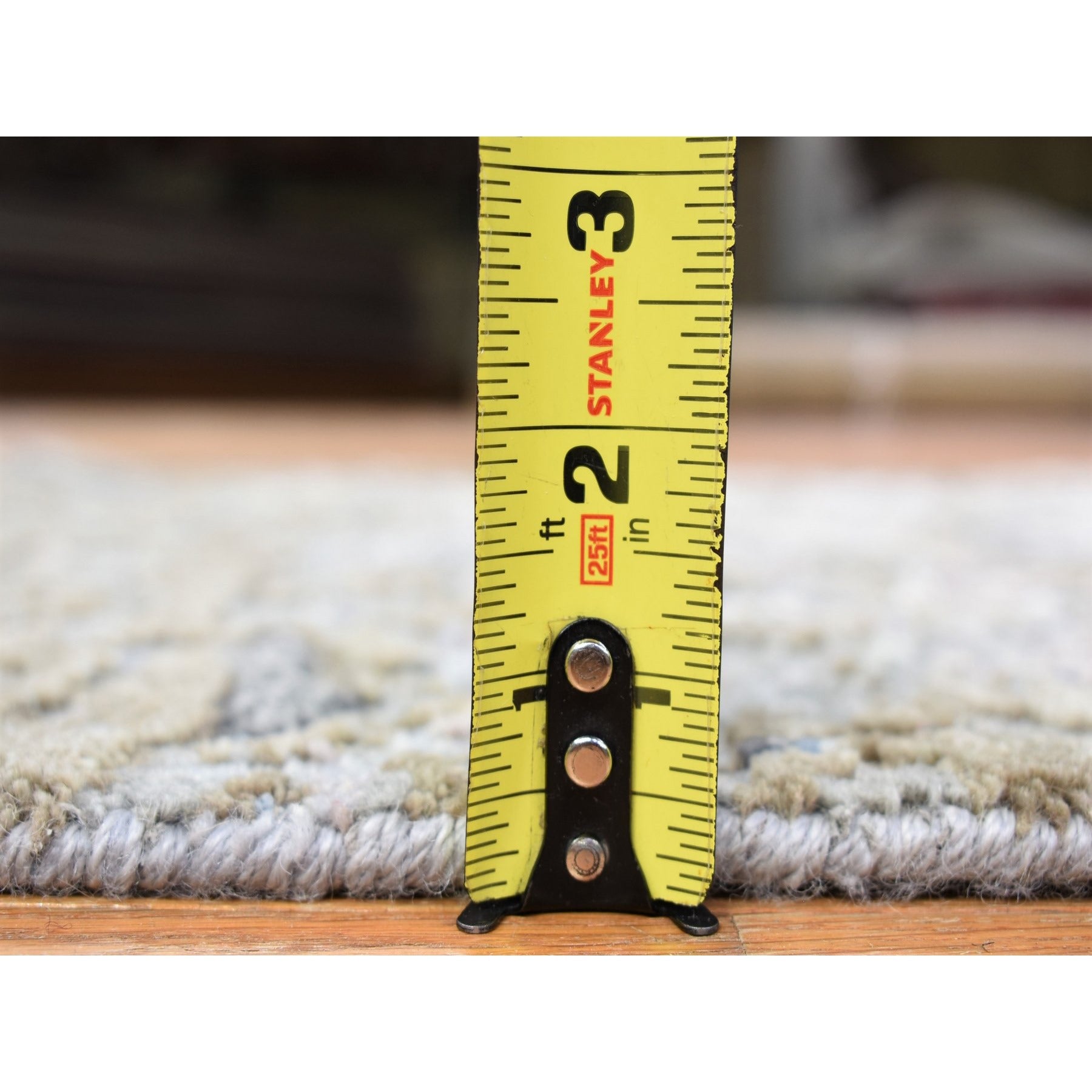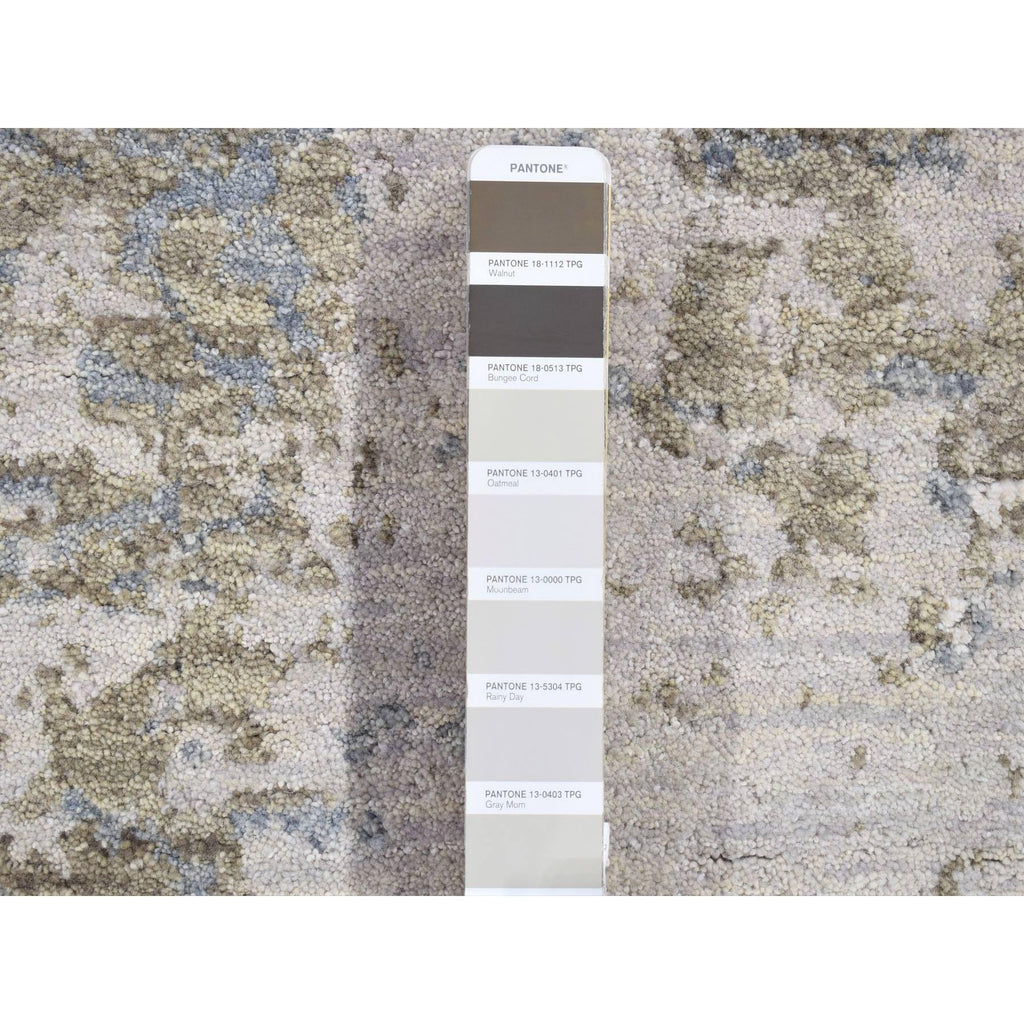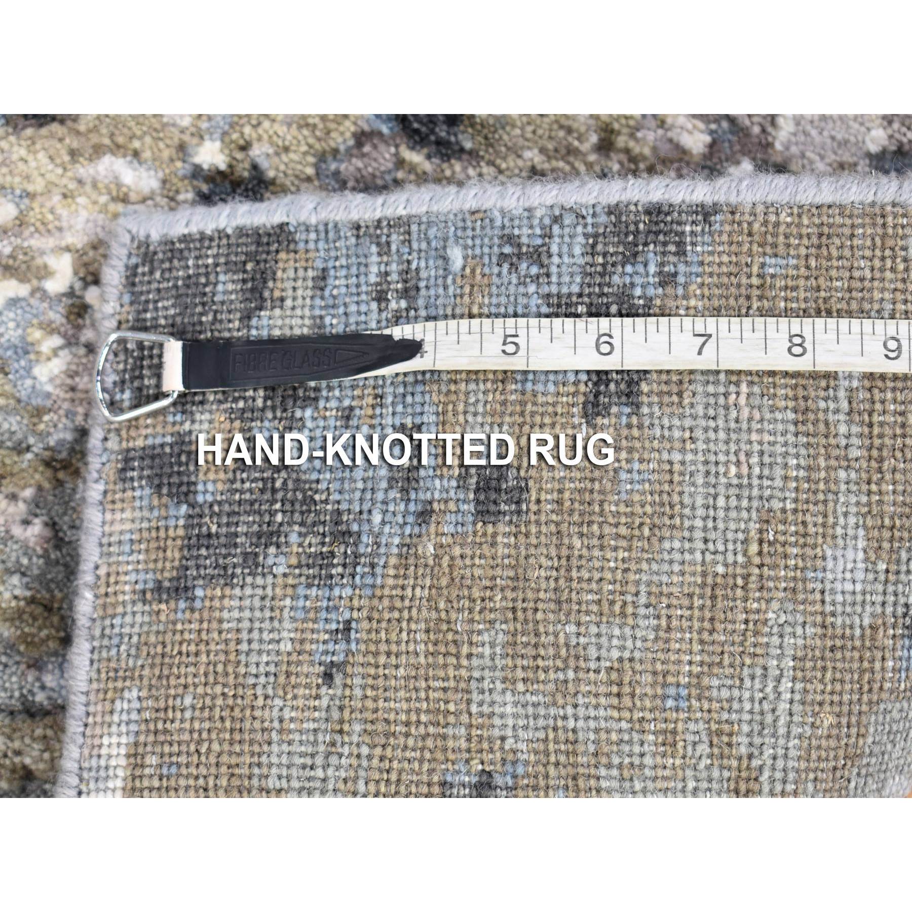 2'6"x12'1" Gray, Pure Wool Modern Abstract Design, Denser Weave Hand Knotted, Runner Oriental Rug FWR481140