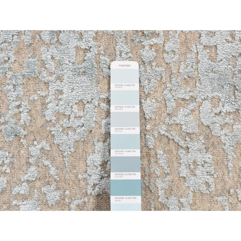 2'6"x12'1" Powder Blue, Tone On Tone Persian Tree Design, Jacquard, Hand Loomed, Wool And Art Silk, Runner Oriental Rug FWR523782