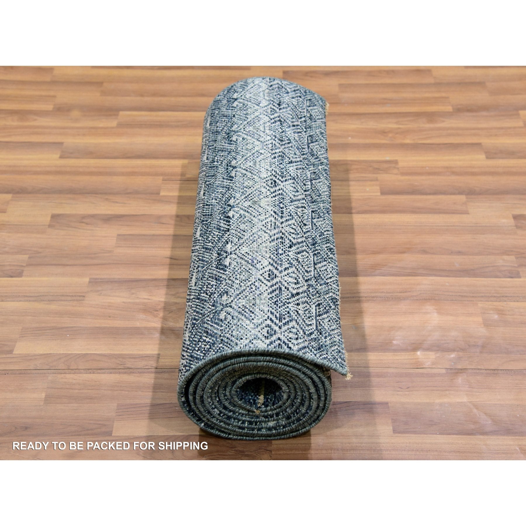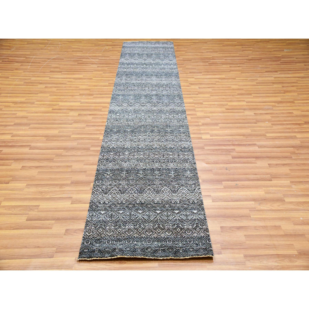 2'6"x12'2" Distance Gray, Tone On Tone Hand Knotted, Kohinoor Herat Small Geometric Repetitive Diamond Pattern, 100% Plush Wool, Runner Oriental Rug FWR478872
