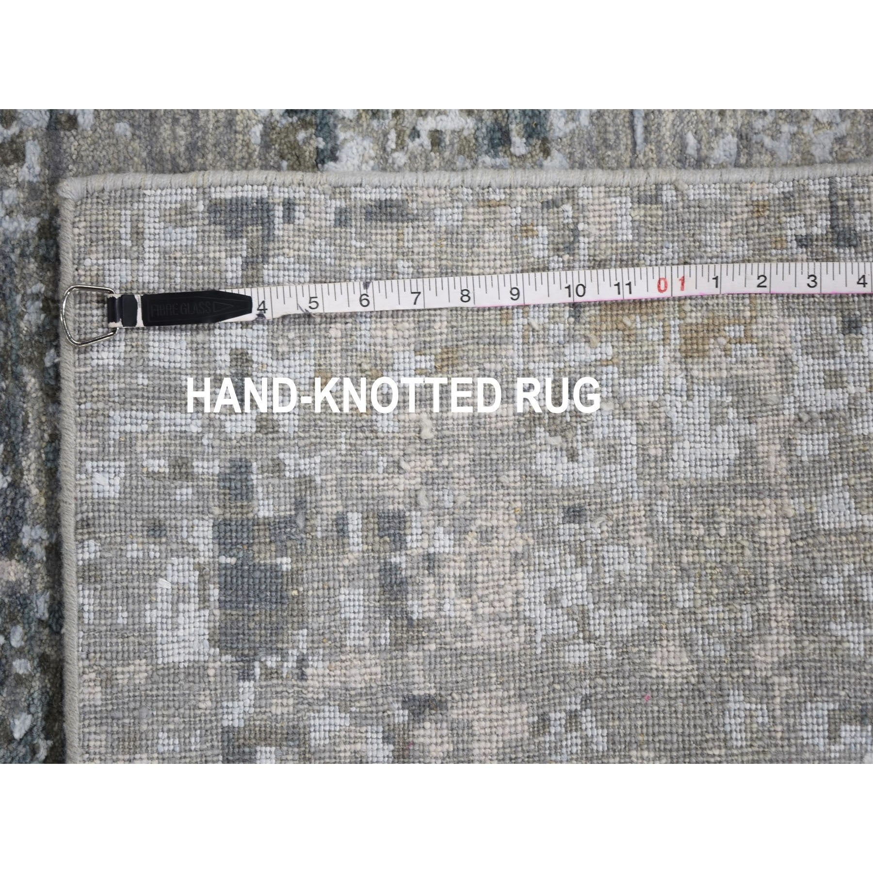 2'6"x12'4" Abstract Design Wool And Silk Denser Weave Runner Hand Knotted Modern Rug FWR354678