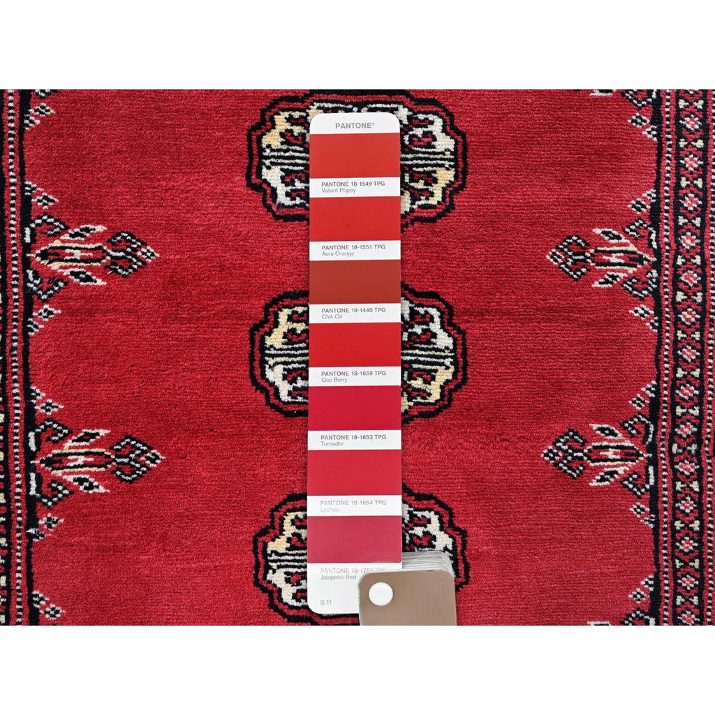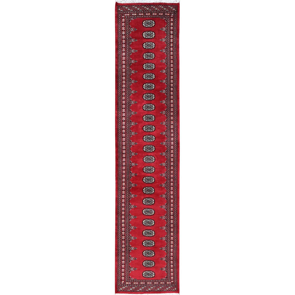 2'6"x12'5" Ajax Red, Princess Bokara With Tribal Medallions, Vegetable Dyes, Soft And Shiny Wool, Hand Knotted, Runner, Oriental Rug FWR7812