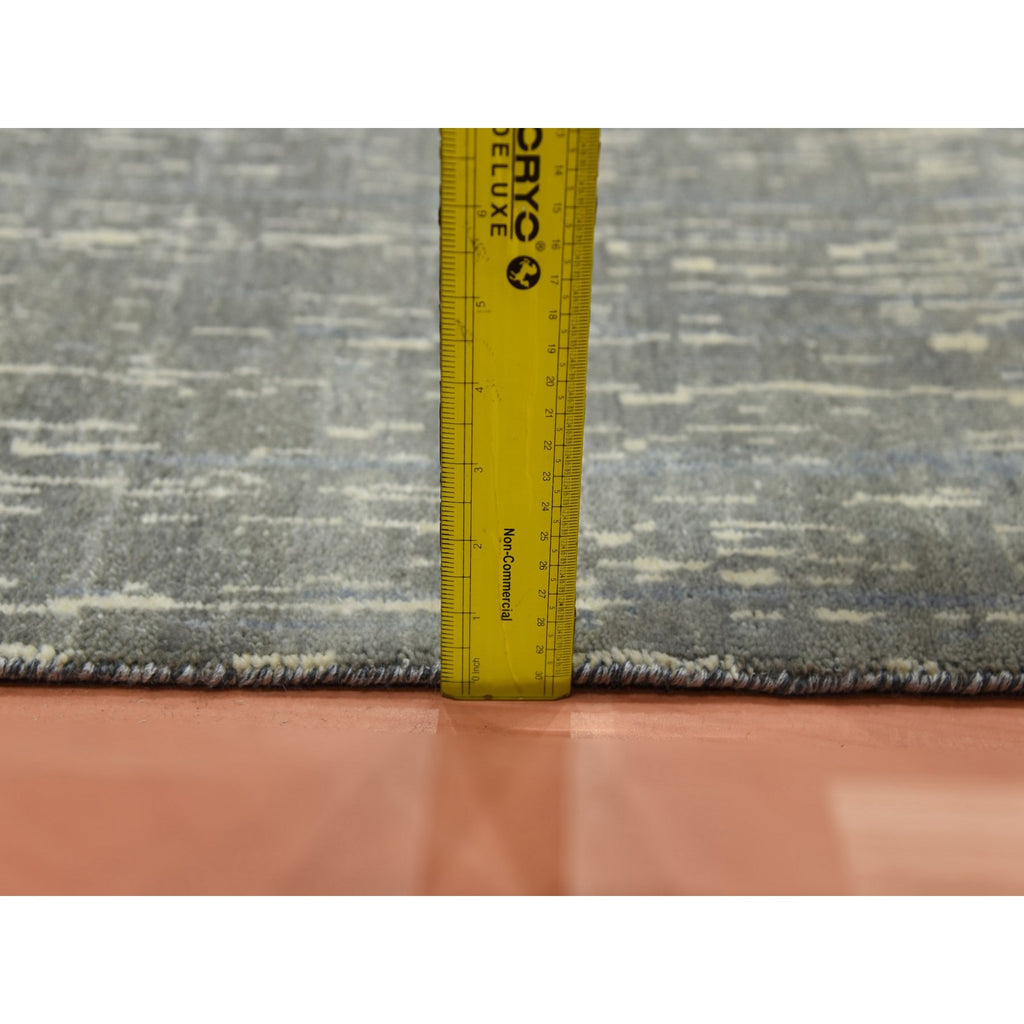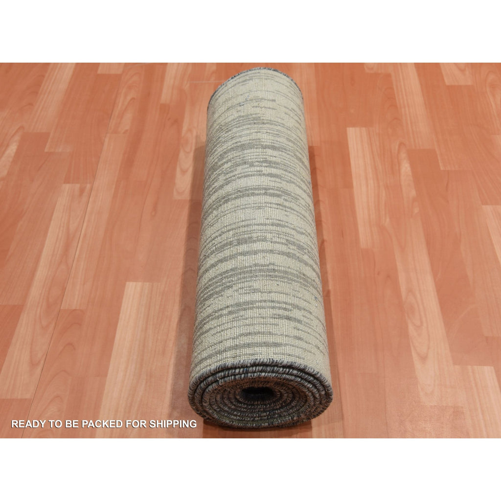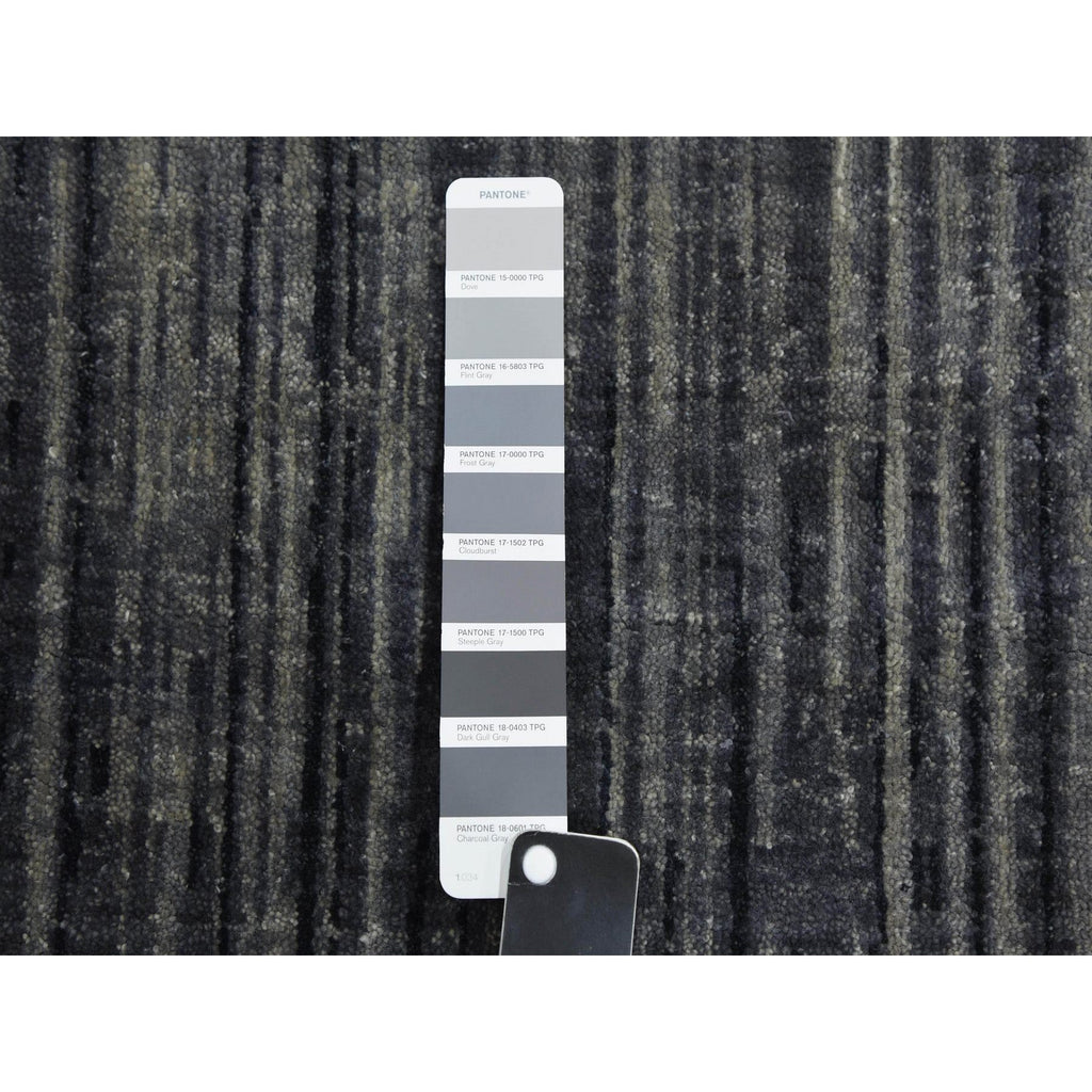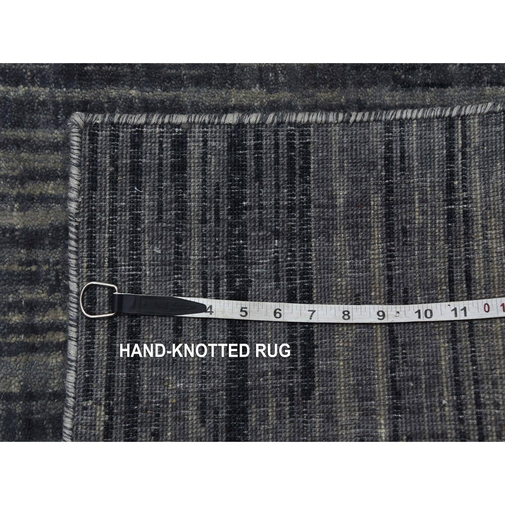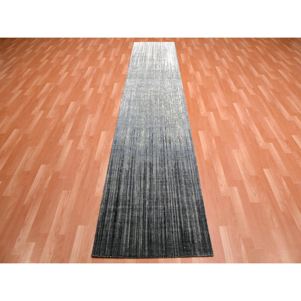 2'6"x12'6" Gray And Black, Modern Ombre Design Densely Woven, Hand Knotted, Extra Soft Wool Runner Oriental Rug FWR451578