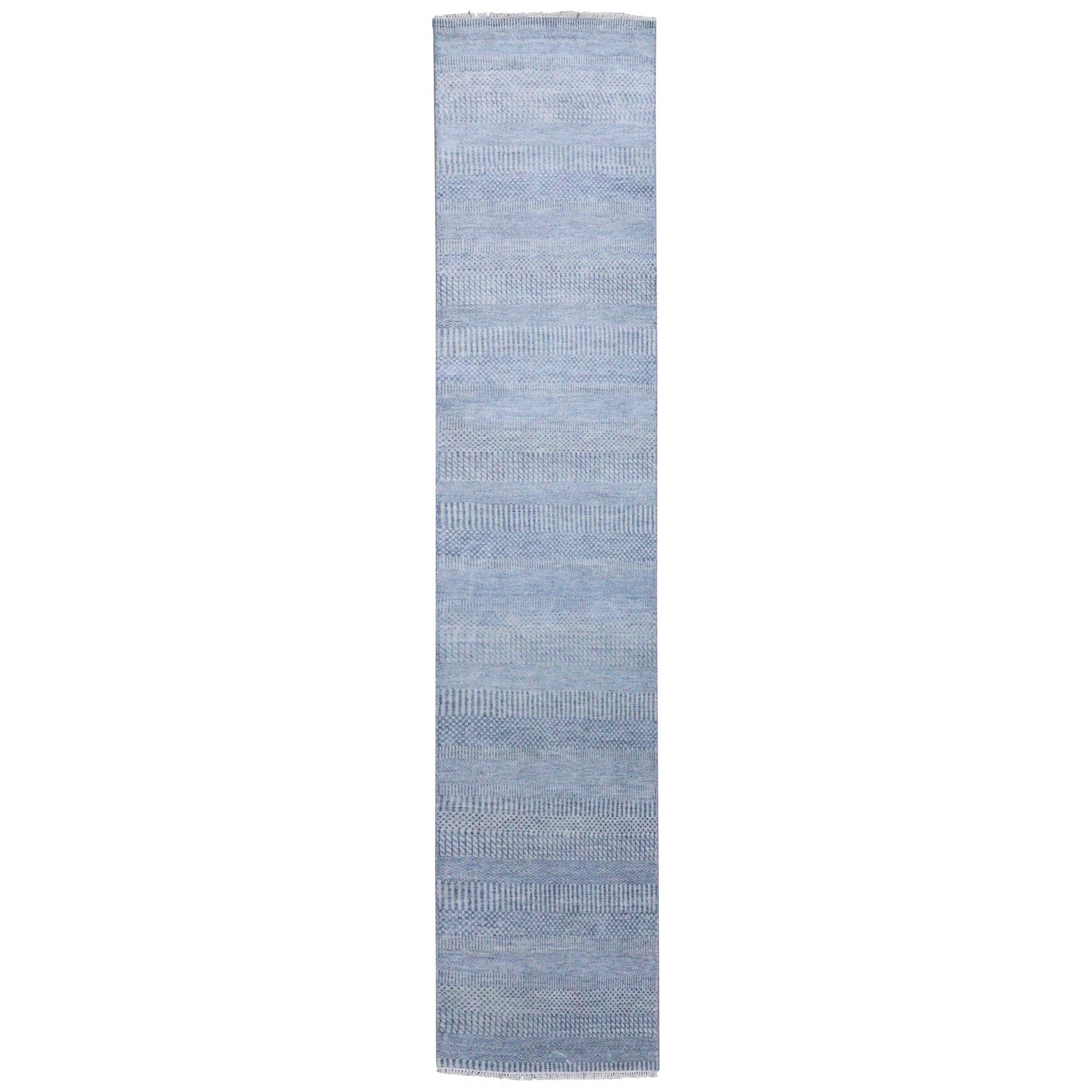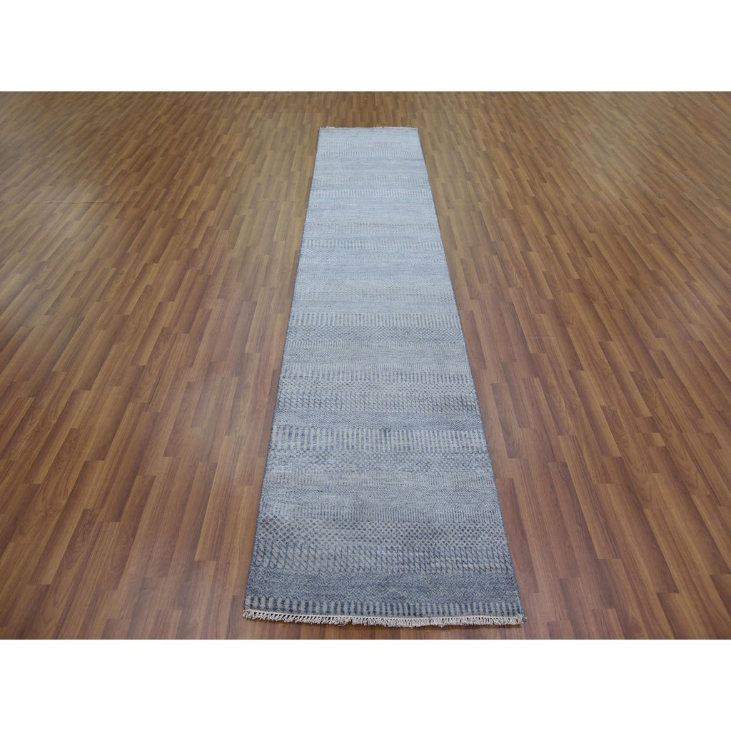 2'6"x12' Gray, Modern Grass Design Gabbeh, Densely Woven Wool And Silk Hand Knotted, Runner Oriental Rug FWR474852