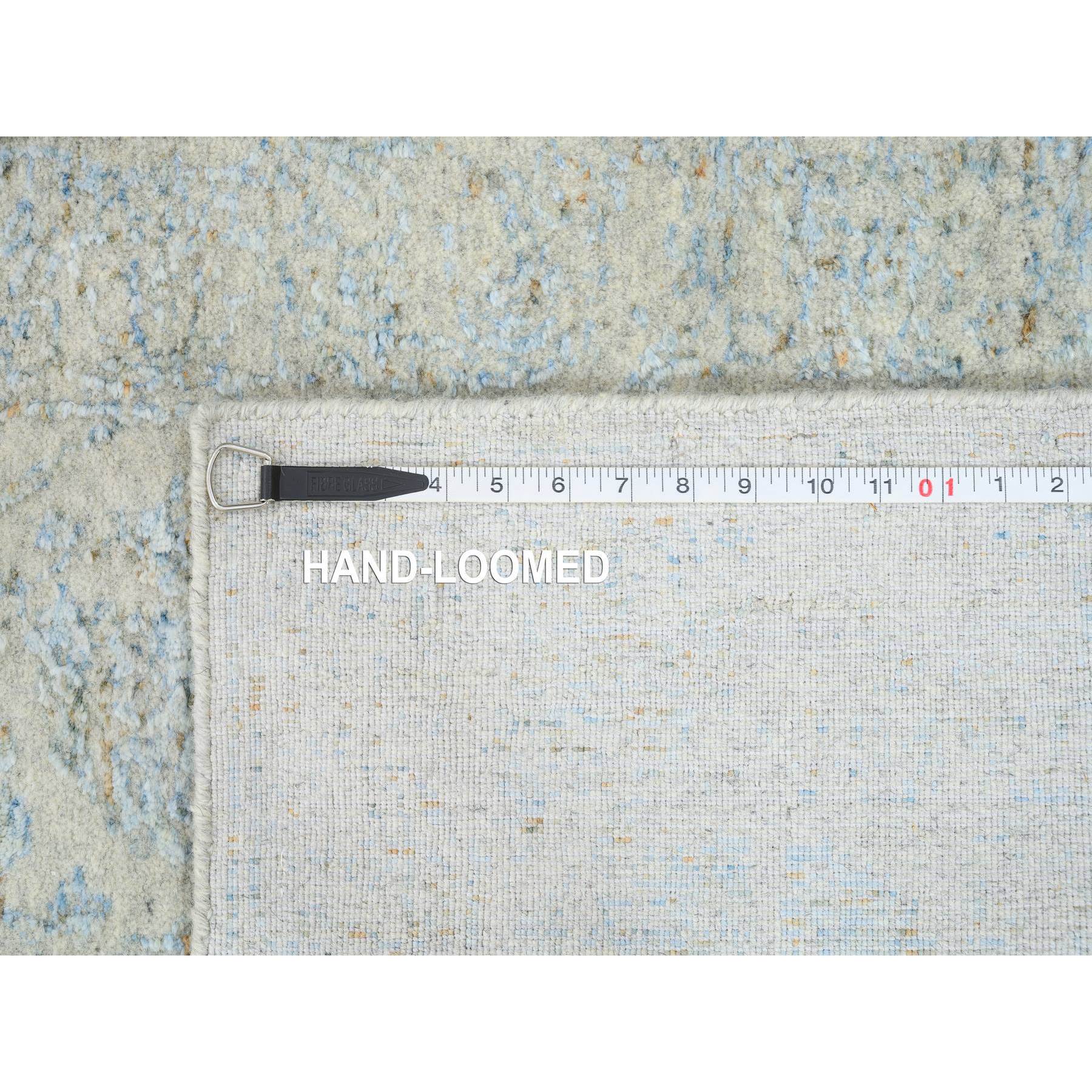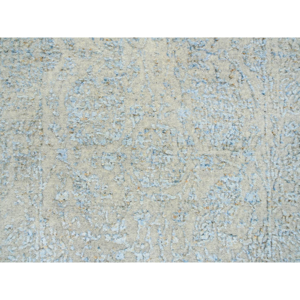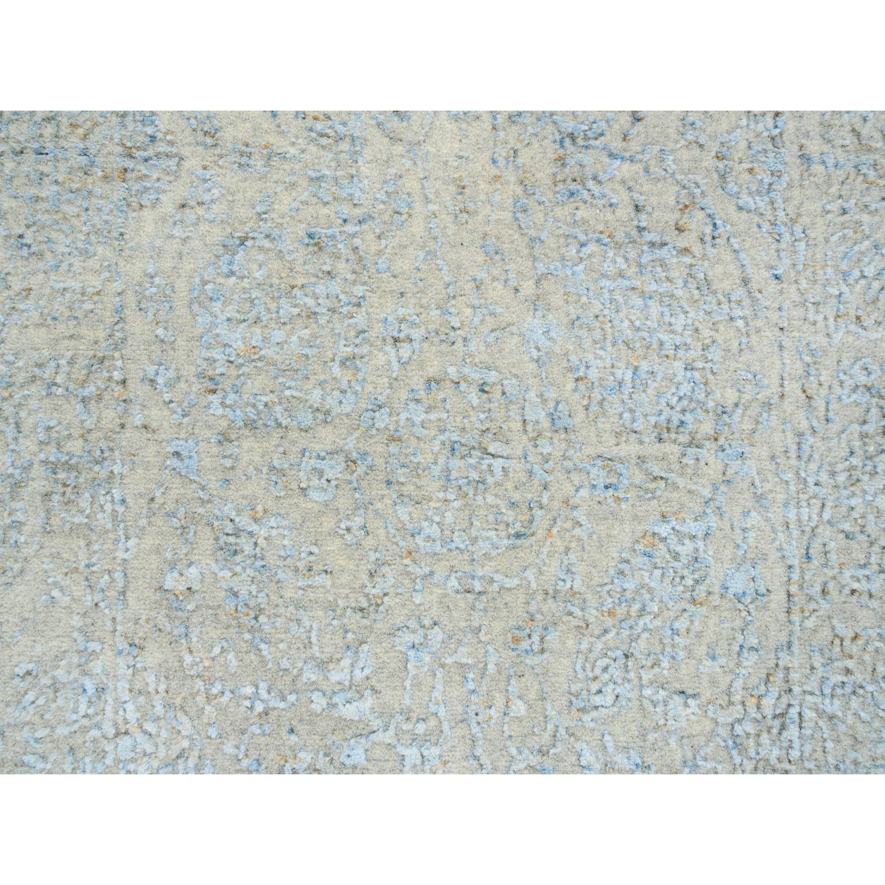 2'6"x12' Gray With Touches Of Blue, Wool And Plant Based Silk Jacquard Hand Loomed, Tabriz Design, Runner Oriental Rug FWR387330