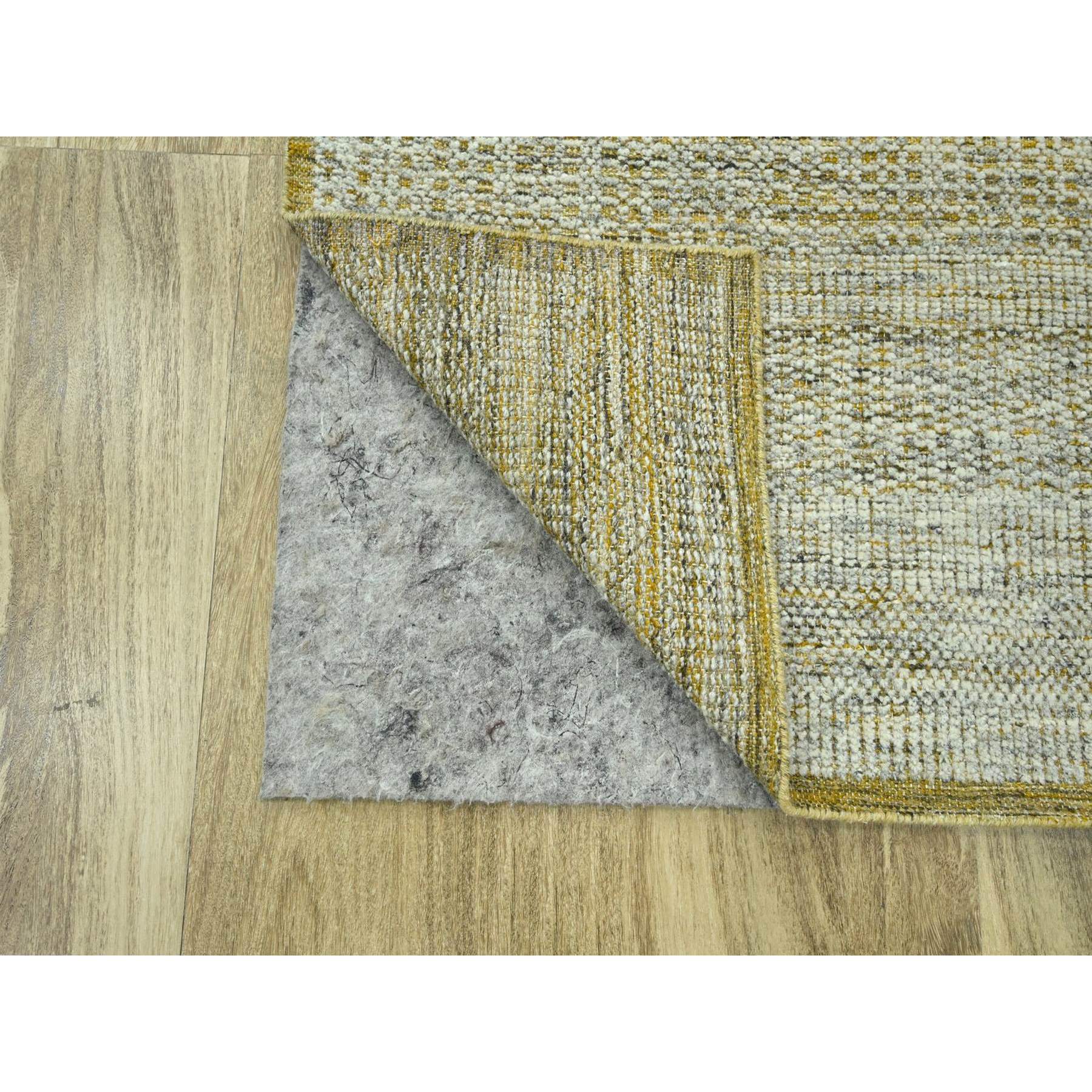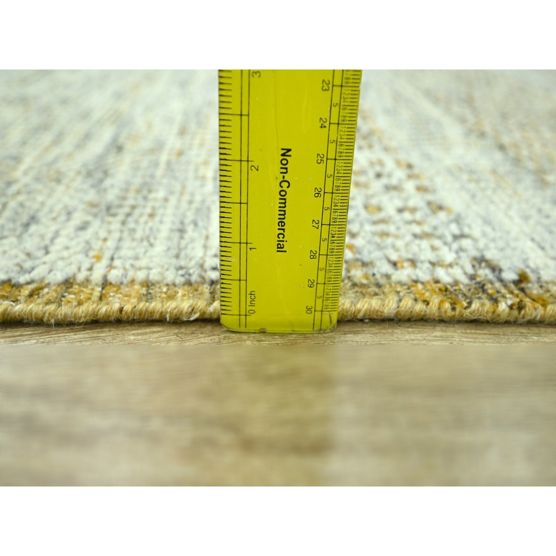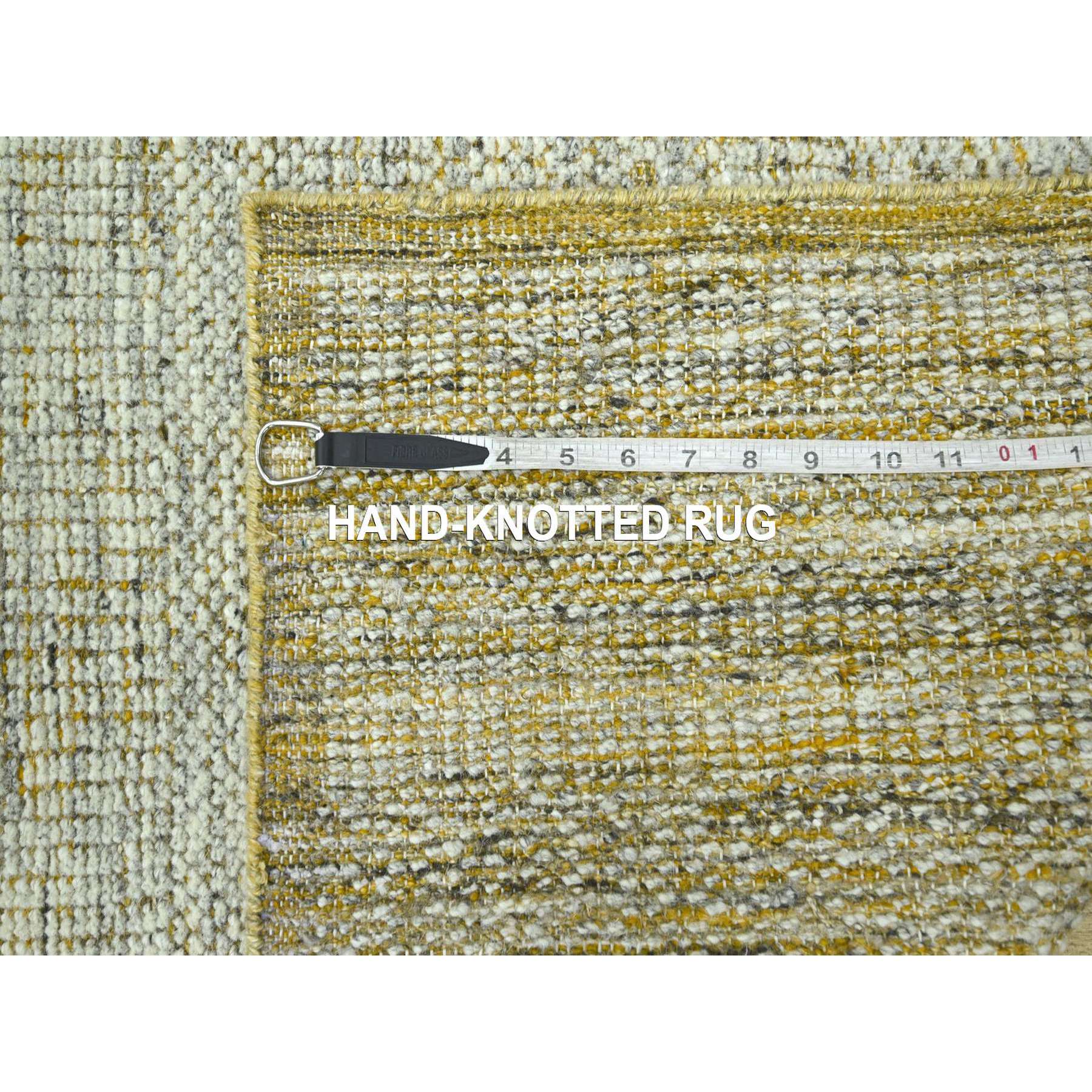 2'6"x12' Mustard Yellow, Distressed And Oxidized Grass Design With Exposed Warps, Hand Knotted, 100% Wool, Runner, Oriental Rug FWR460512
