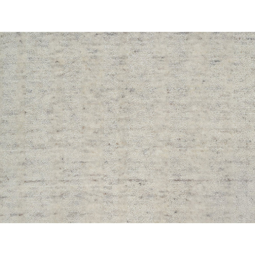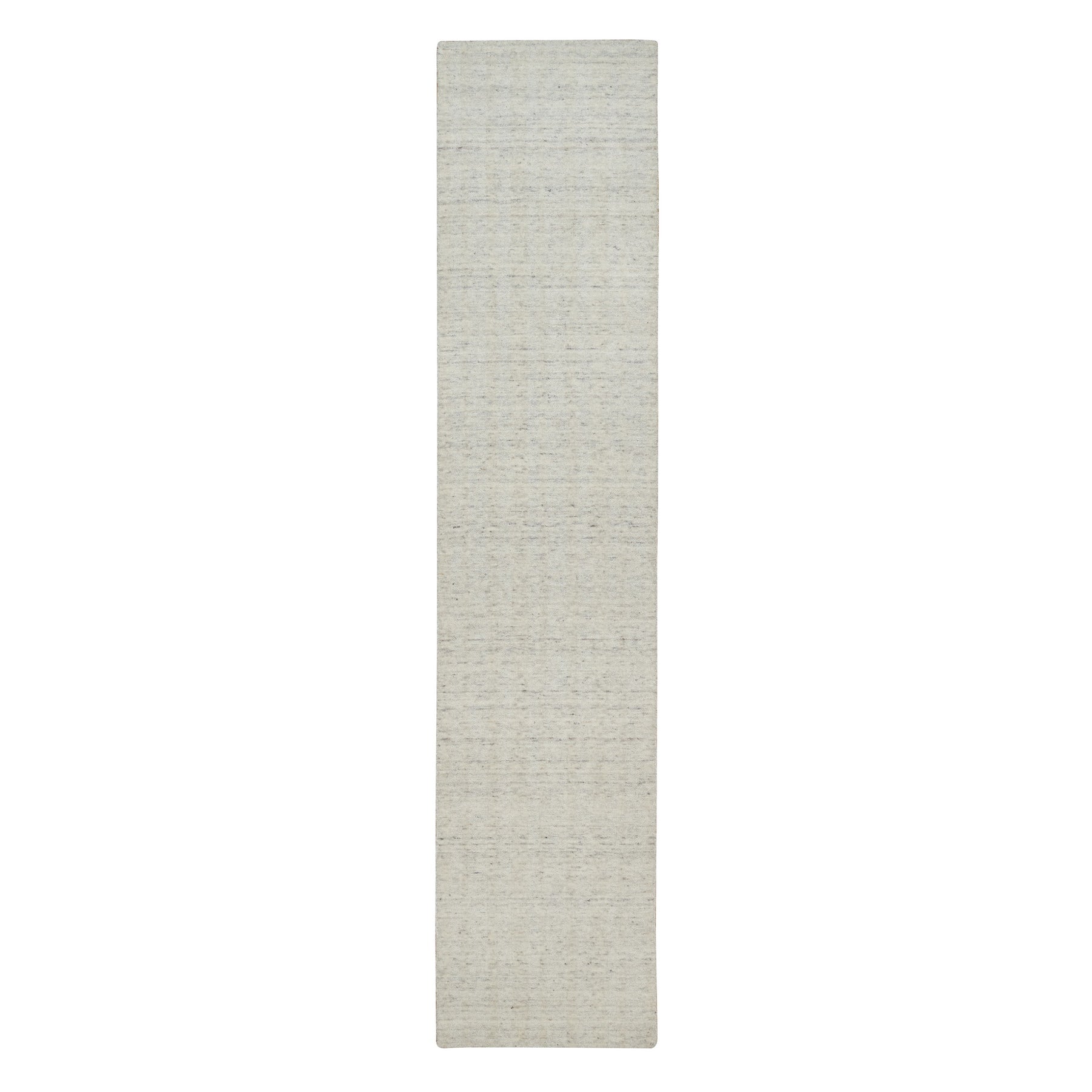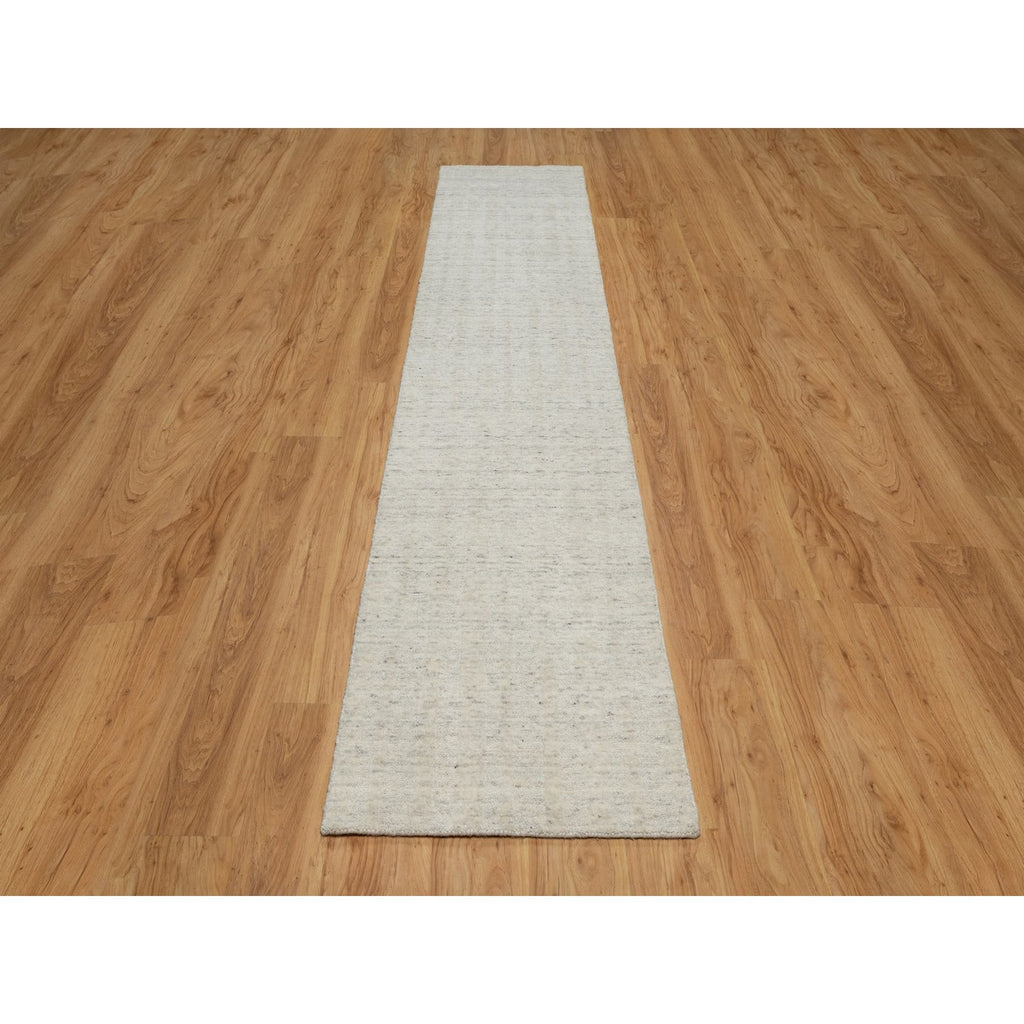 2'6"x12' Papyrus White, Salt And Pepper Effect With Vertical Stripes Design, Hand Loomed, Undyed Natural Wool, Runner, Oriental Rug FWR550014