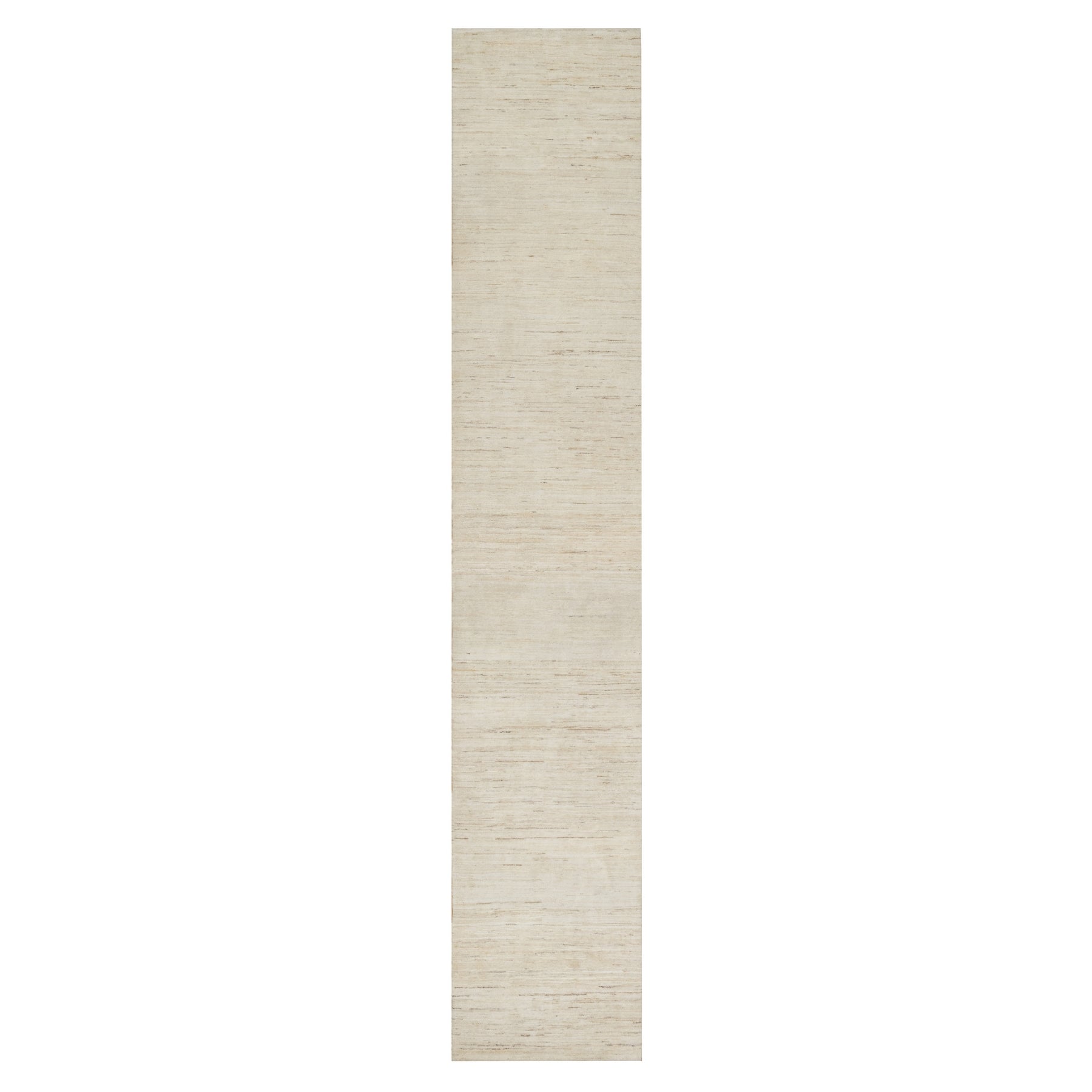 2'6"x13'9" Stone White, Hand Knotted, Lori Buft Gabbeh, Modern, Thick And Plush, Plain Design, Pure Wool, Runner, Oriental Rug FWR544572