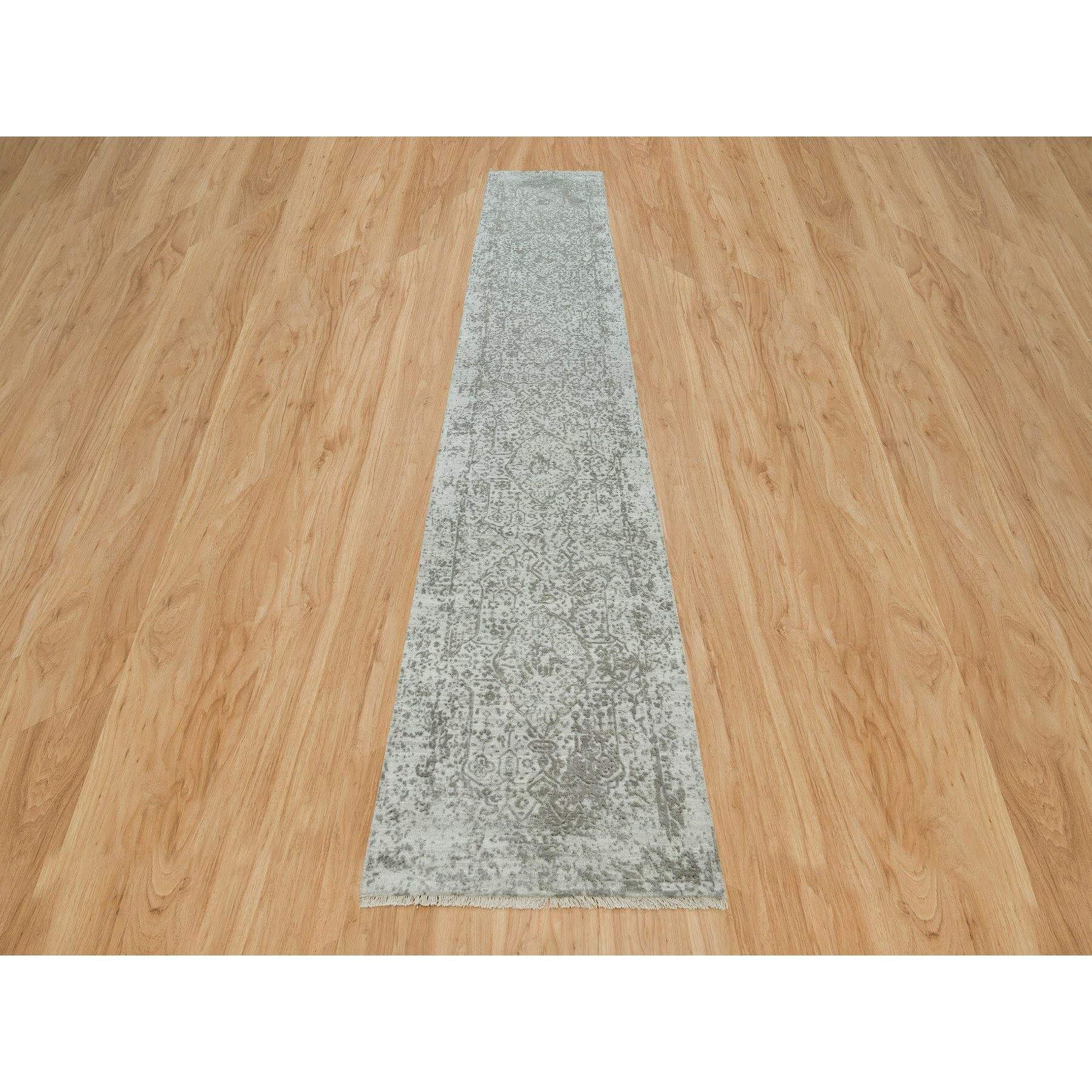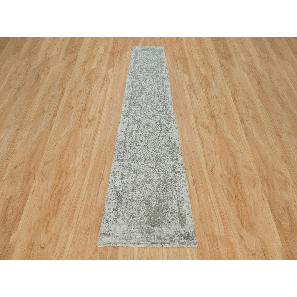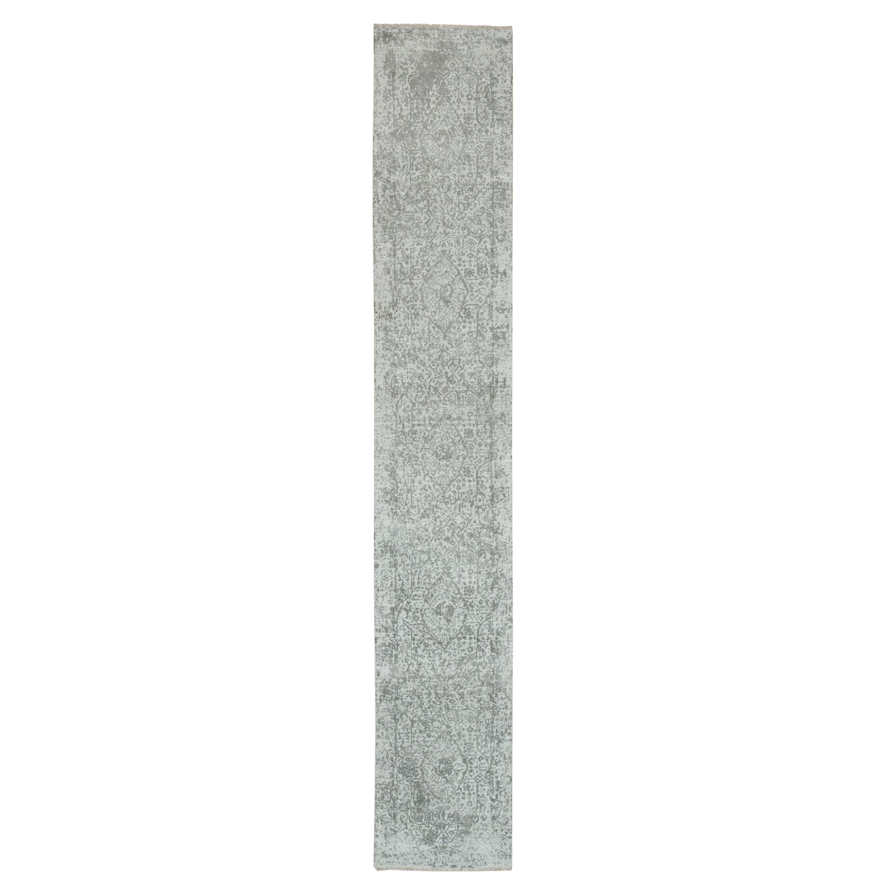 2'6"x15'10" Goose Gray, Broken And Erased Persian Design, Hand Knotted, Wool And Silk, Xl Runner Oriental Rug FWR395340