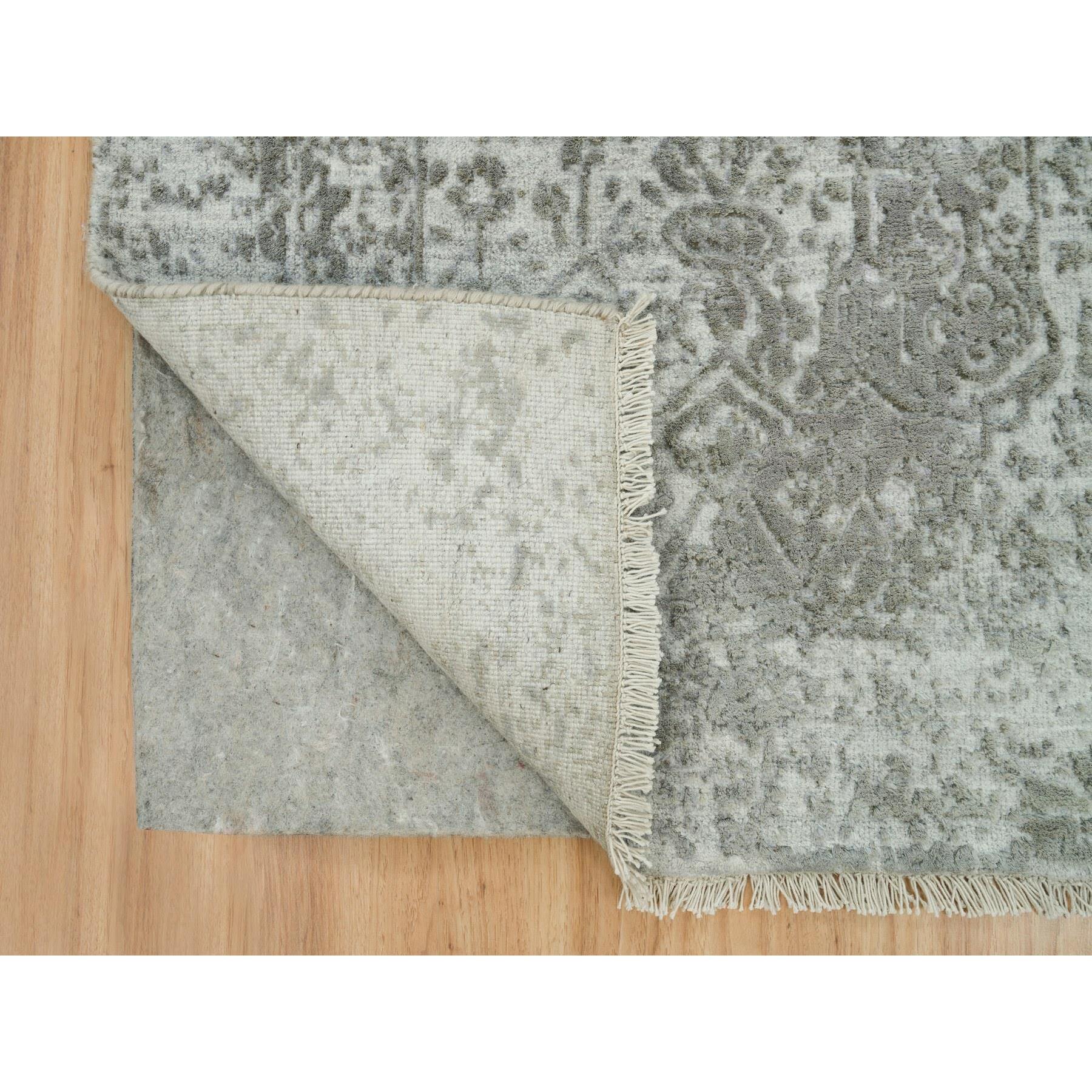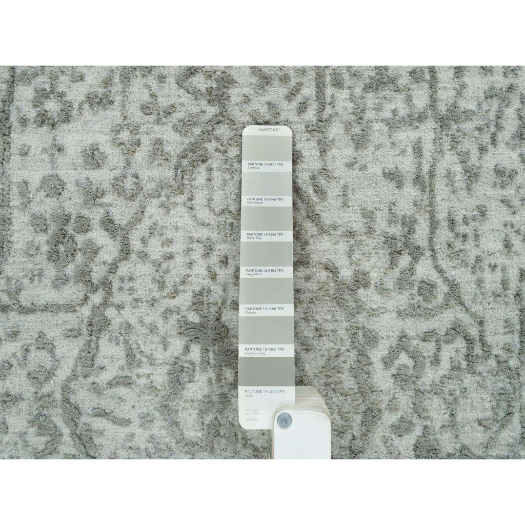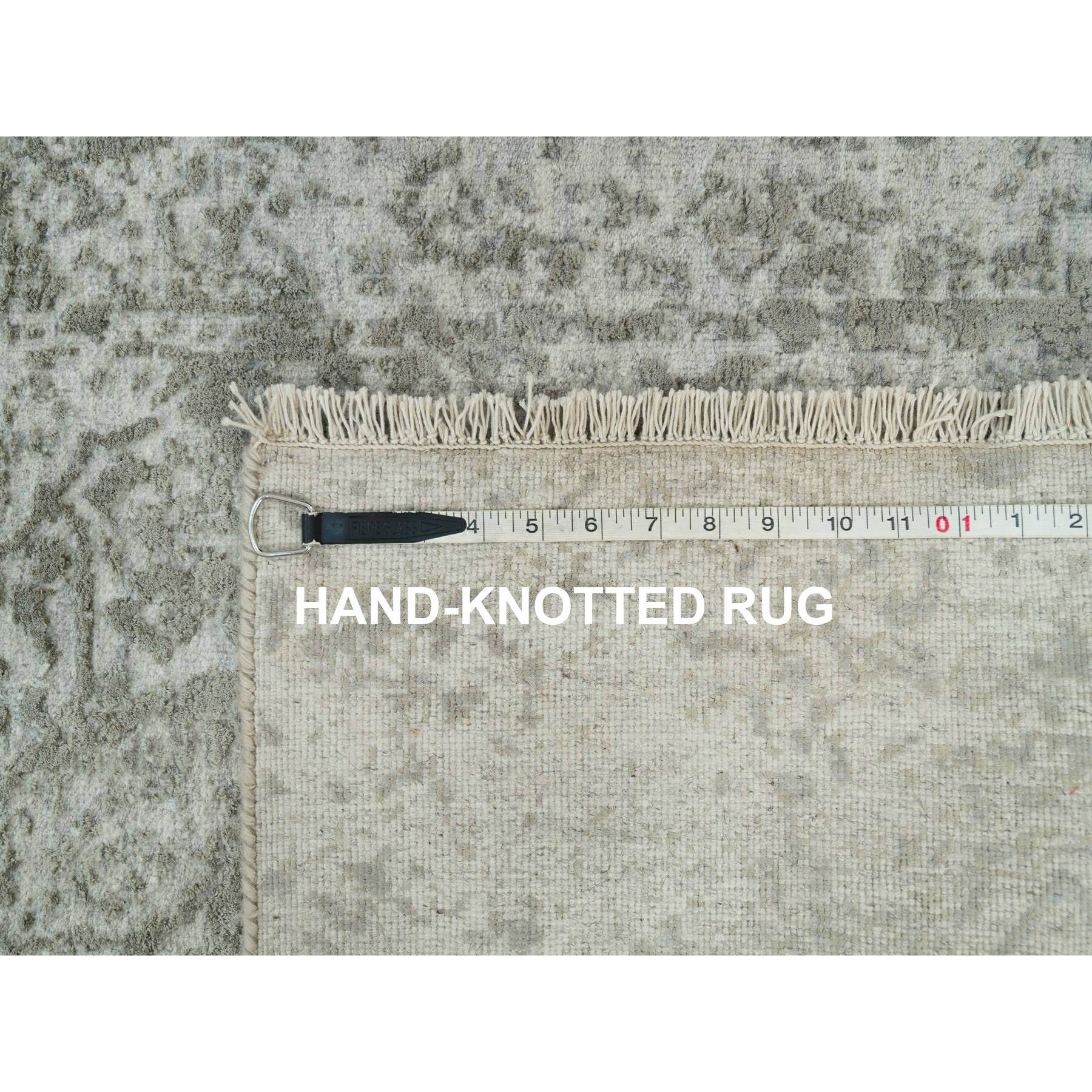 2'6"x15'10" Goose Gray, Broken And Erased Persian Design, Hand Knotted, Wool And Silk, Xl Runner Oriental Rug FWR395340