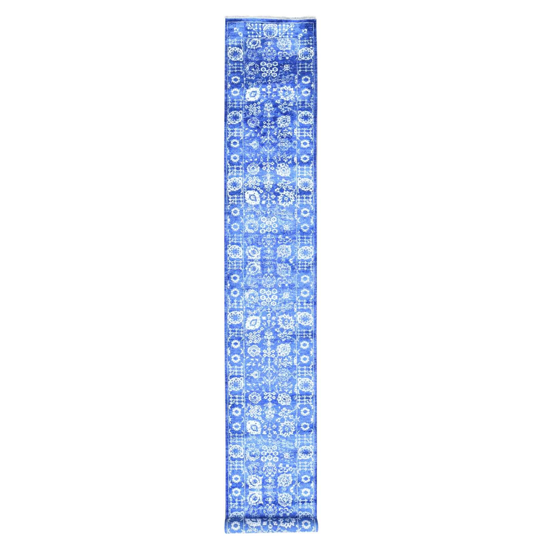 2'6"x16'10" Blue, Tone On Tone Tabriz, Wool And Silk Hand Knotted, Xl Runner Oriental Rug FWR481536