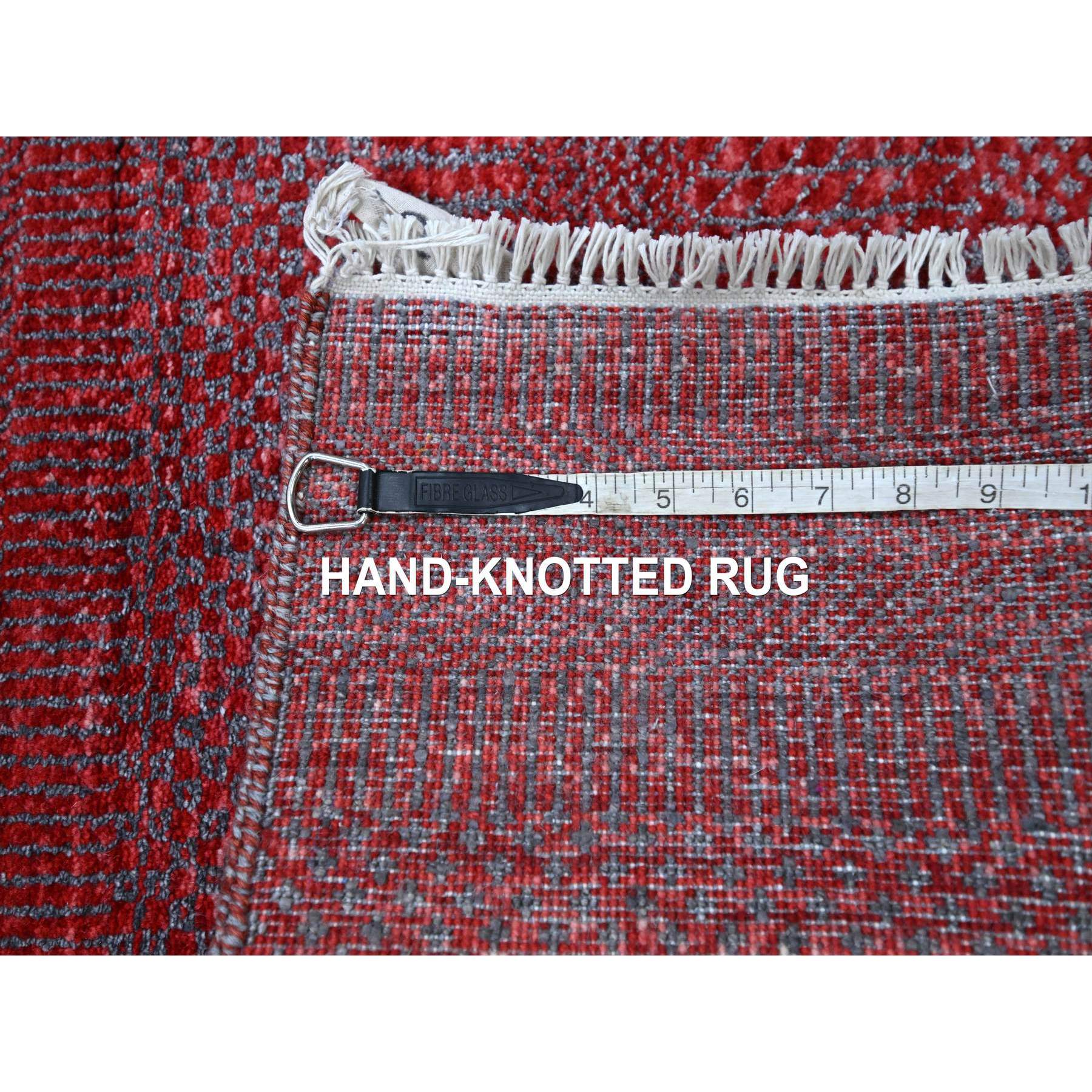 2'6"x16'3" Angels Red, Modern Grass Design, Hand Knotted, Borderless, Denser Weave, Lush And Plush, Tone On Tone, Wool And Silk, Xl Runner, Oriental Rug FWR457920