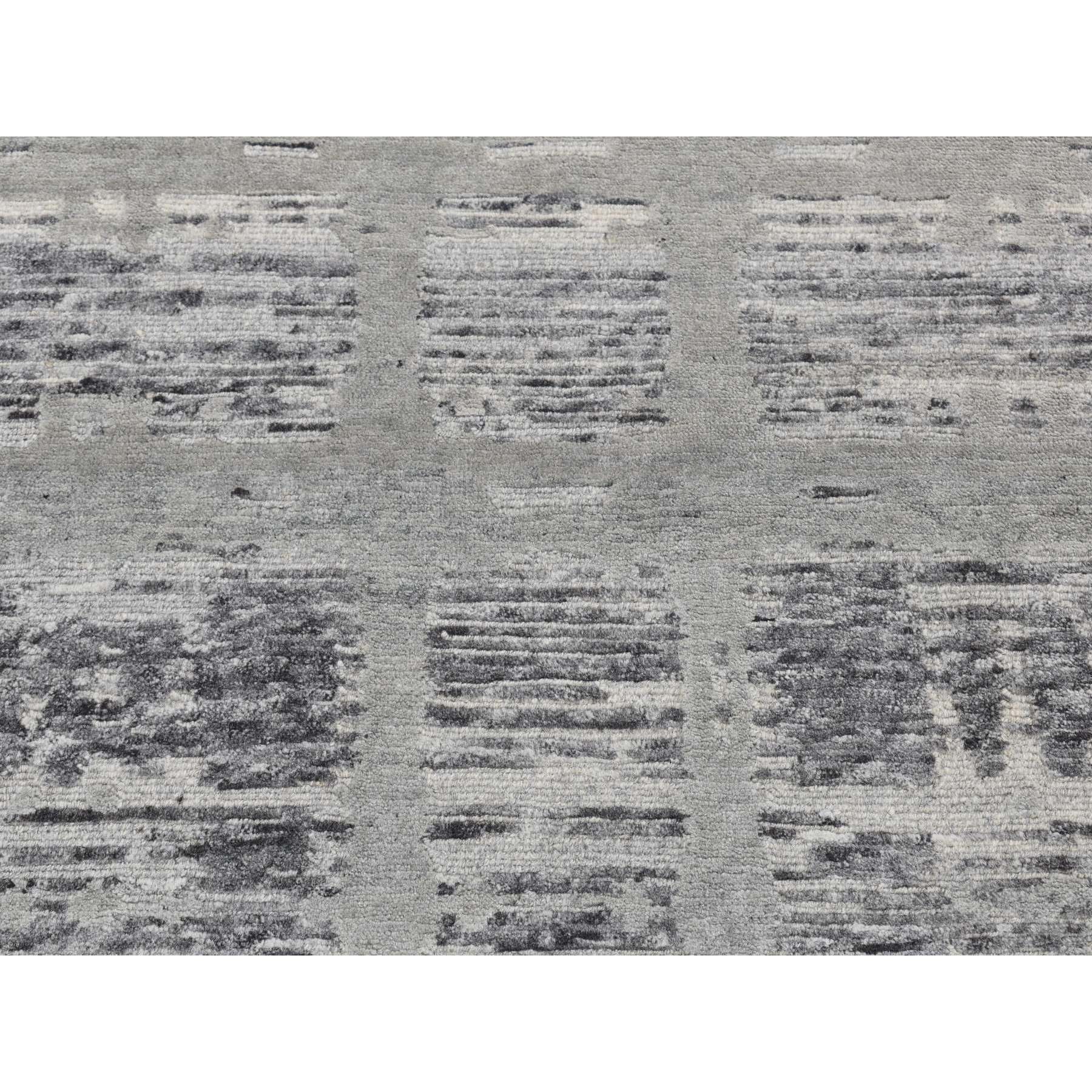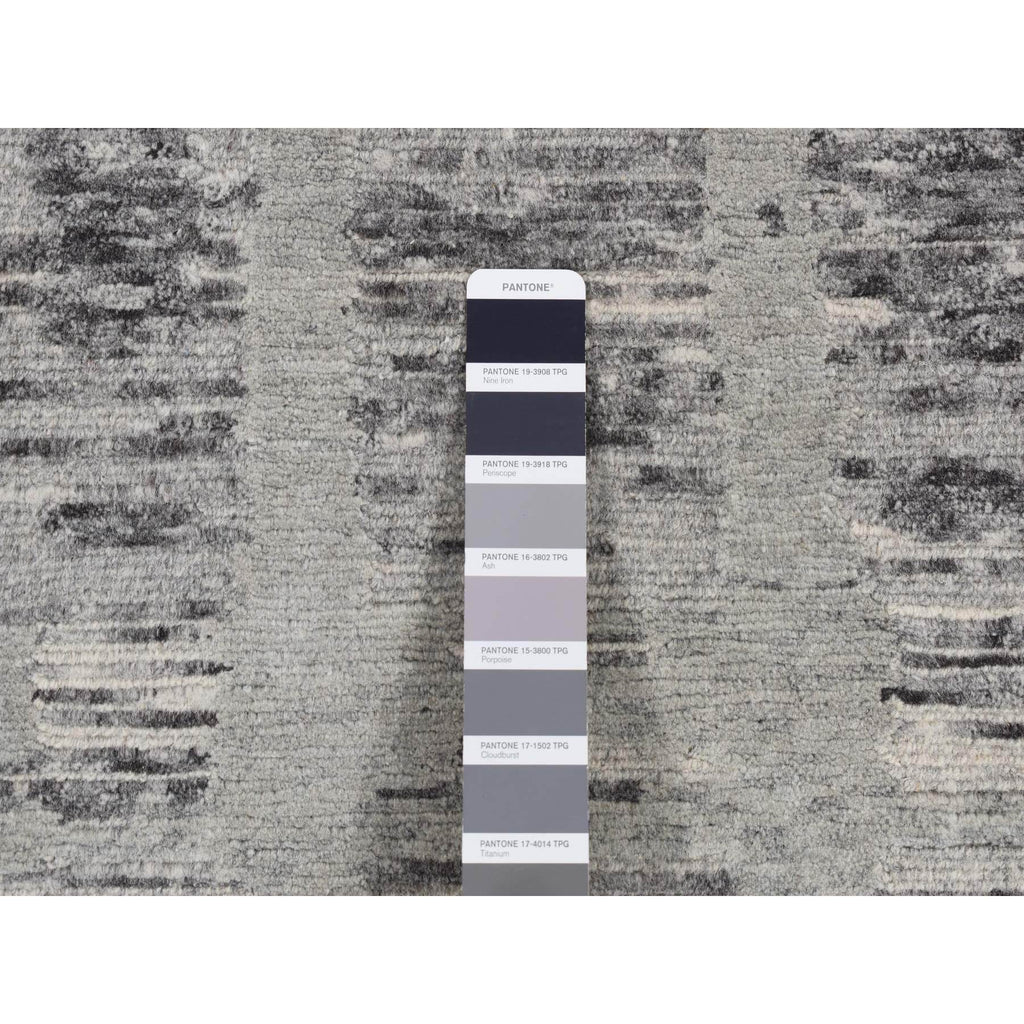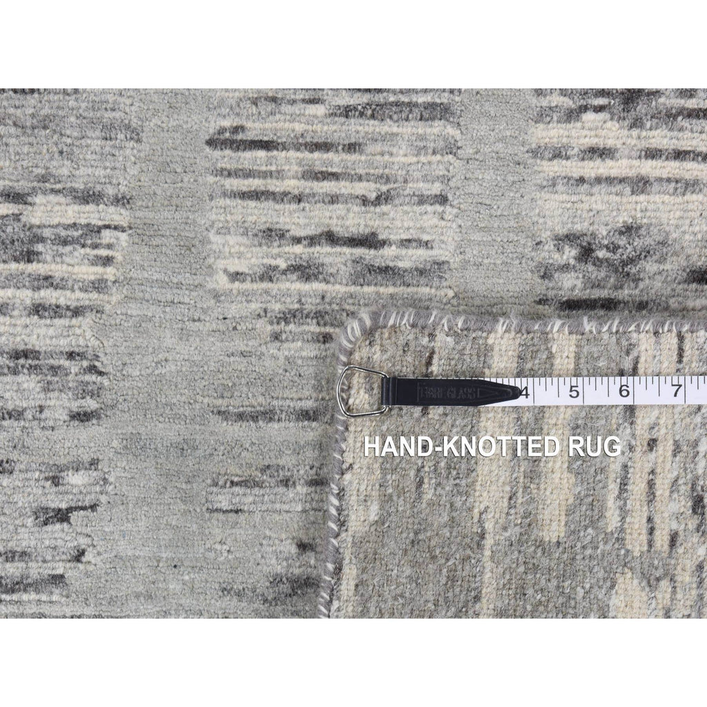 2'6"x17'10" Spanish Gray, Hand Spun Undyed Natural Wool, Modern Criss Cross Erased Design, Xl Runner, Hand Knotted, Oriental Rug FWR526122