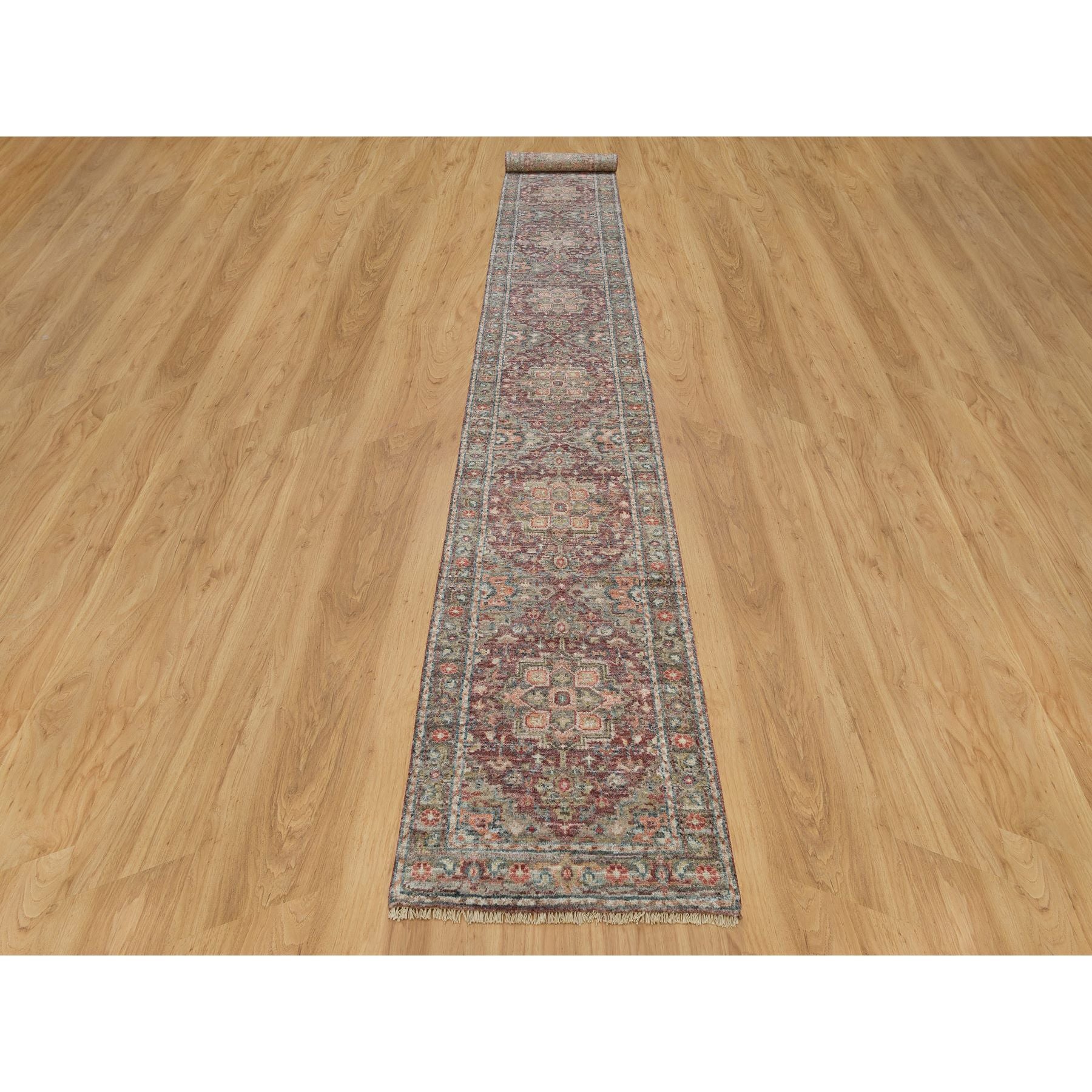 2'6"x18' English Red, Plush And Lush Soft Pile, Soft Heriz Revival Wool Hand Knotted, Vegetable Dyes, Xl Runner Oriental Rug FWR541218