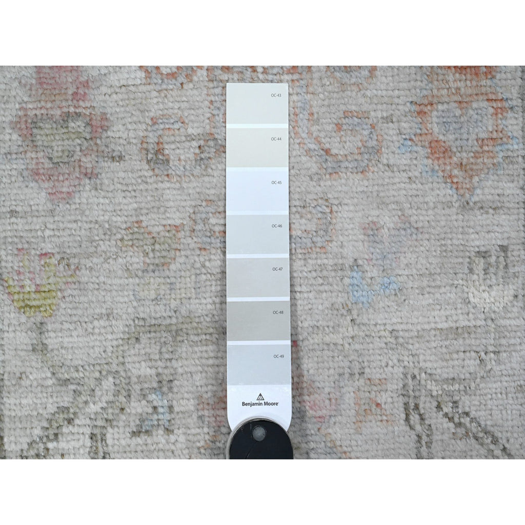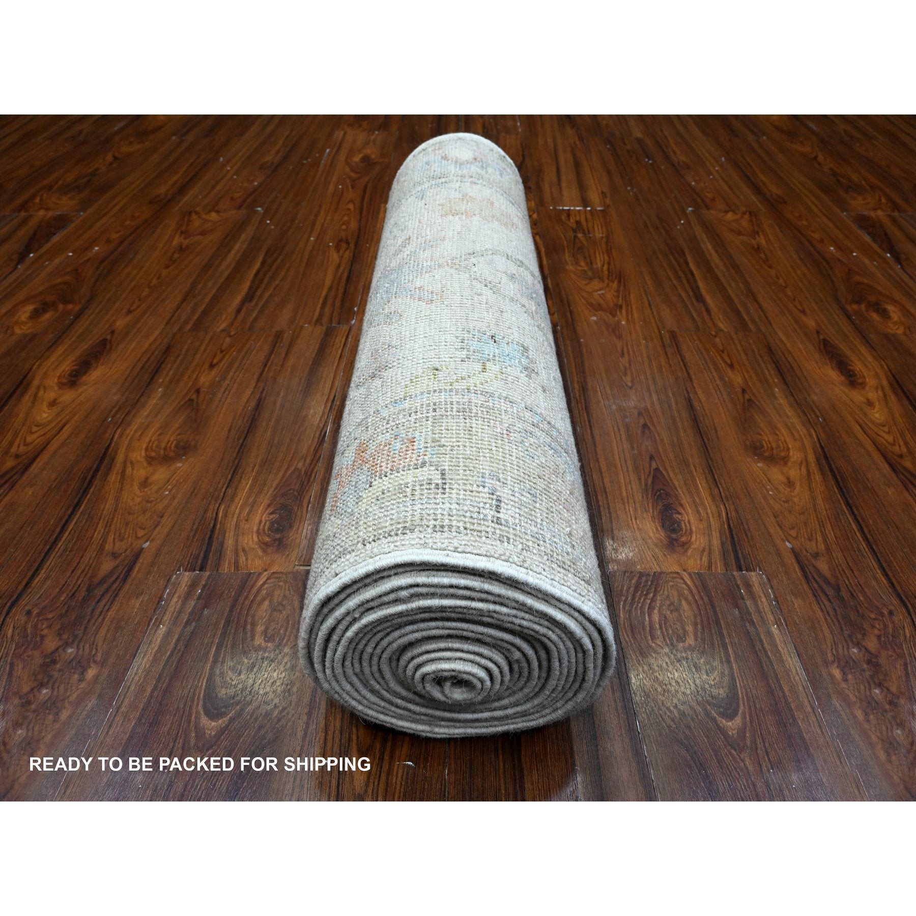 2'6"x19'1" Chrome Gray, Wool Foundation, Natural Dyes, Hand Knotted, Soft Pile, Village Elements All Over, Afghan Angora Oushak, Xl Runner Oriental Rug FWR537774