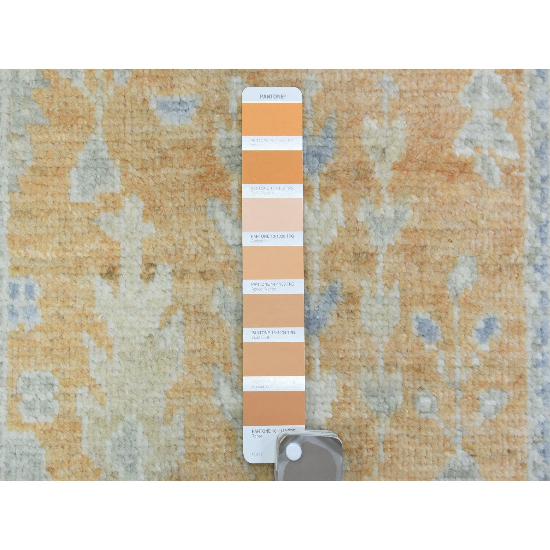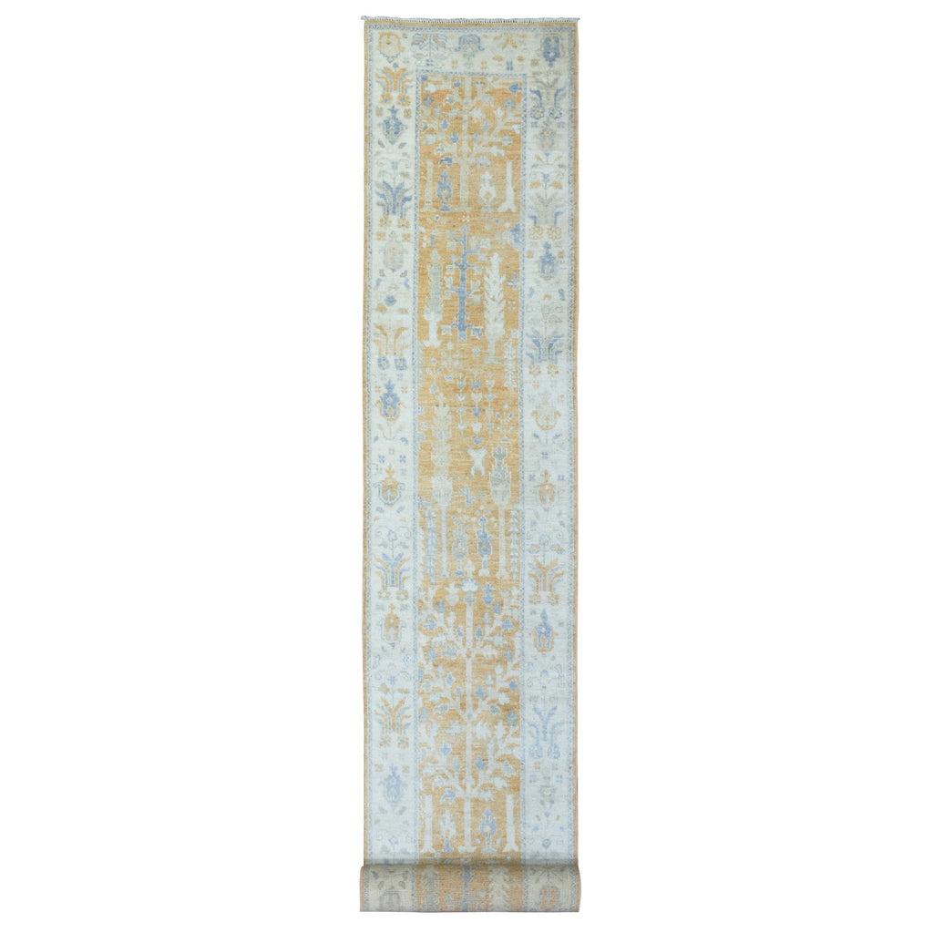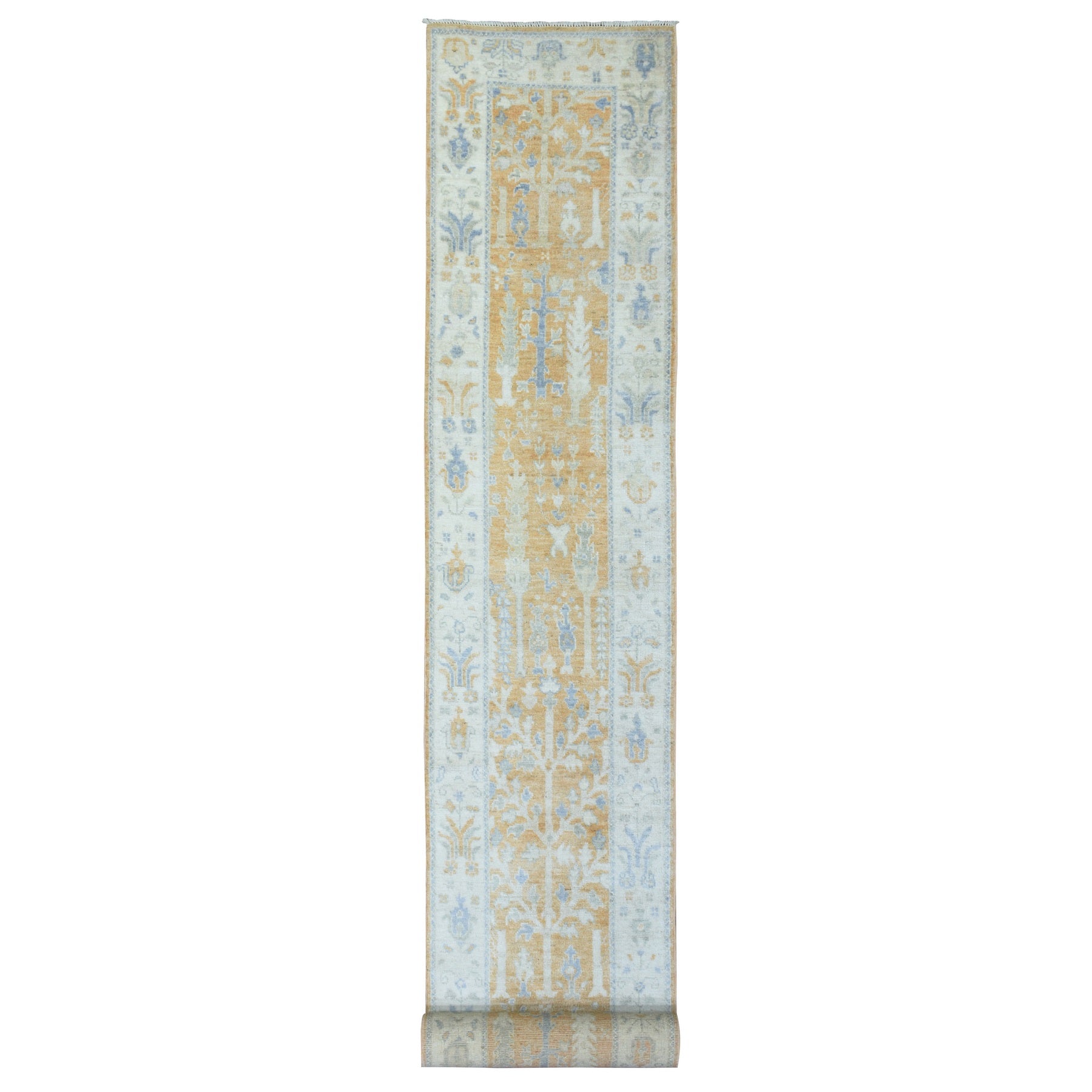 2'6"x19'2" Faded Orange Hand Knotted Afghan Angora Oushak With Branch And Flower Design Natural Dyes, Soft Wool Runner Oriental Rug FWR437028