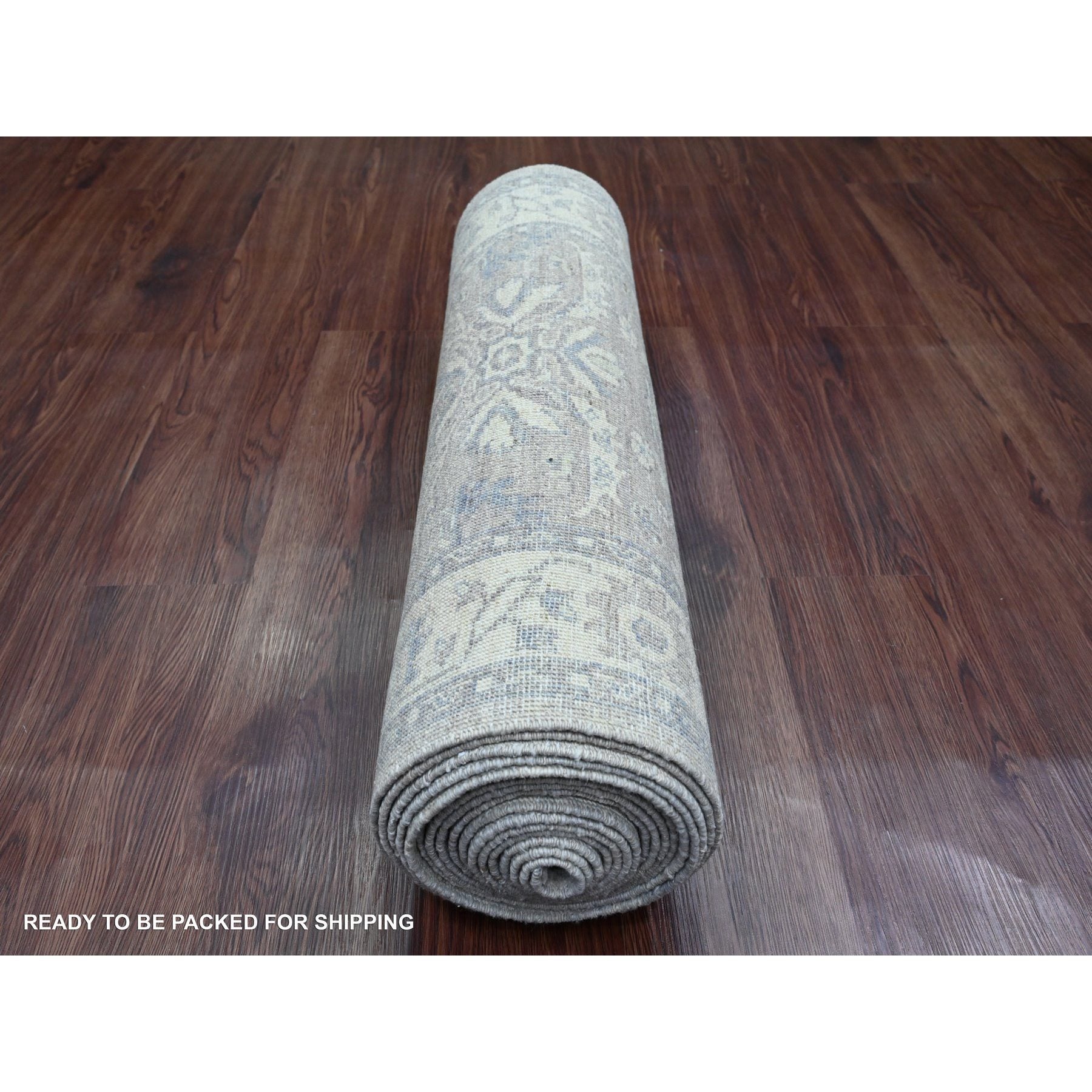 2'6"x19'2" Medium Gray, Washed Out Peshawar With Heriz Design, High Mountain Wool, Densely Woven, Hand Knotted, Vegetable Dyes, Xl Runner, Oriental Rug FWR125670