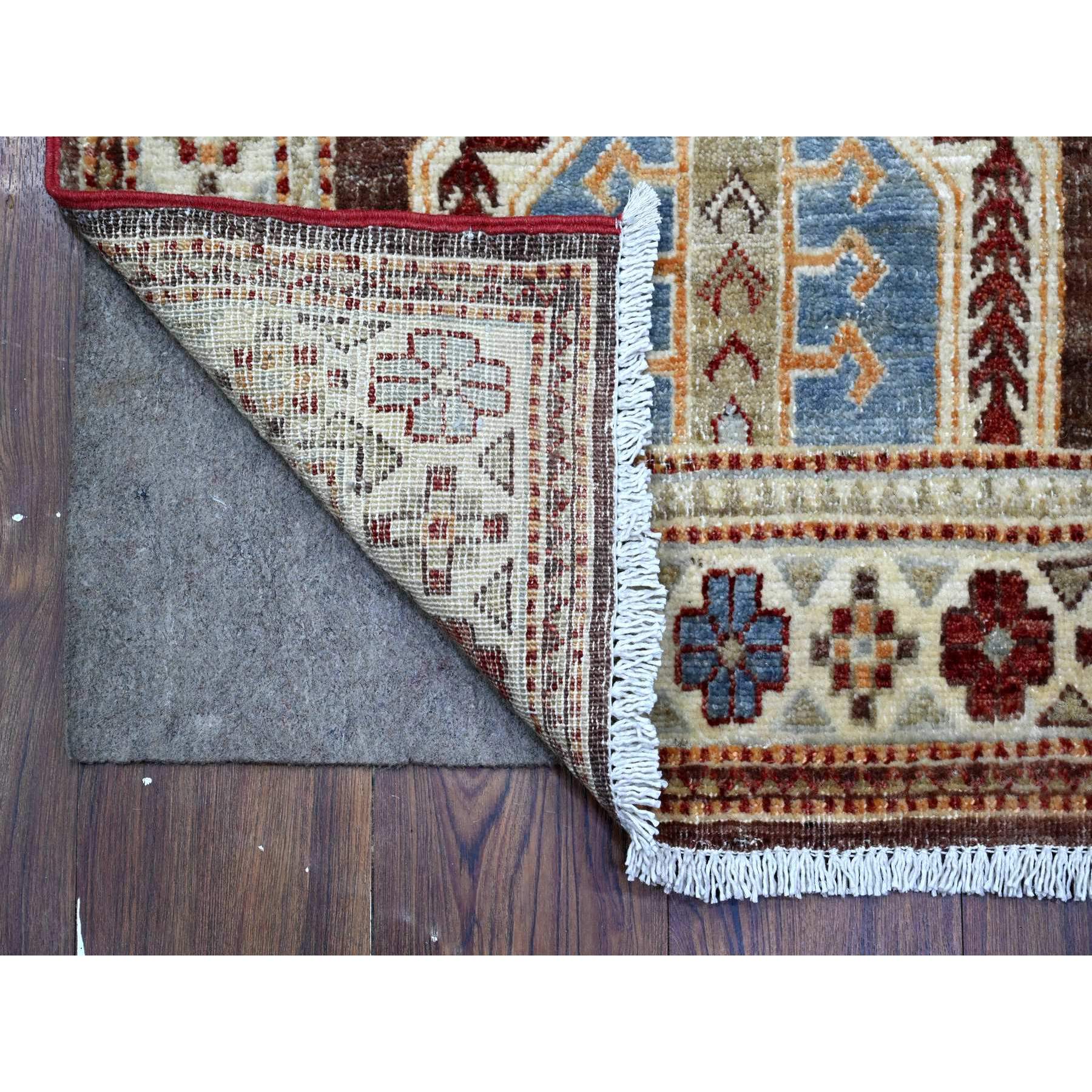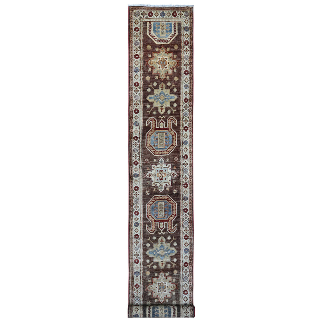 2'6"x19'5" Brown Stone, Soft And Velvety Wool, Afghan Super Kazak With Large Tribal And Geometric Design, Hand Knotted Vegetable Dyes, Xl Runner Oriental Rug FWR537696