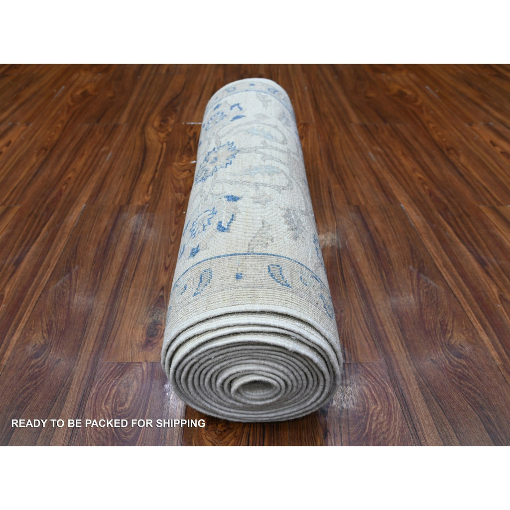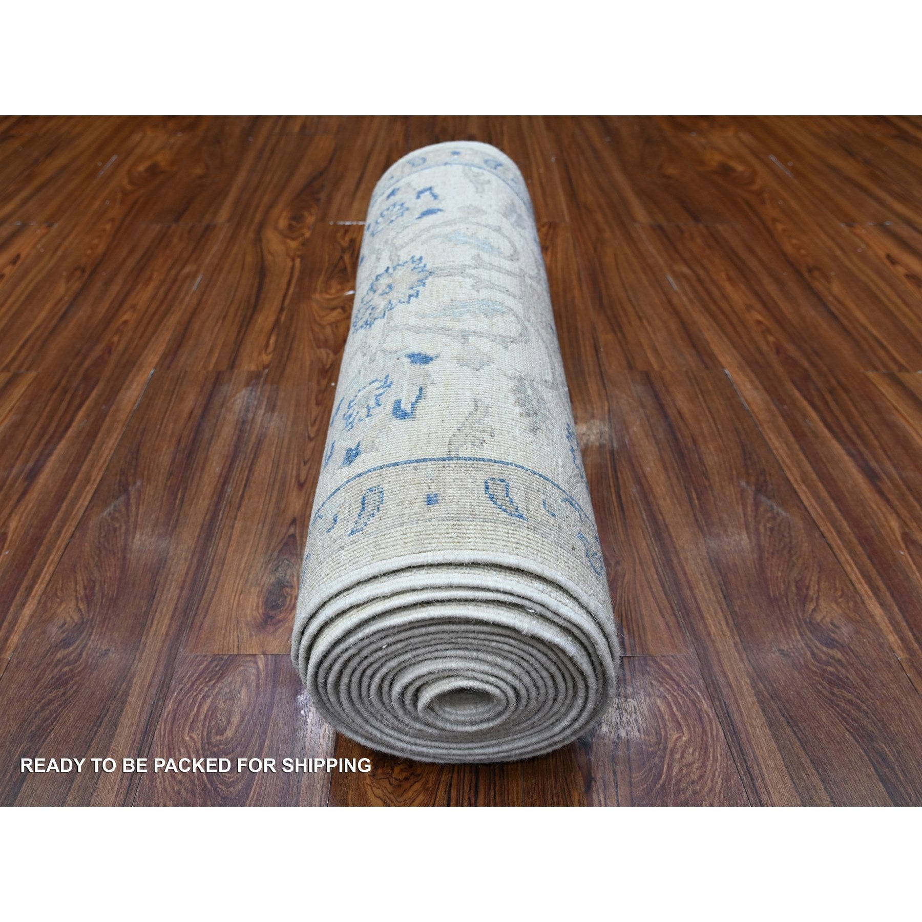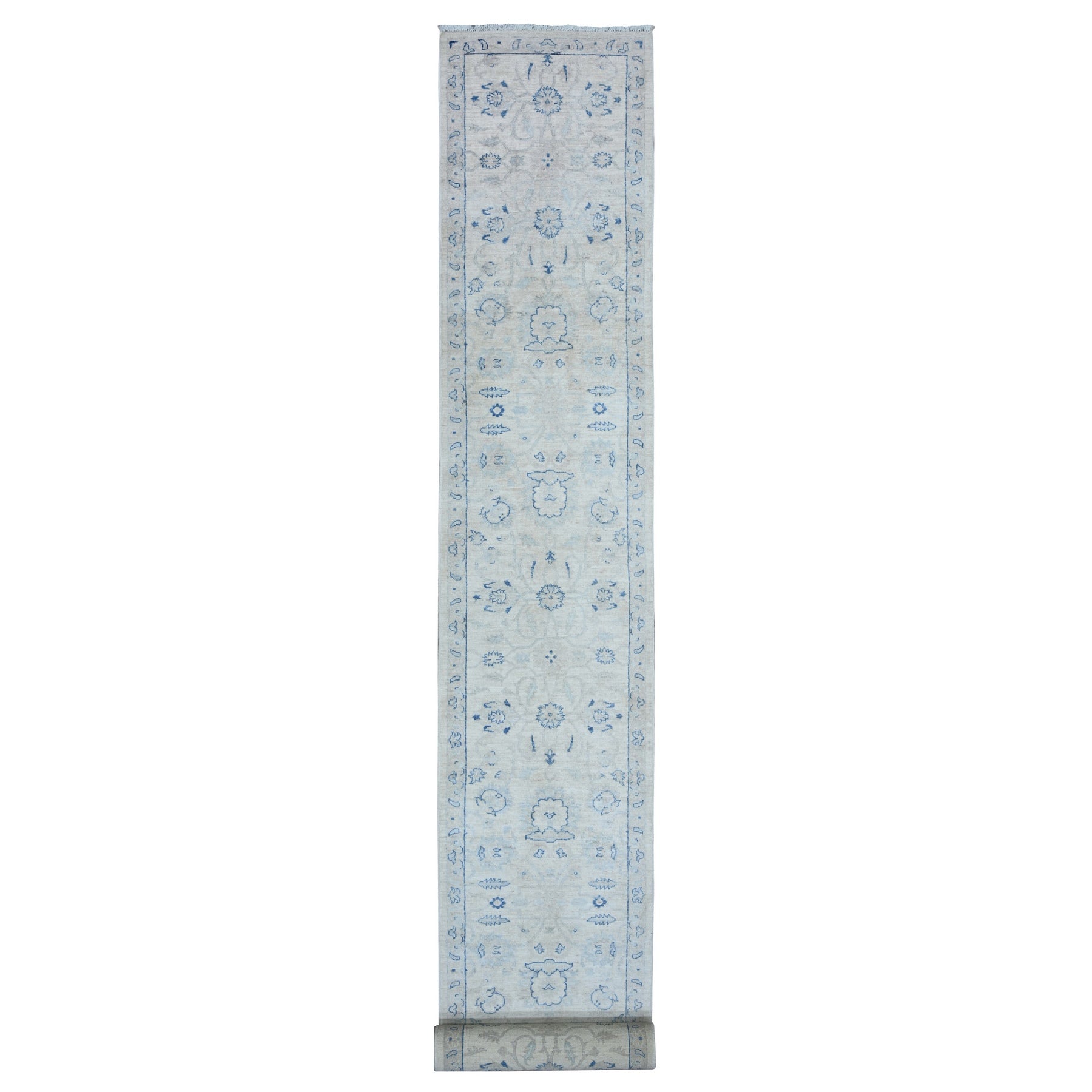 2'6"x19'5" Coconut White, Hand Knotted, 100% Wool, White Wash Peshawar Subtle Design, Xl Runner, Oriental Rug FWR531552