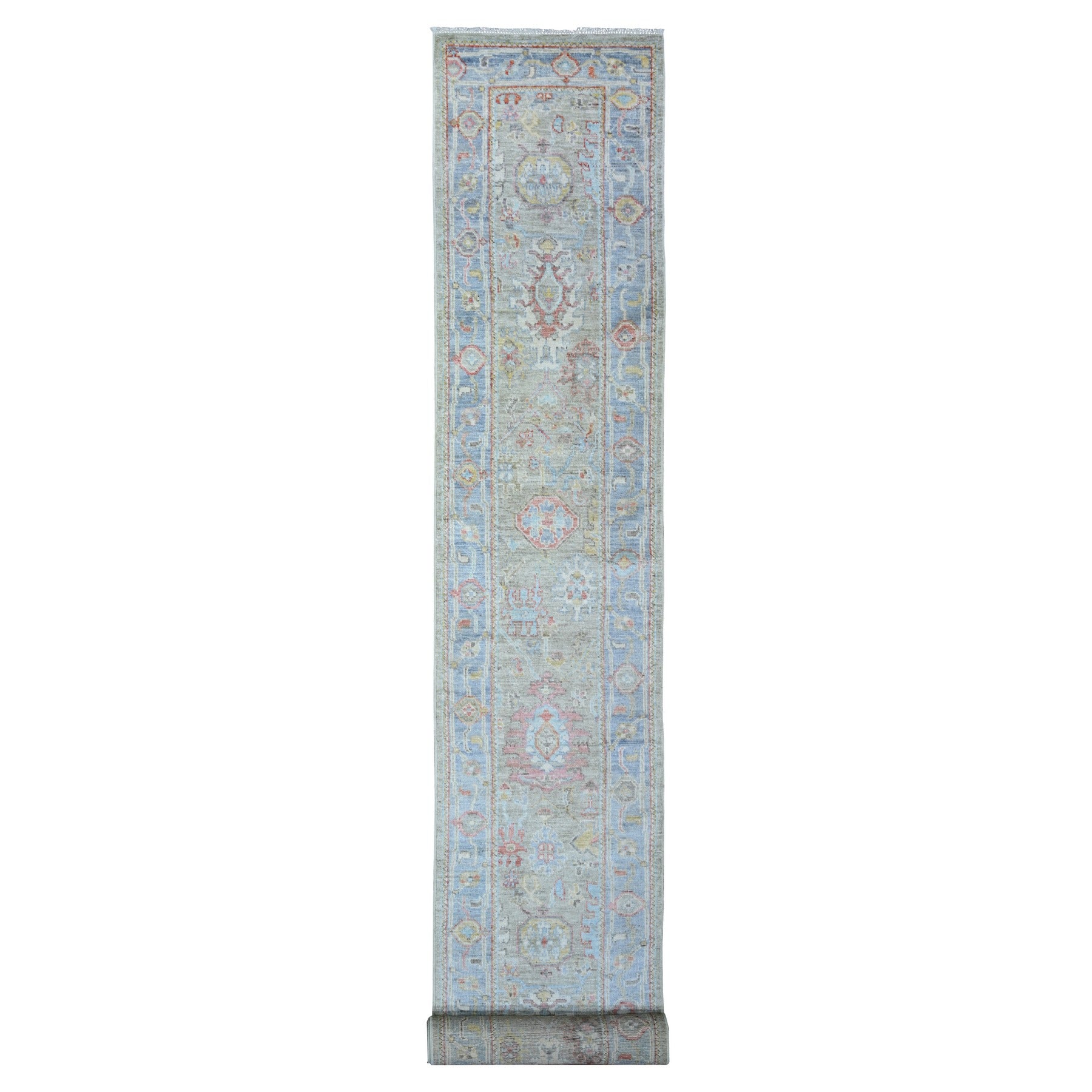 2'6"x19'8" Sage Gray, Afghan Angora Oushak With Vegetable Dyes, Organic Wool Hand Knotted, Xl Runner Oriental Rug FWR439074