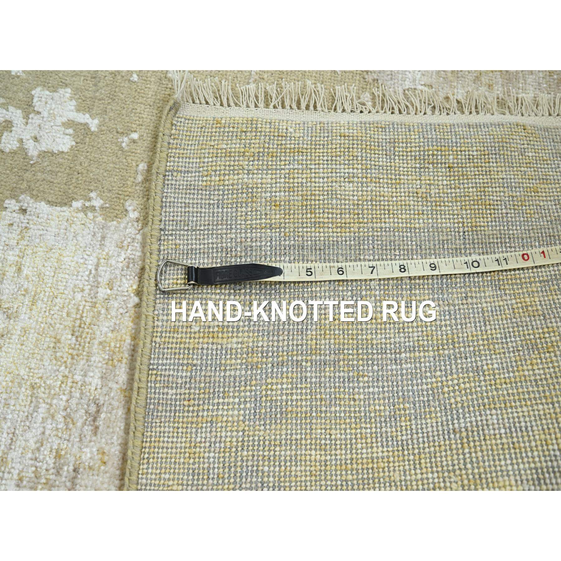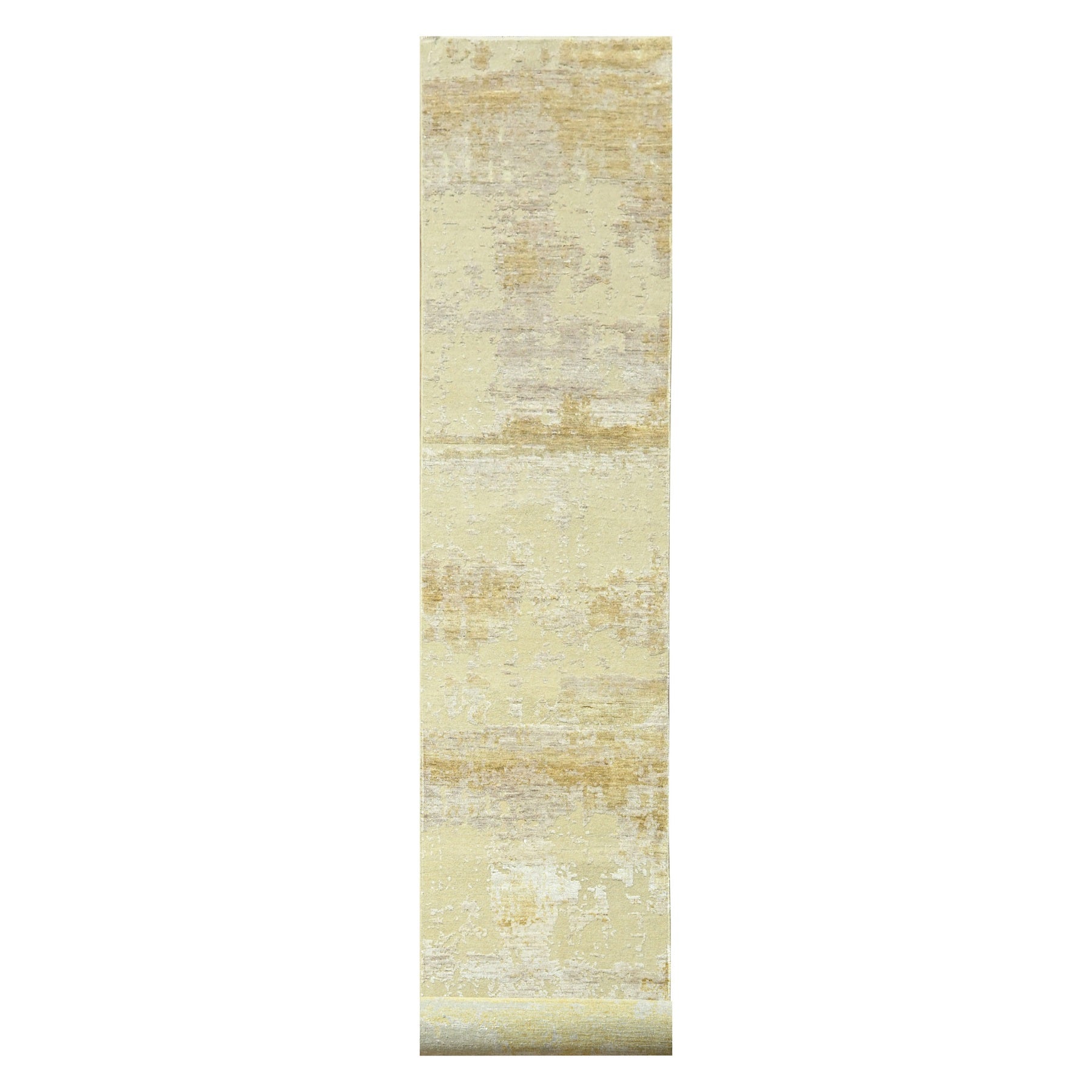 2'6"x19' Parchment White & Brown, Modern Abstract Design With Natural Colors, Wool And Silk, Hand Knotted, Xl Runner, Oriental Rug FWR458112