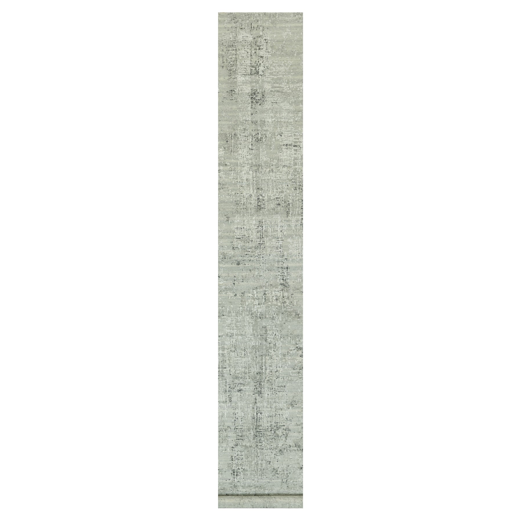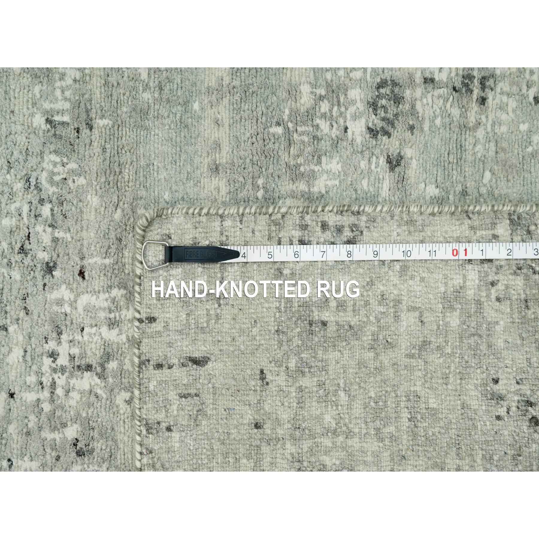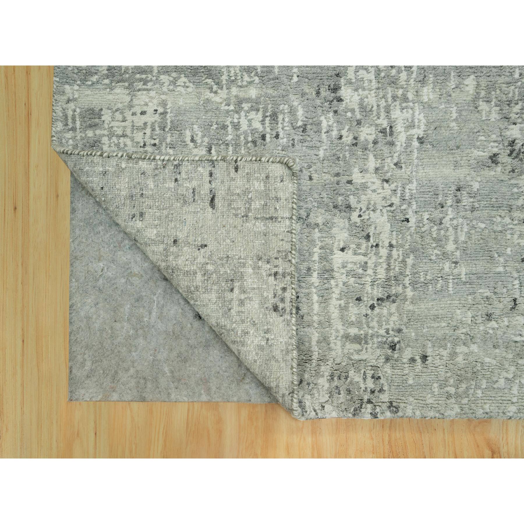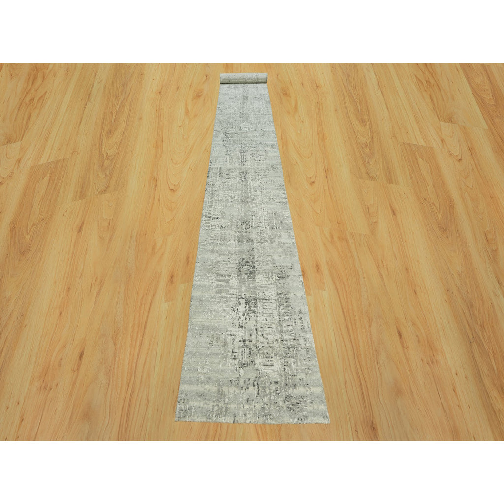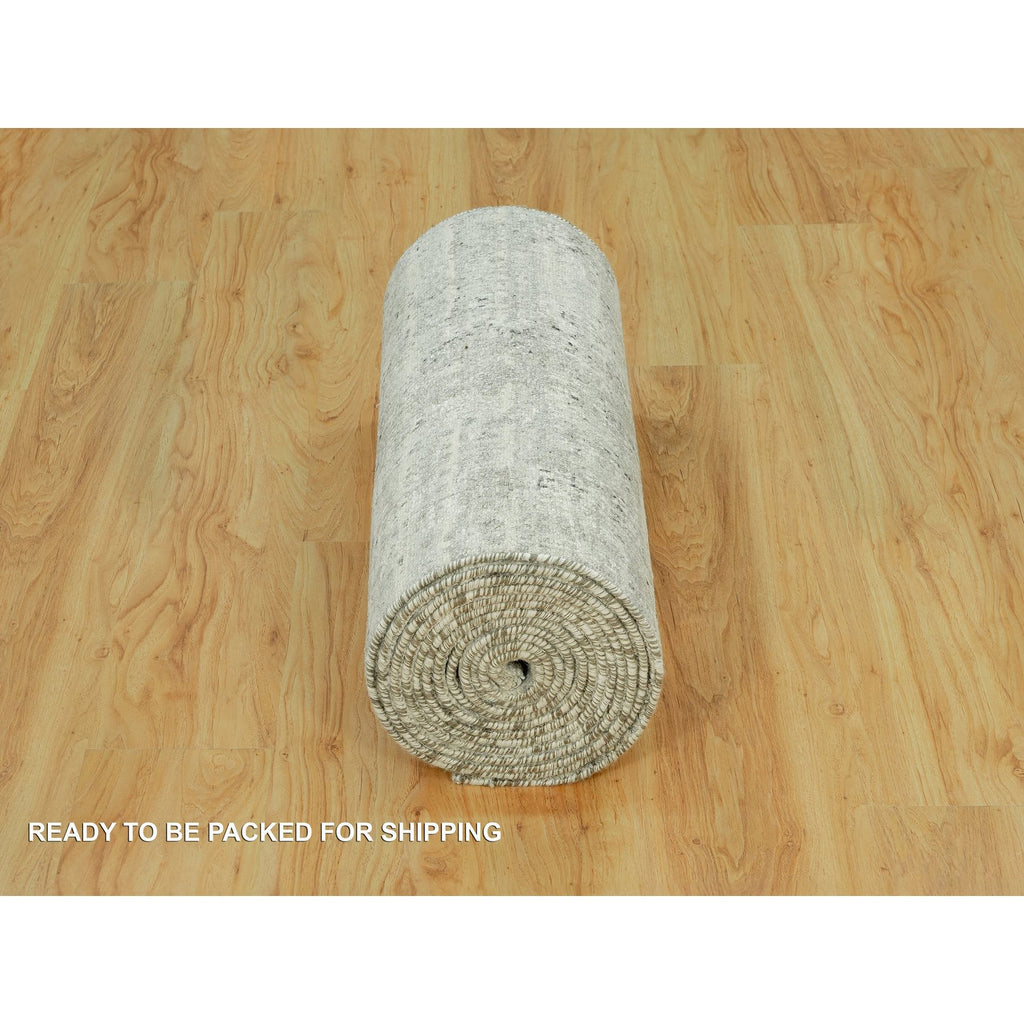 2'6"x20'2" Diffused Gray, Cut And Loop Pile, Modern Design Hand Spun Velvety Undyed Wool, Hand Knotted Oriental Xl Runner Rug FWR542514
