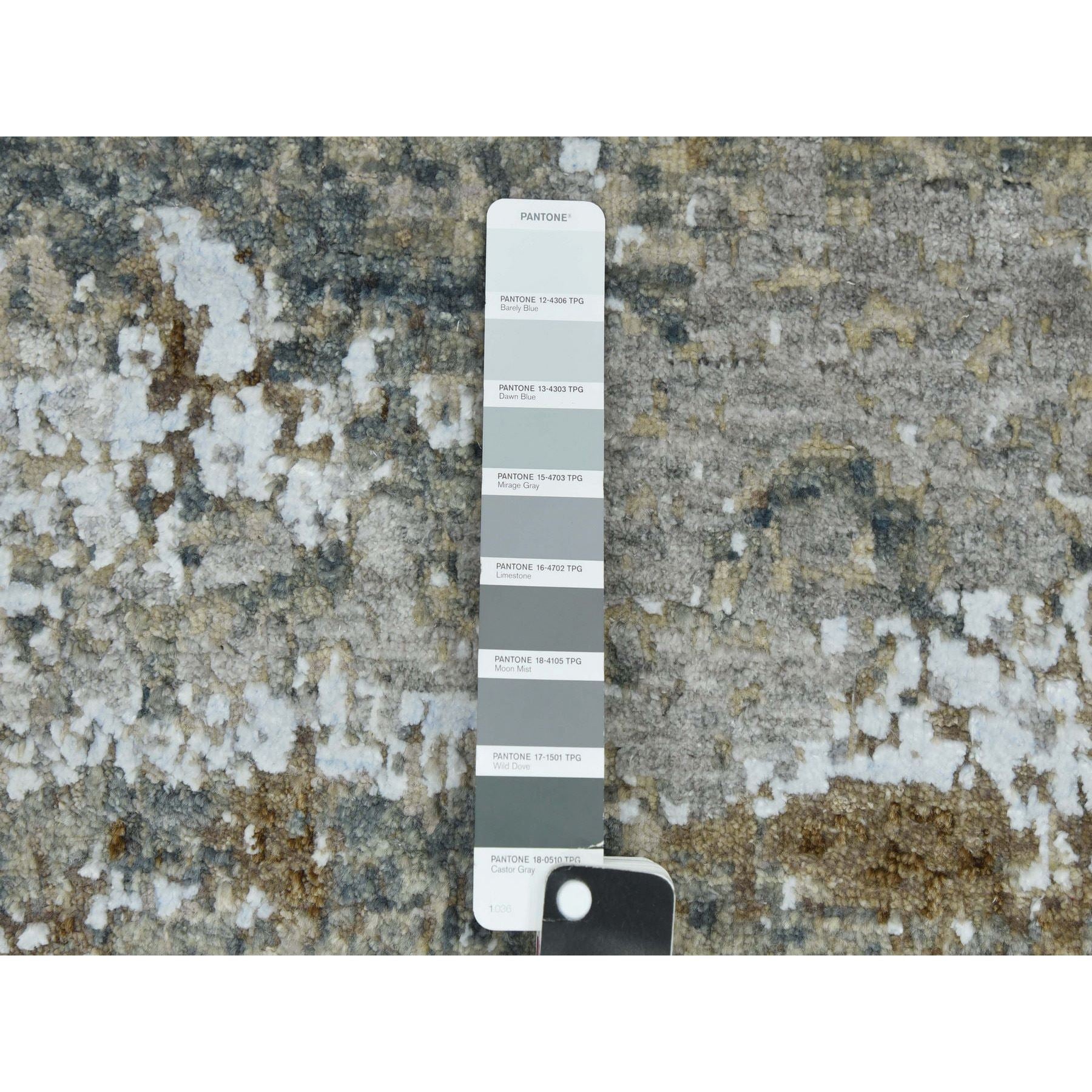 2'6"x20'3" Ash Gray, Hand Knotted Abstract Design, Dense Weave Persian Knot, Pure Wool, Xl Runner Oriental Rug FWR498594