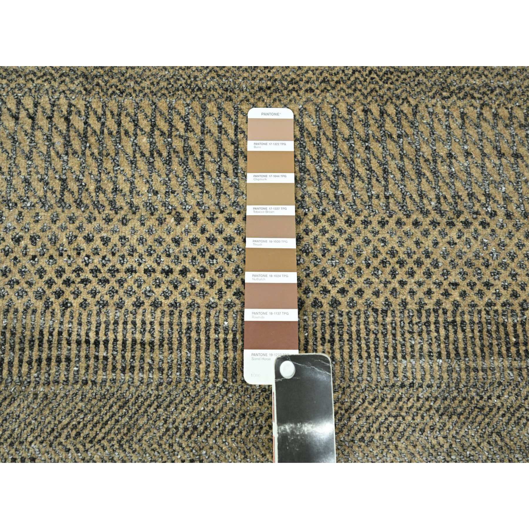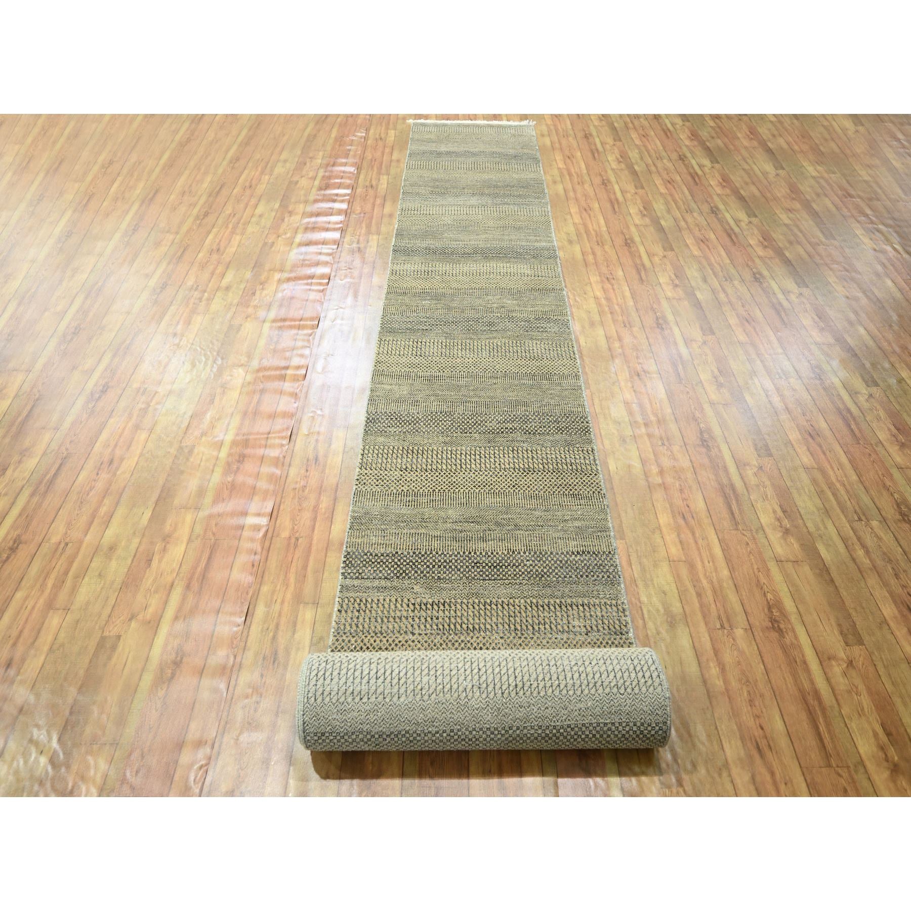2'6"x20'4" Ecru Brown, Modern Grass Design, Hand Knotted, Wool And Silk, Denser Weave, Tone On Tone, Lush And Plush, Borderless, Xl Runner, Oriental Rug FWR458088