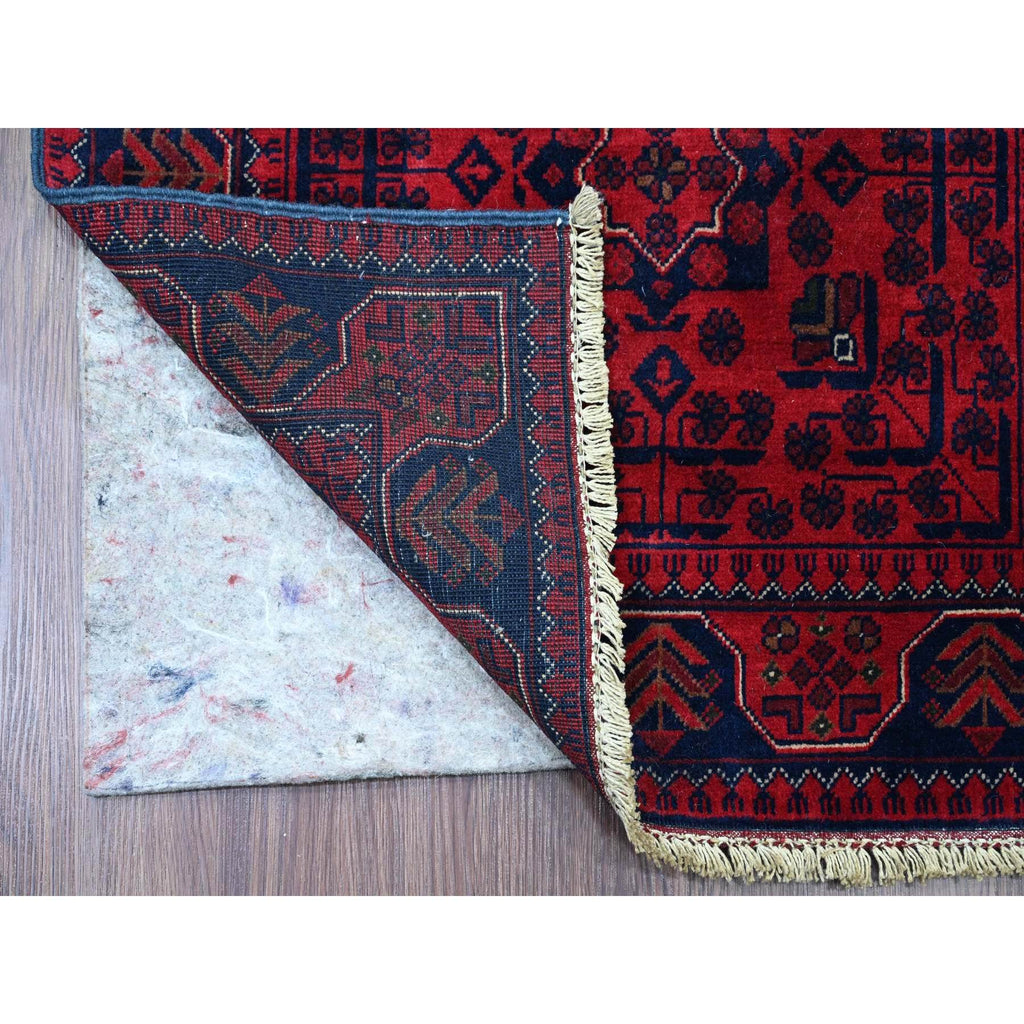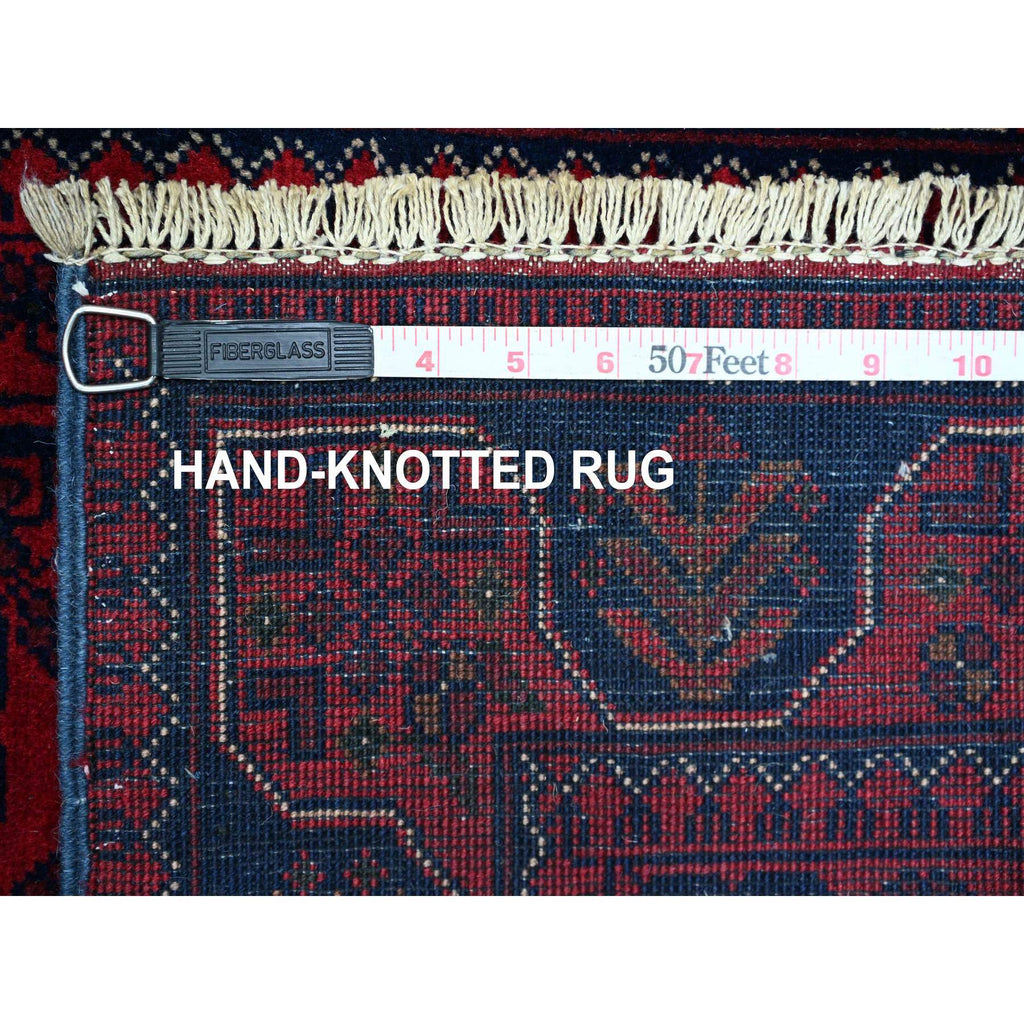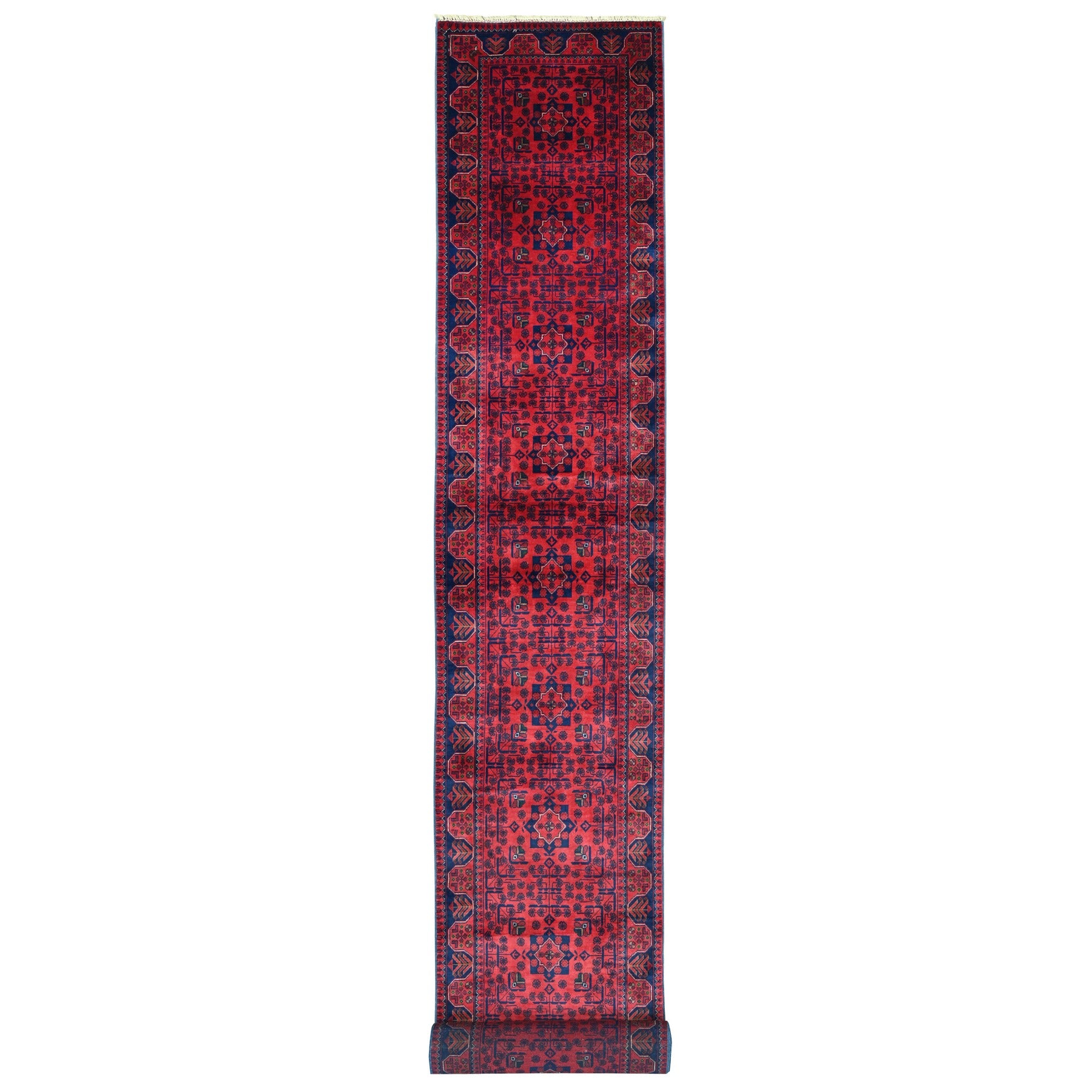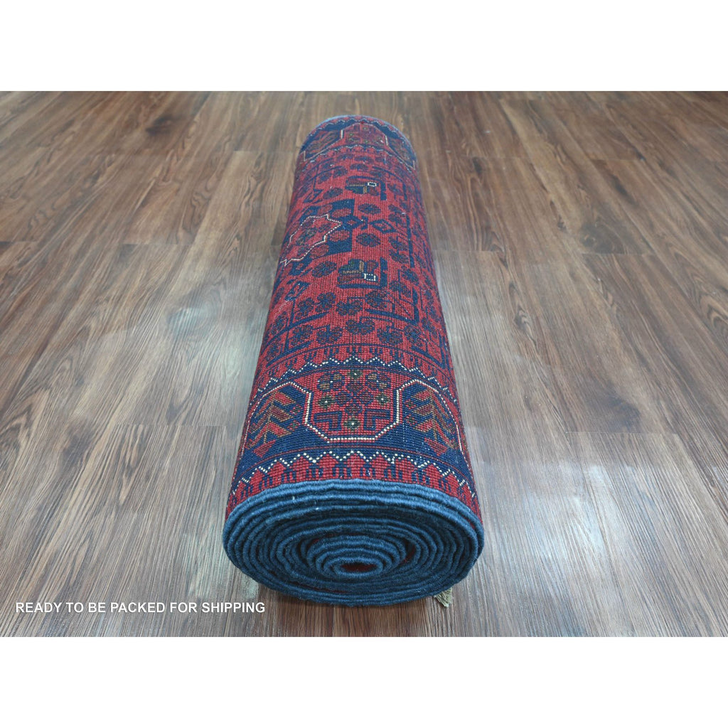 2'6"x21'6" Scarlet Red, Afghan Khamyab With Star Medallions Design, Pure Wool, Soft And Plush Pile, Hand Knotted, Veggie Dyes, Xl Runner, Oriental Rug FWR120126