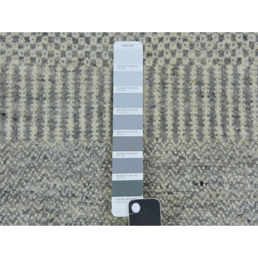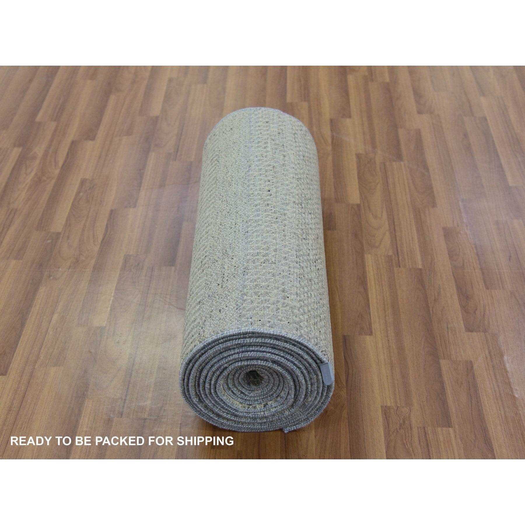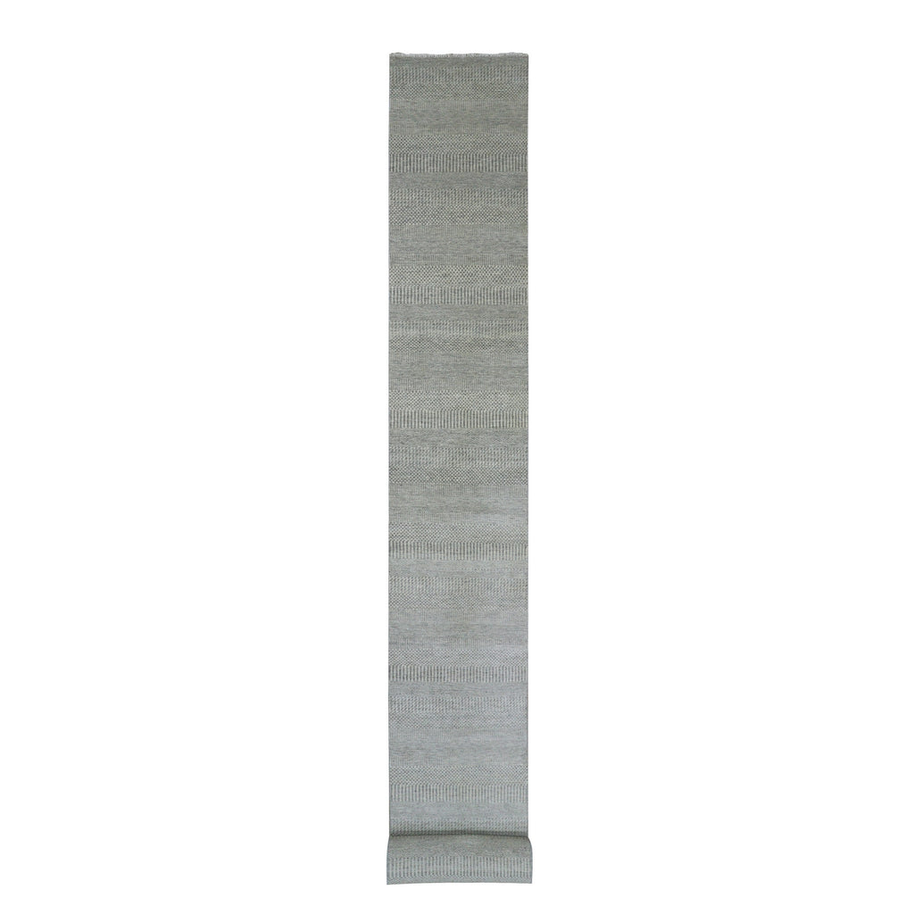 2'6"x21'8" Castor With Dark Gray, Natural Undyed Wool, Modern Grass Design, Hand Knotted, Tone On Tone, Oriental Xl Runner Rug FWR478326