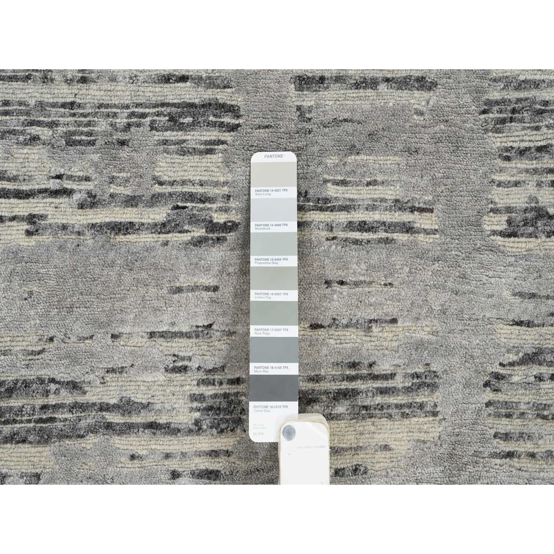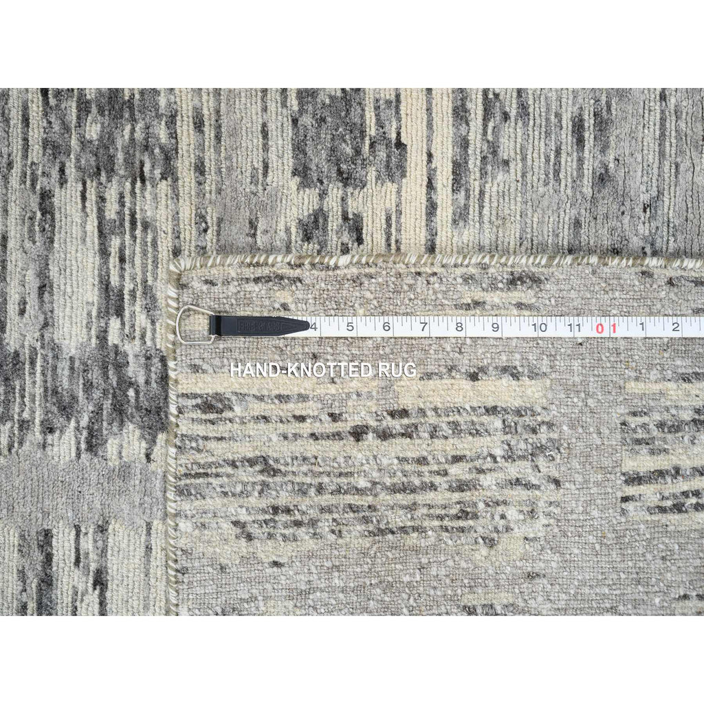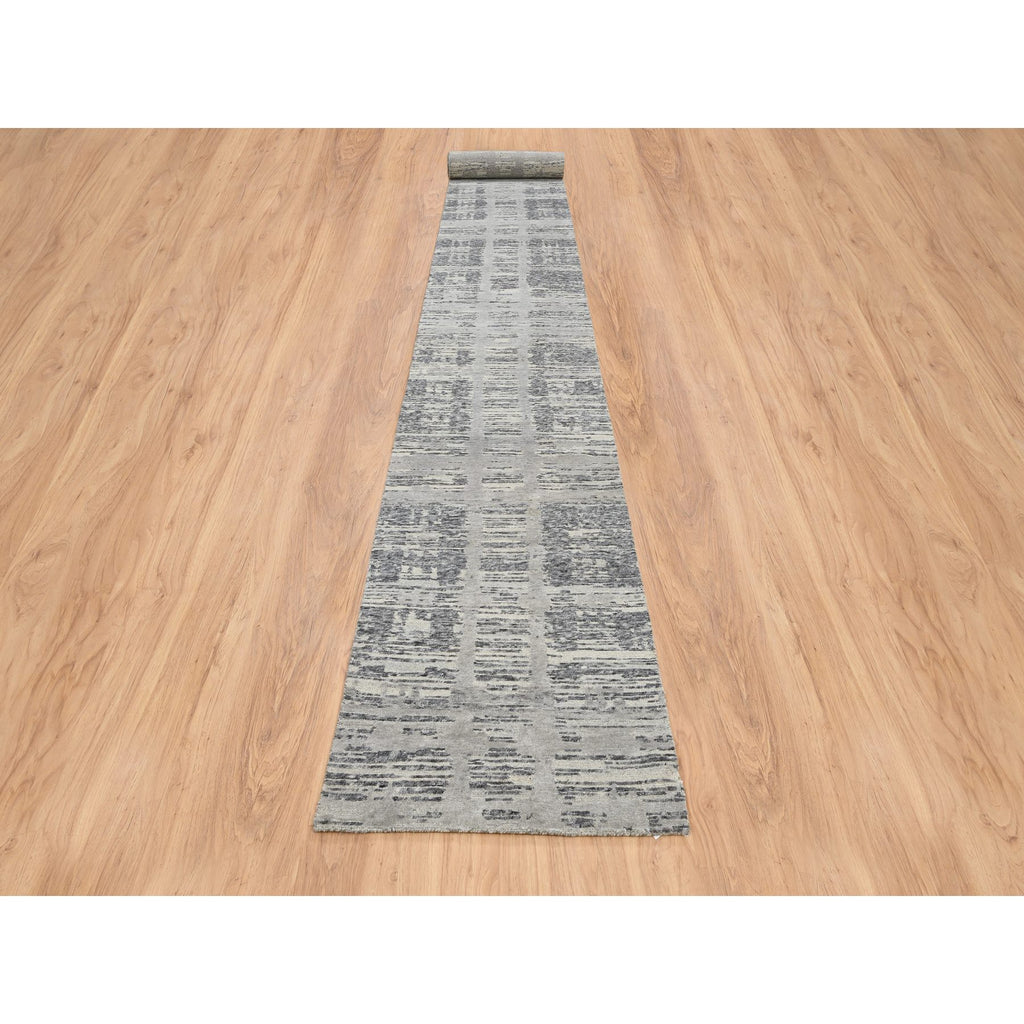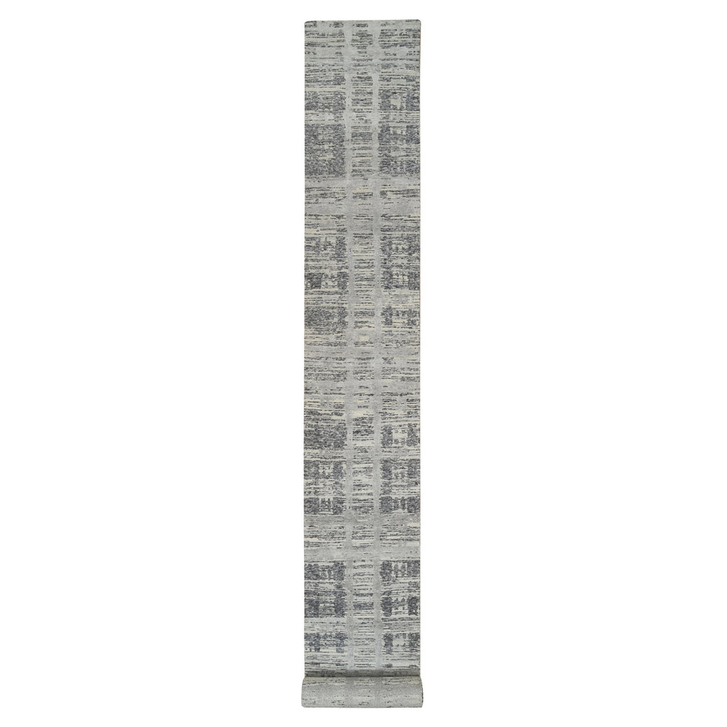 2'6"x22' Light Gray, Hand Knotted, Modern Criss Cross Erased Design, Hand Spun Undyed Natural Wool, Xl Runner Oriental Rug FWR388170