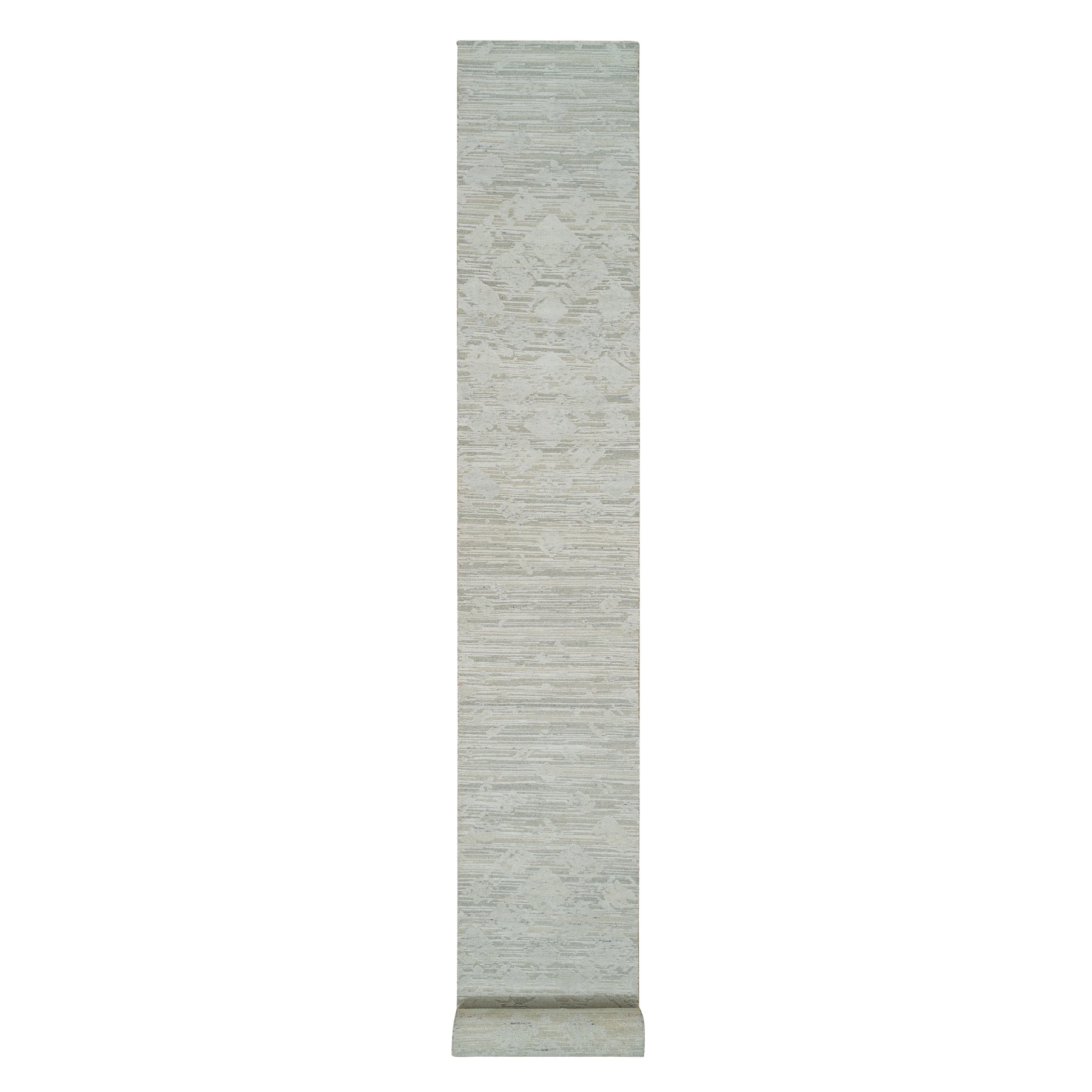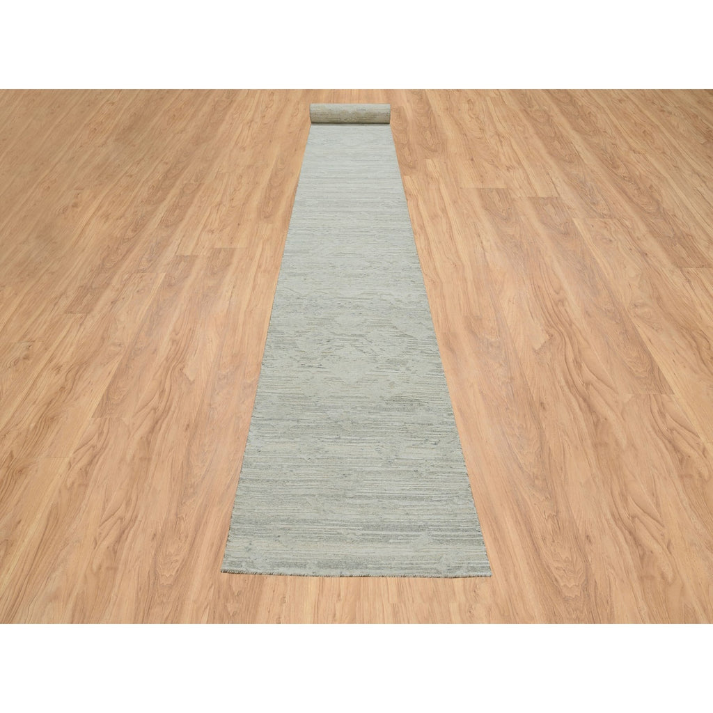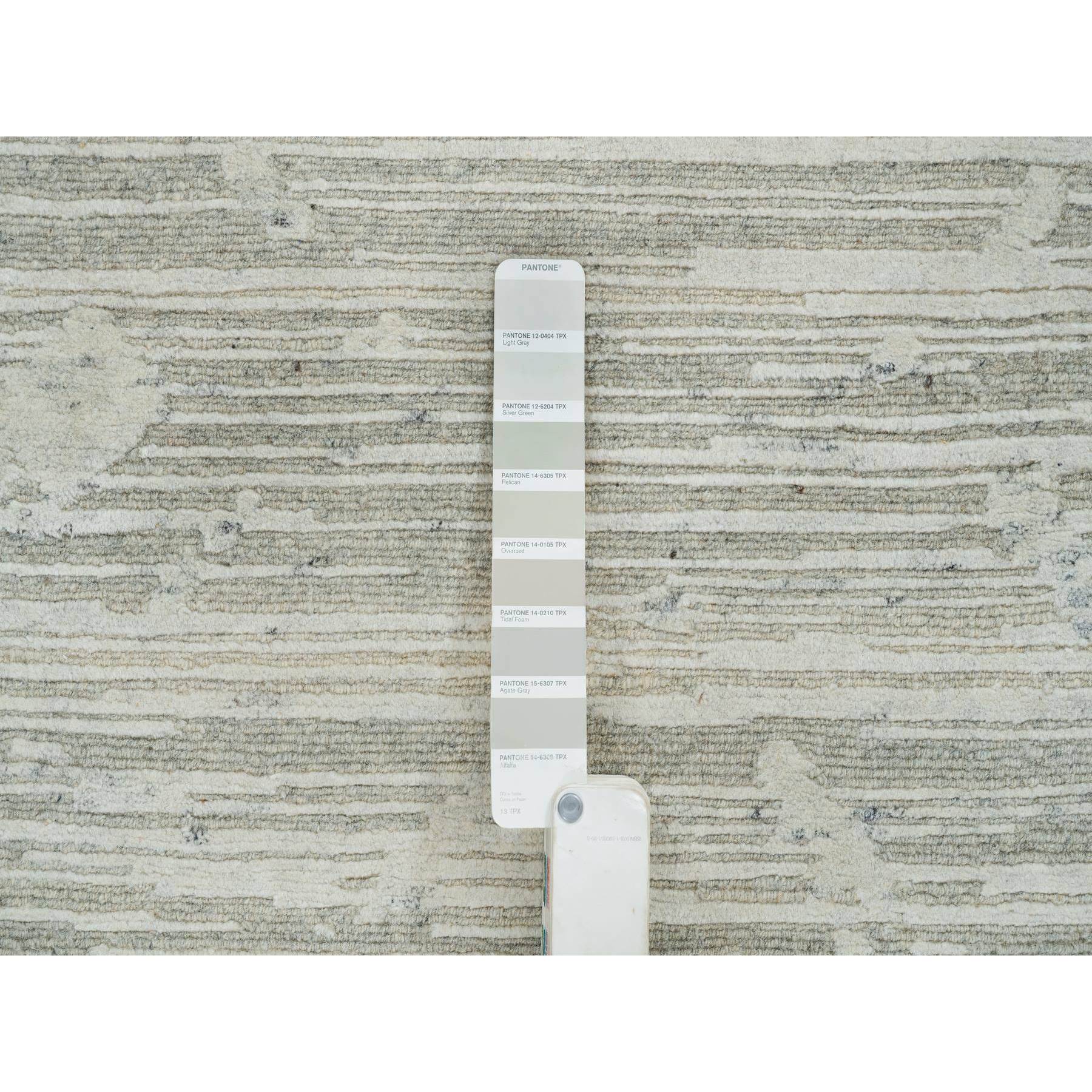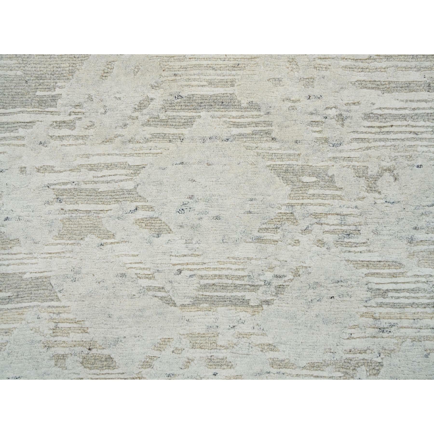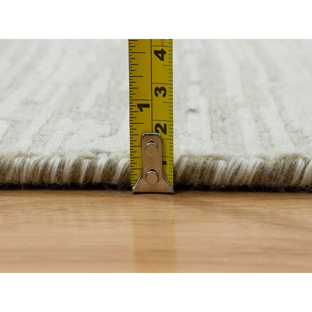 2'6"x25'10" Ivory, Modern Design, Hand Spun Undyed Natural Wool, Hand Knotted, Xl Runner Oriental Rug FWR390954